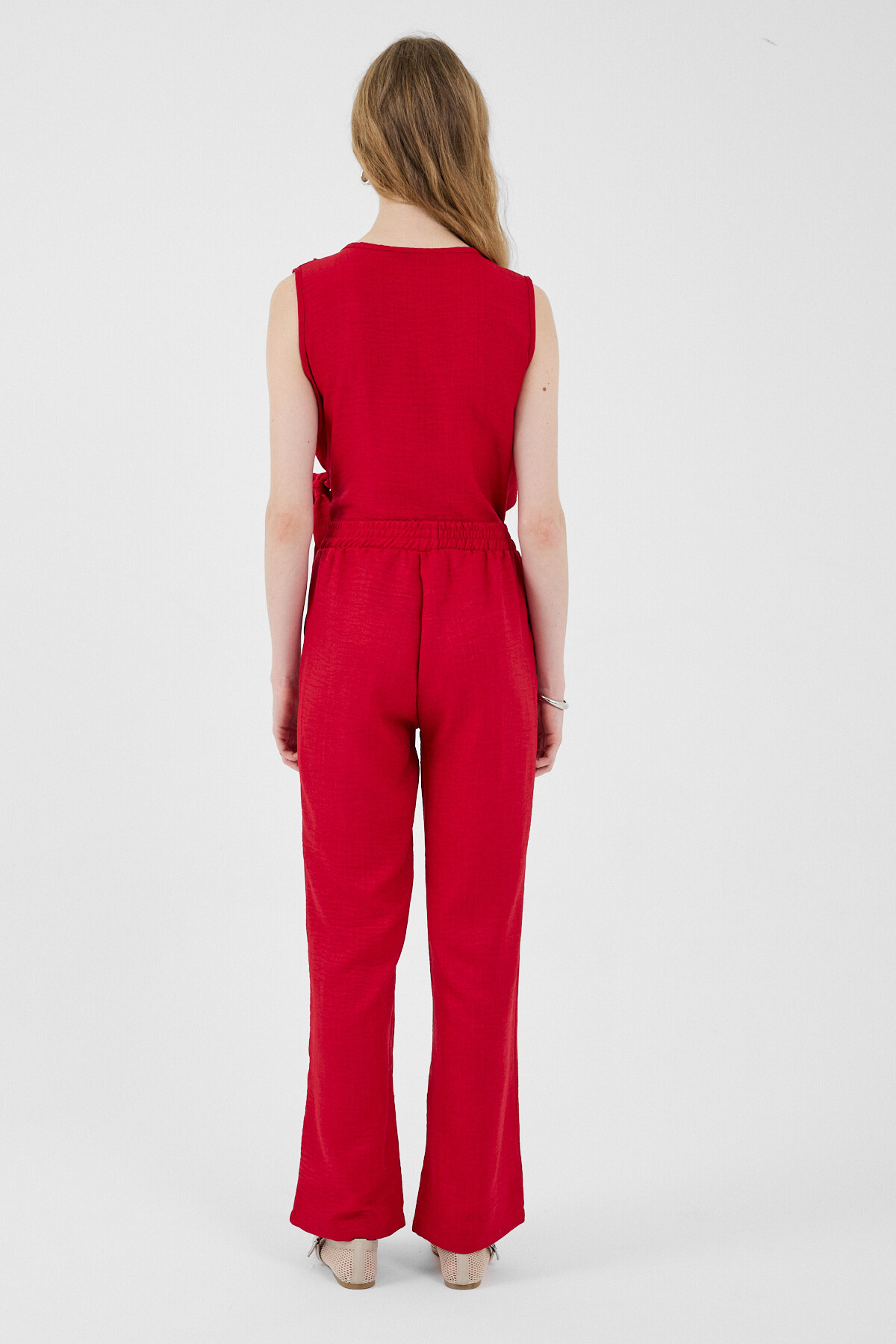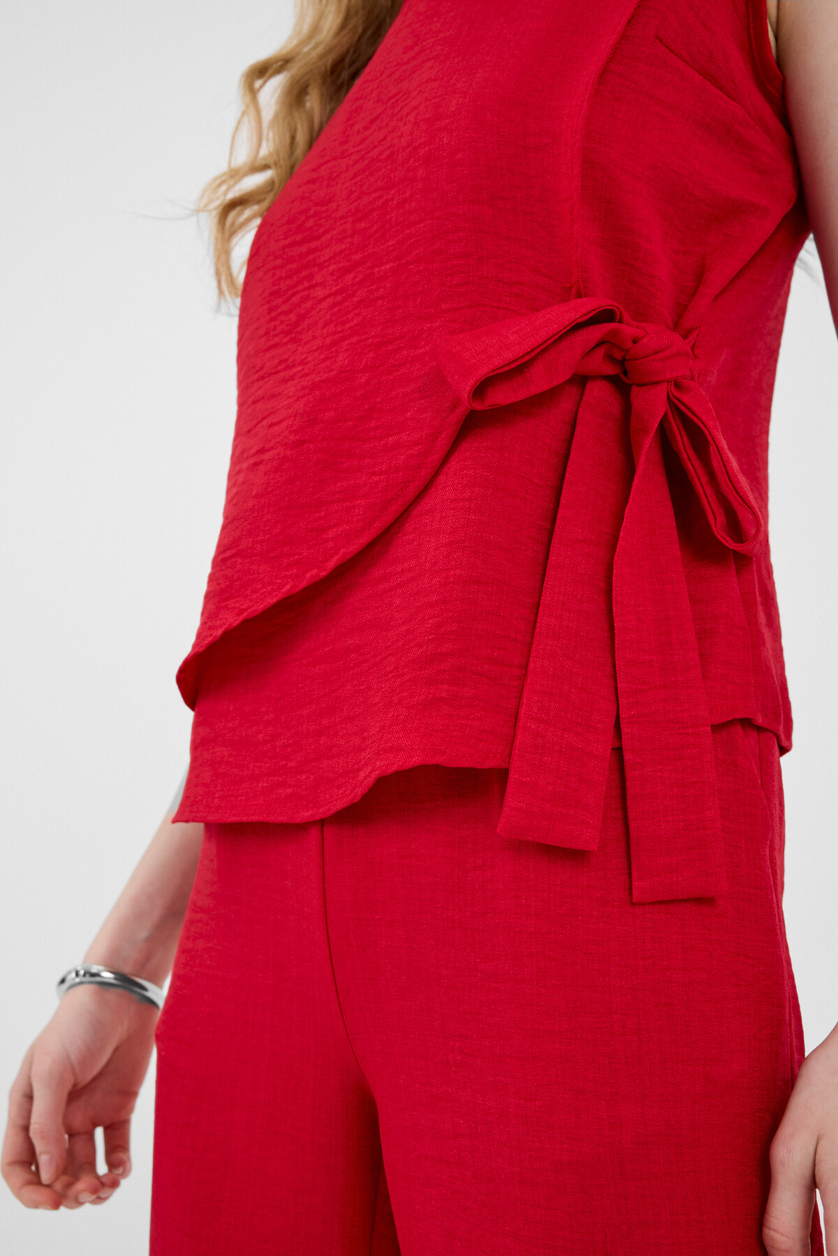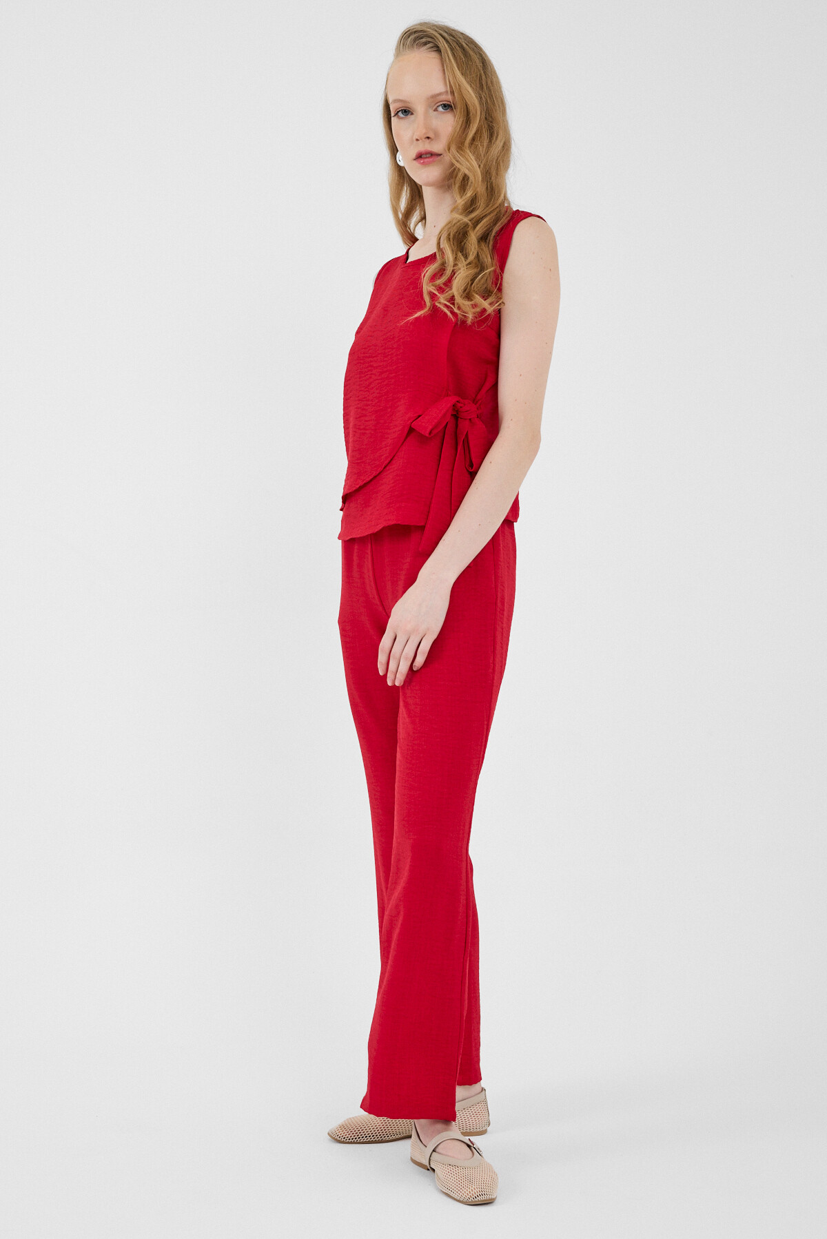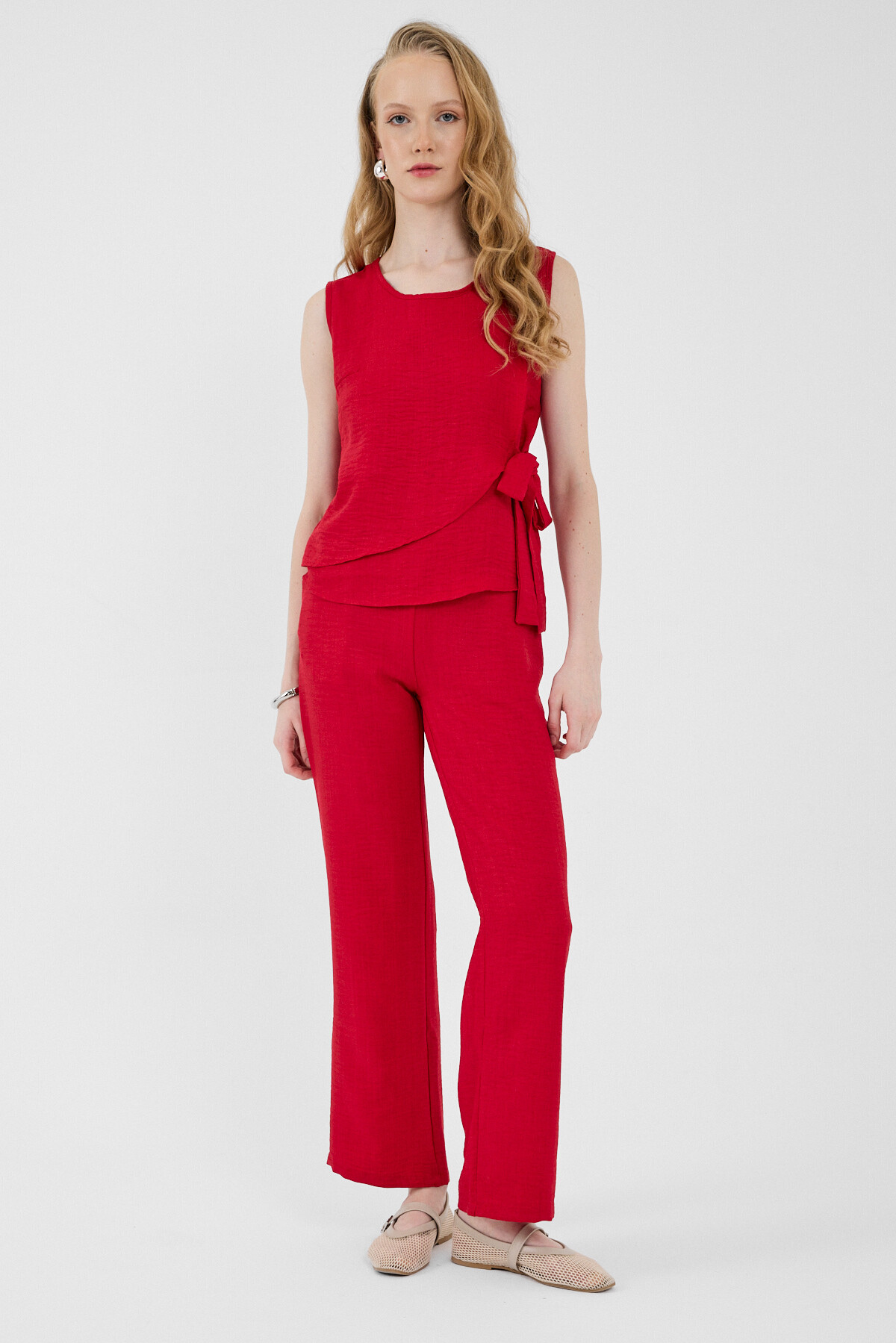 Kırmızı Pamuklu Yan Bağlama Detaylı İkili Takım 8079A