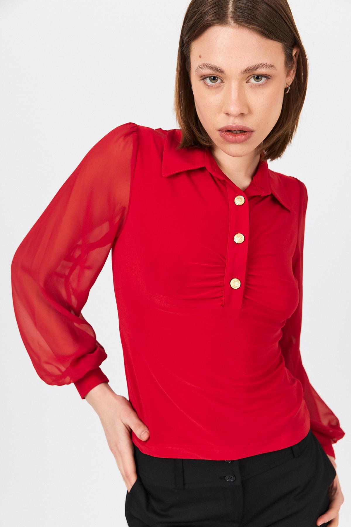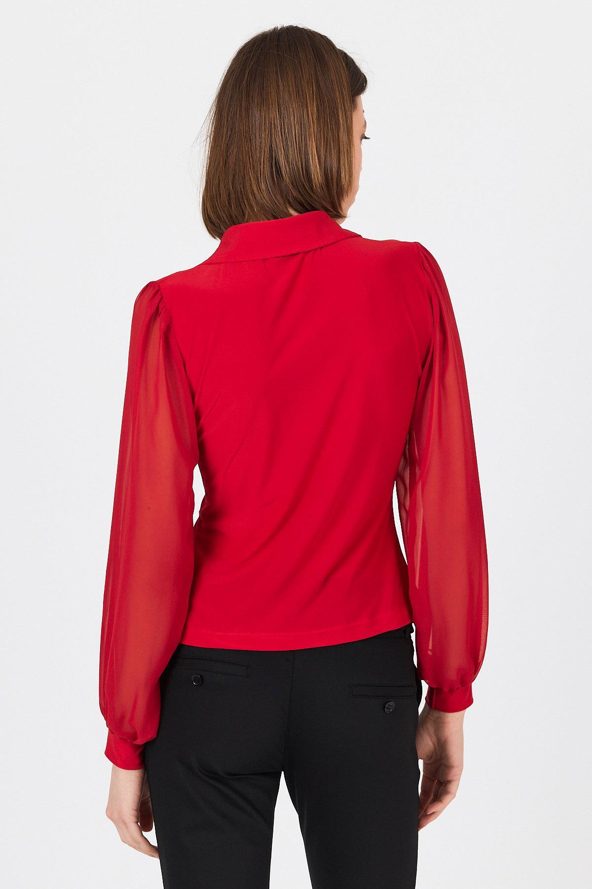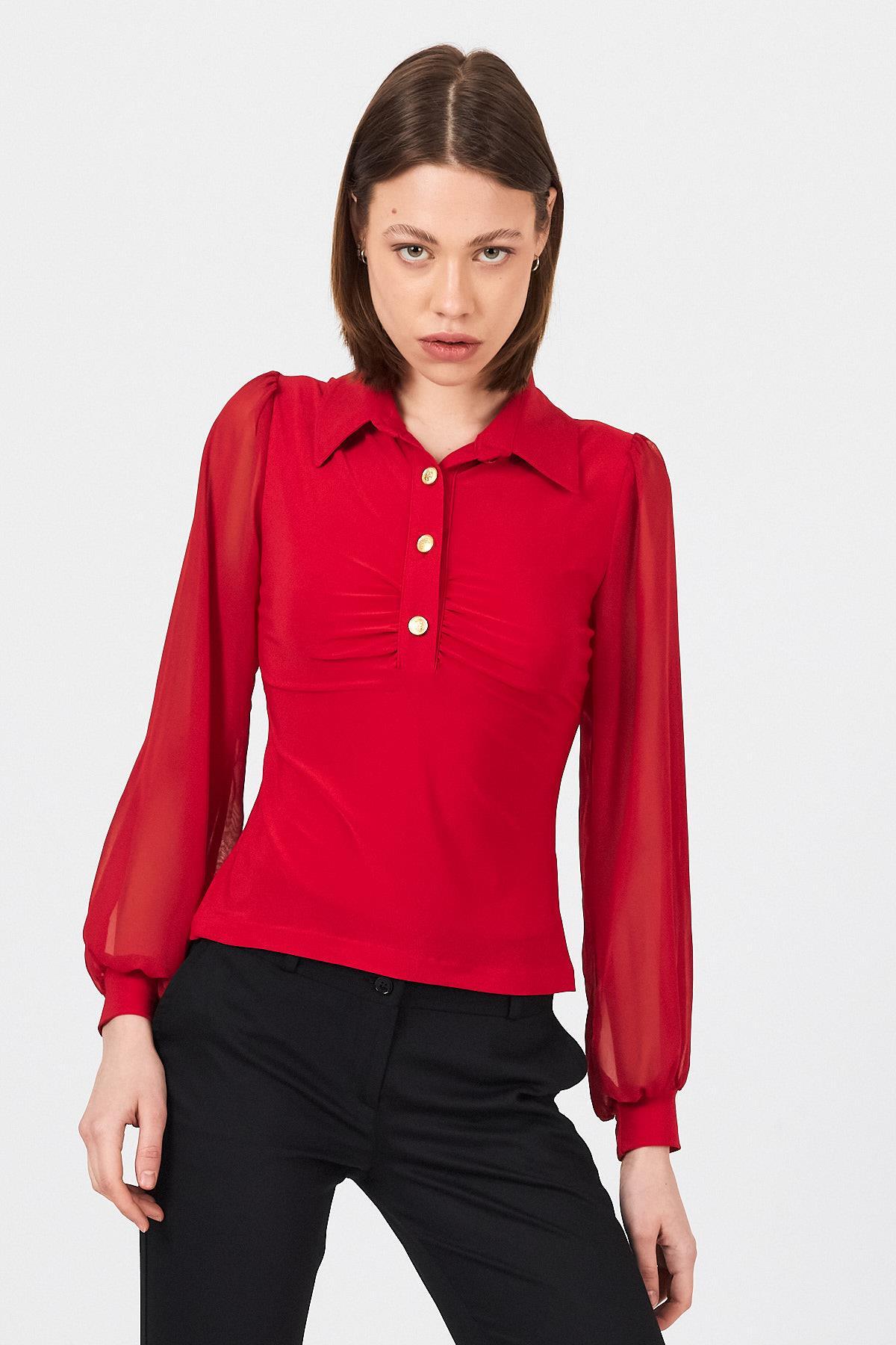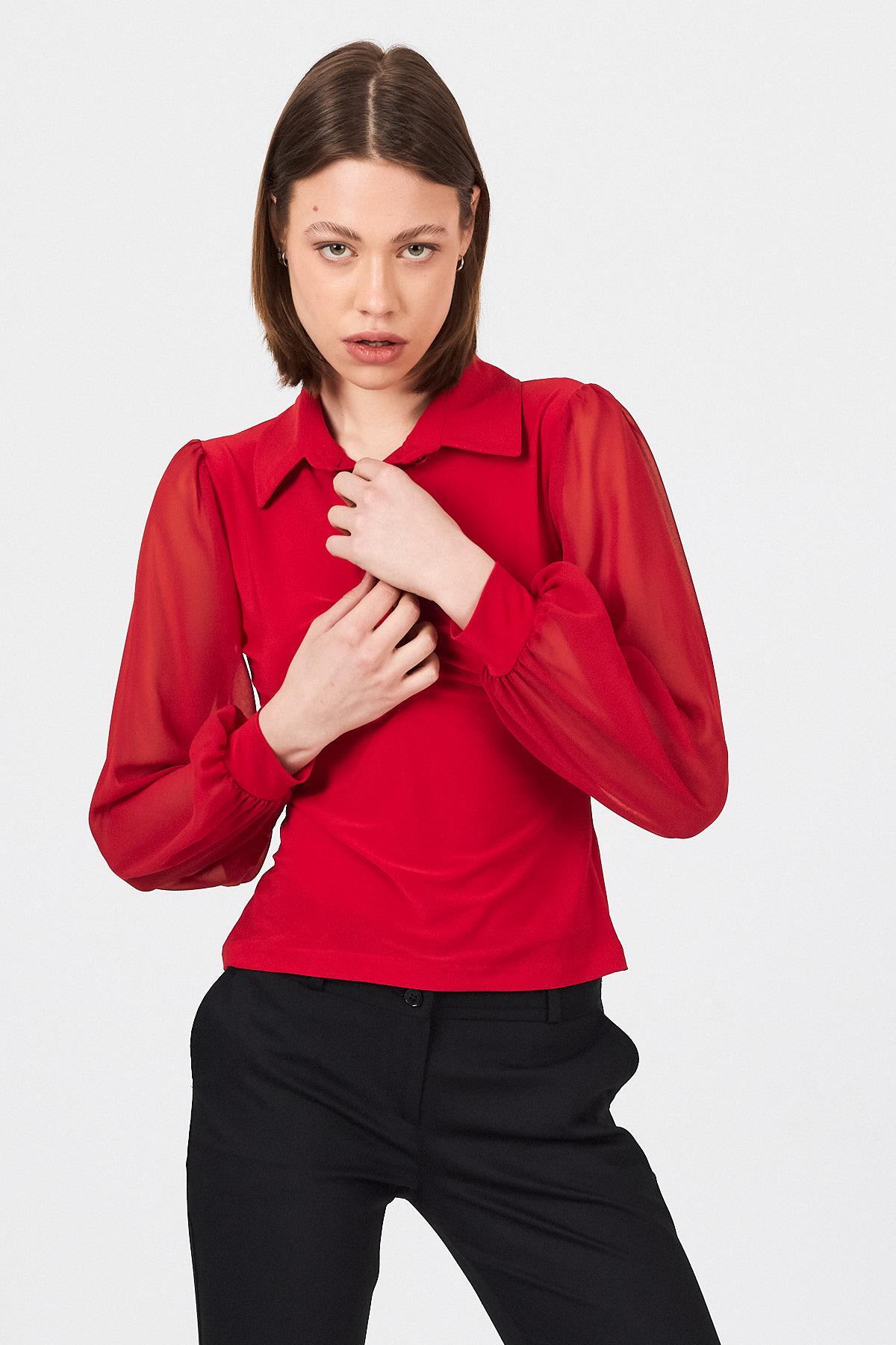 Kırmızı Şifon Kollu Gömlek Yaka Bluz 9478