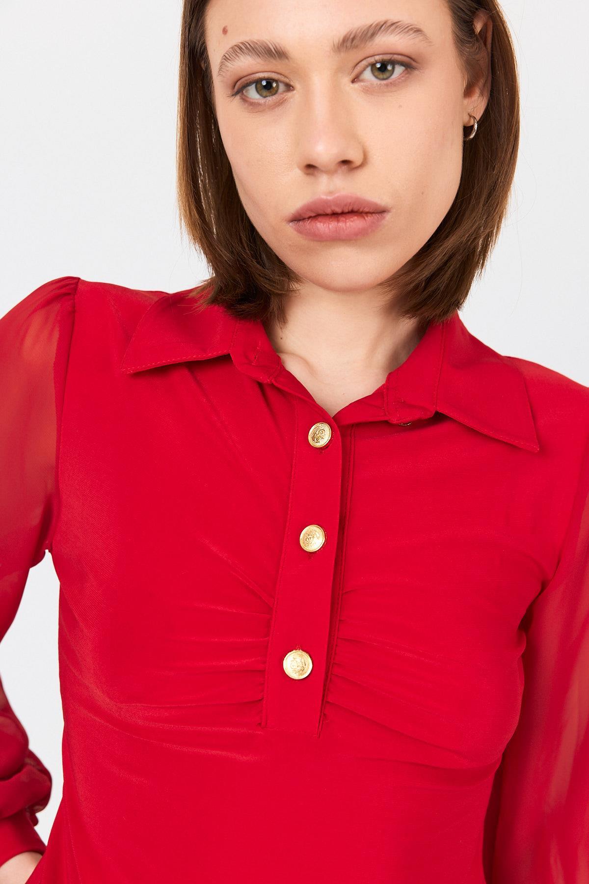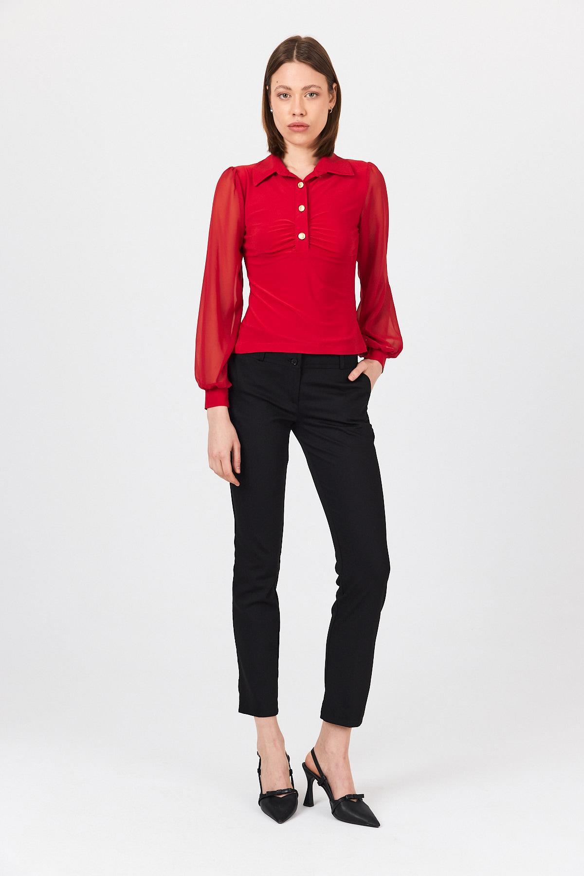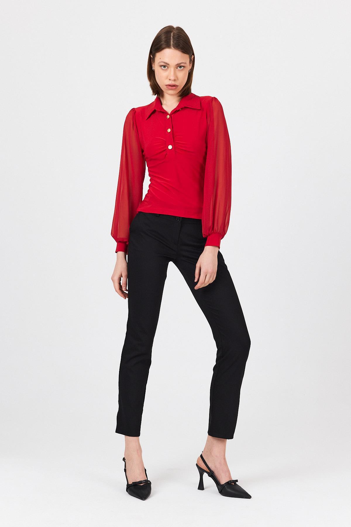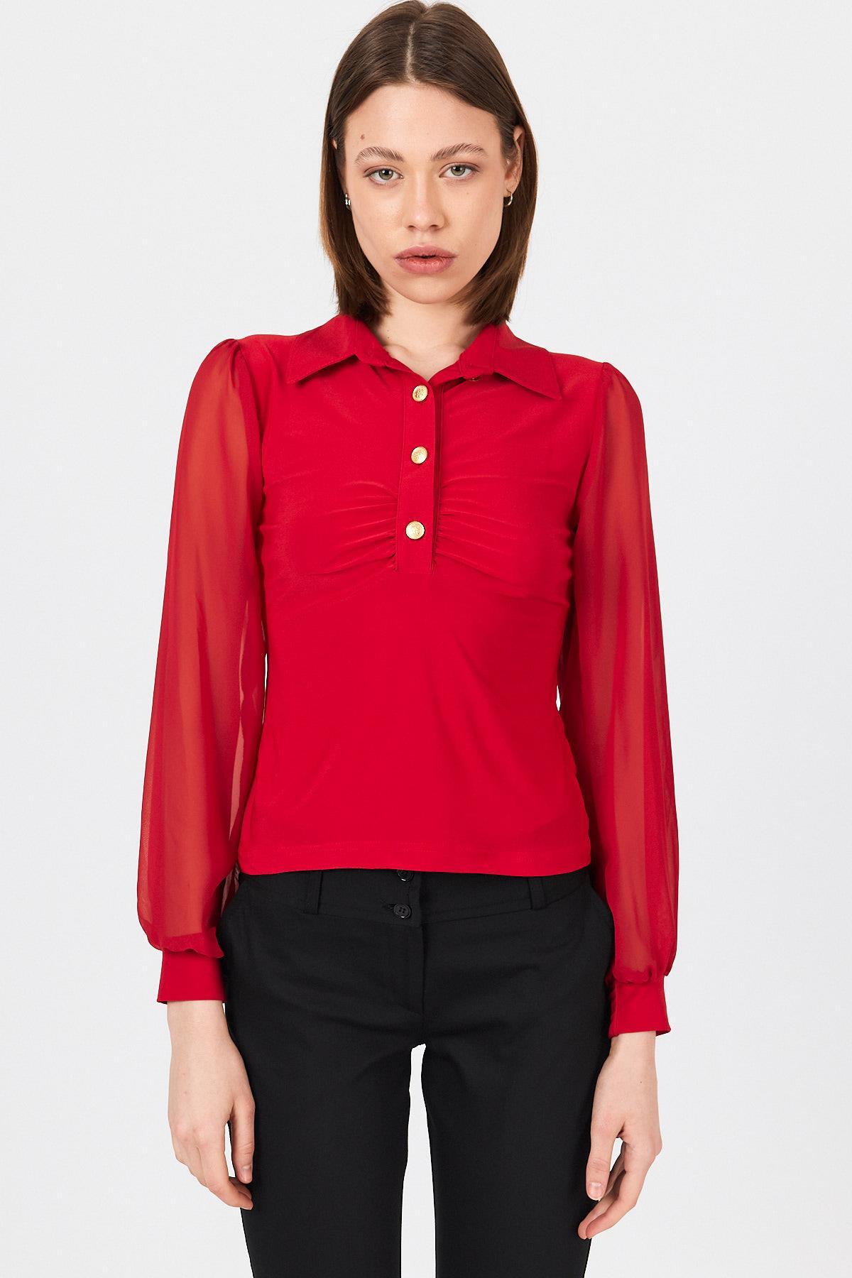 Kırmızı Şifon Kollu Gömlek Yaka Bluz 9478