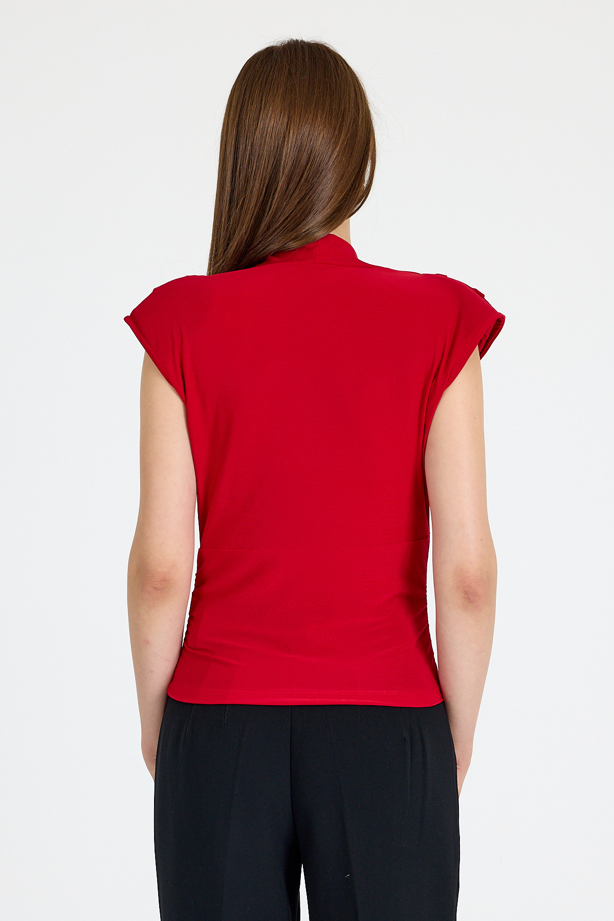 Kırmızı Vatkalı Kruvaze Yaka Drapeli Bluz 2487