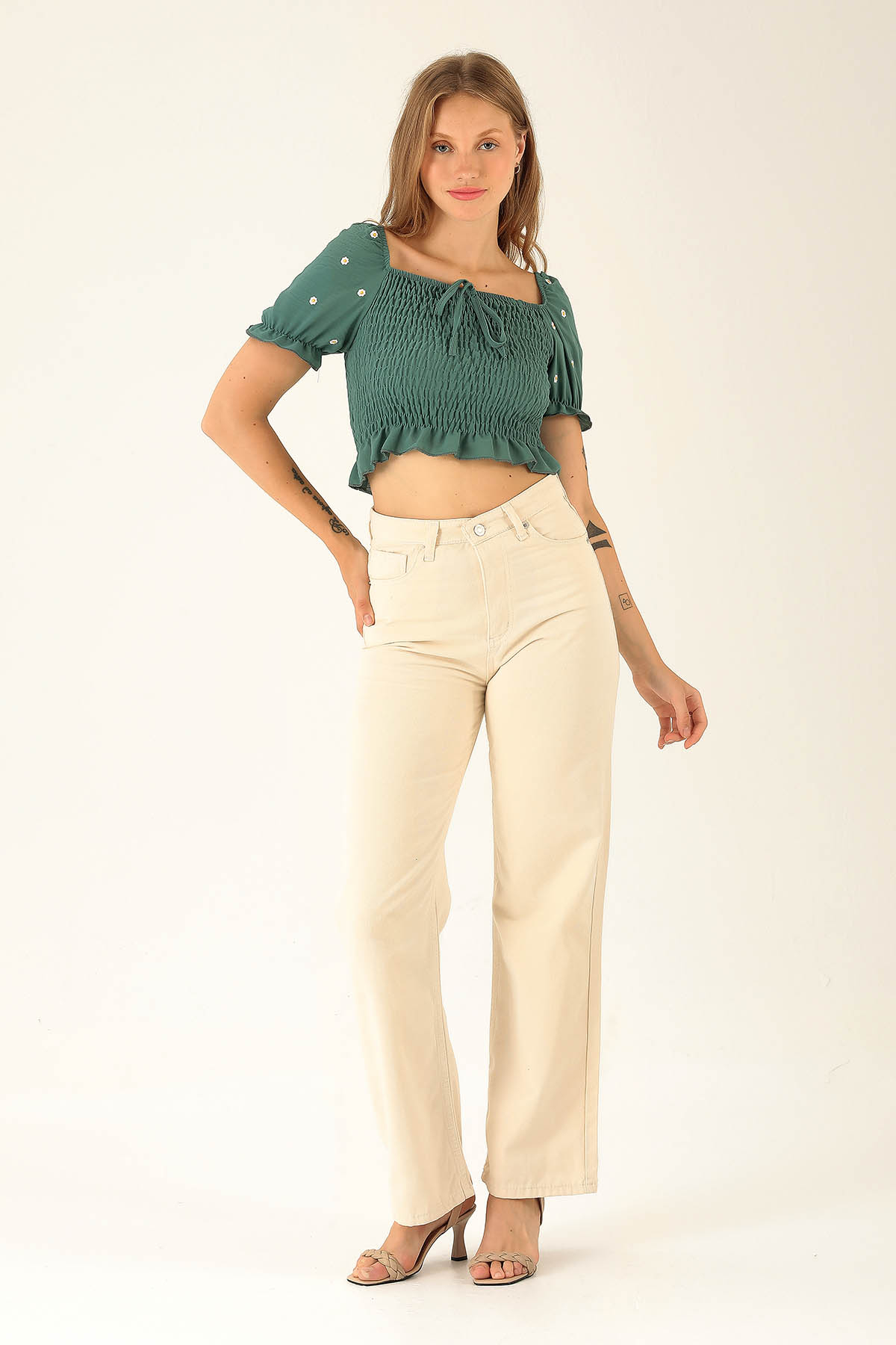 Kol Çiçek Detay Bluz - 8152 Çağla