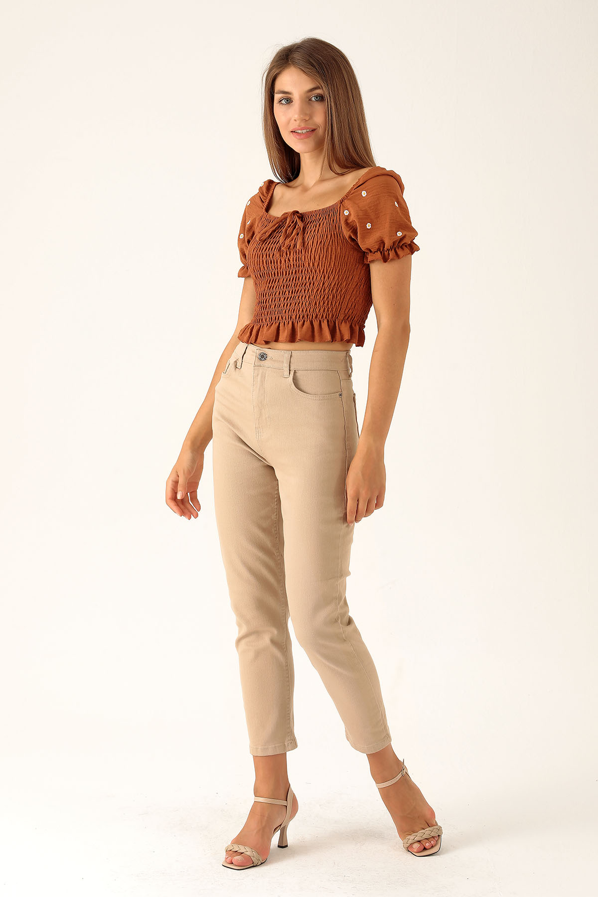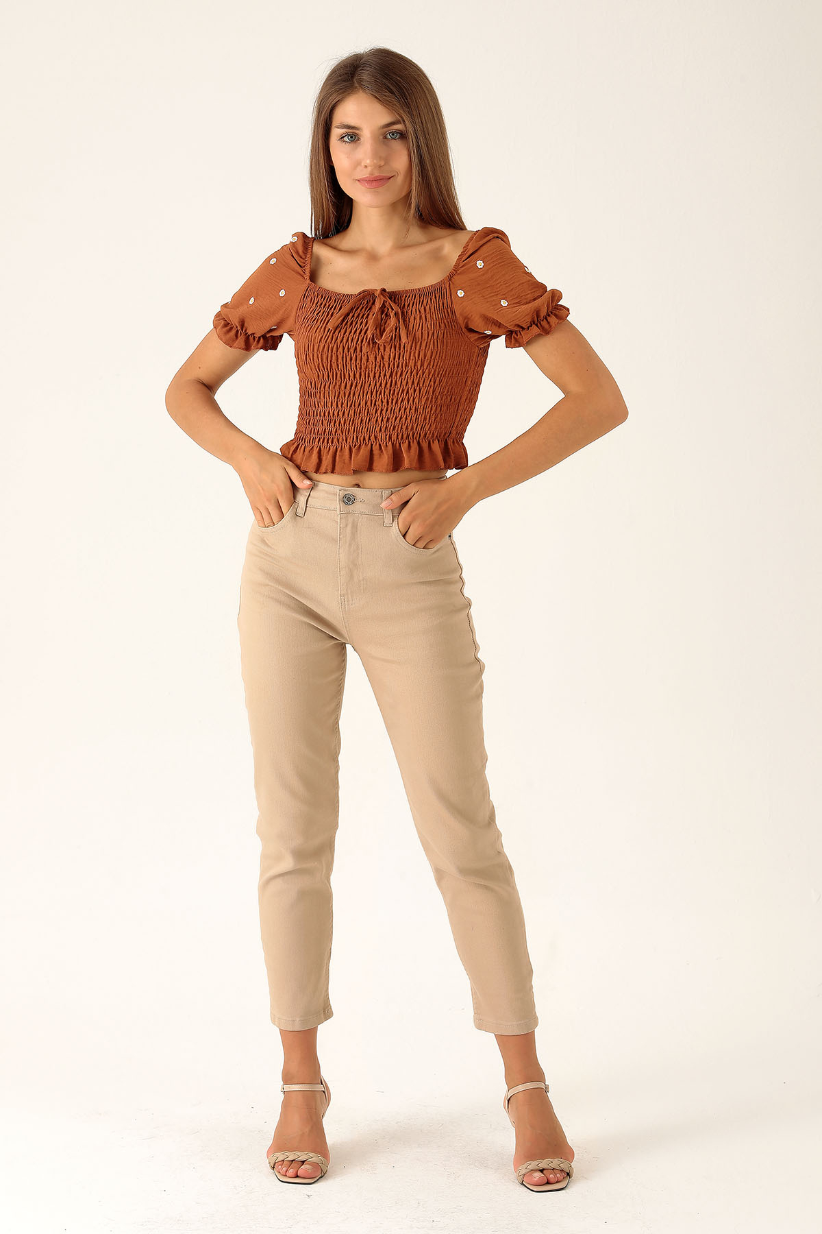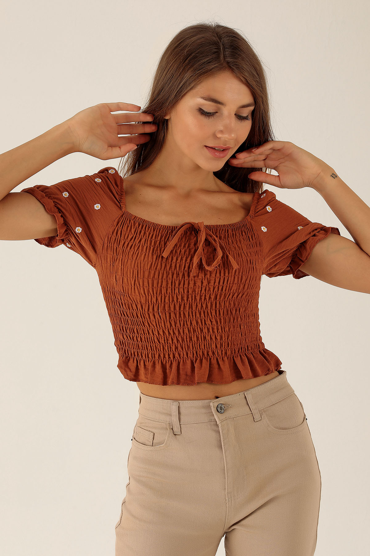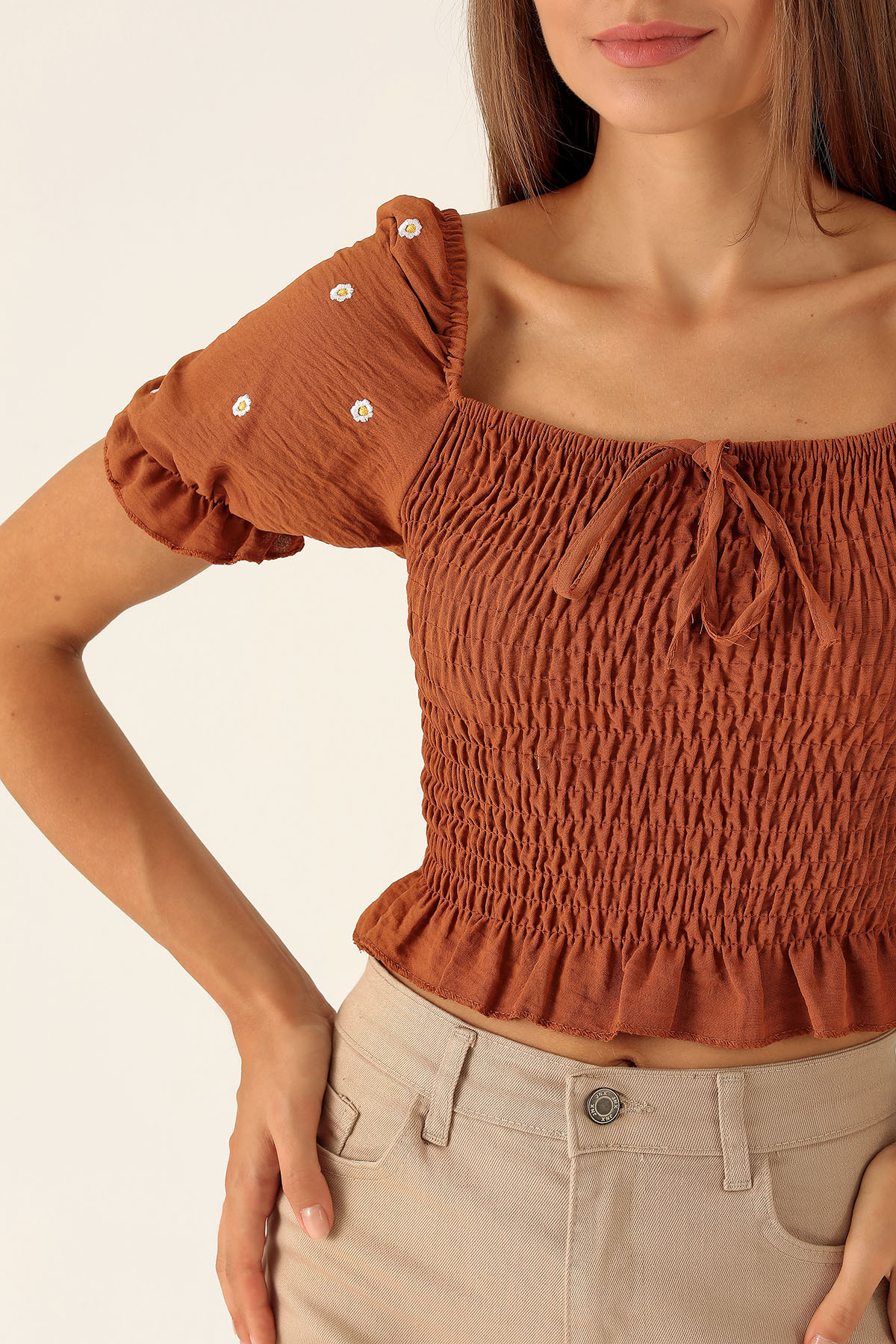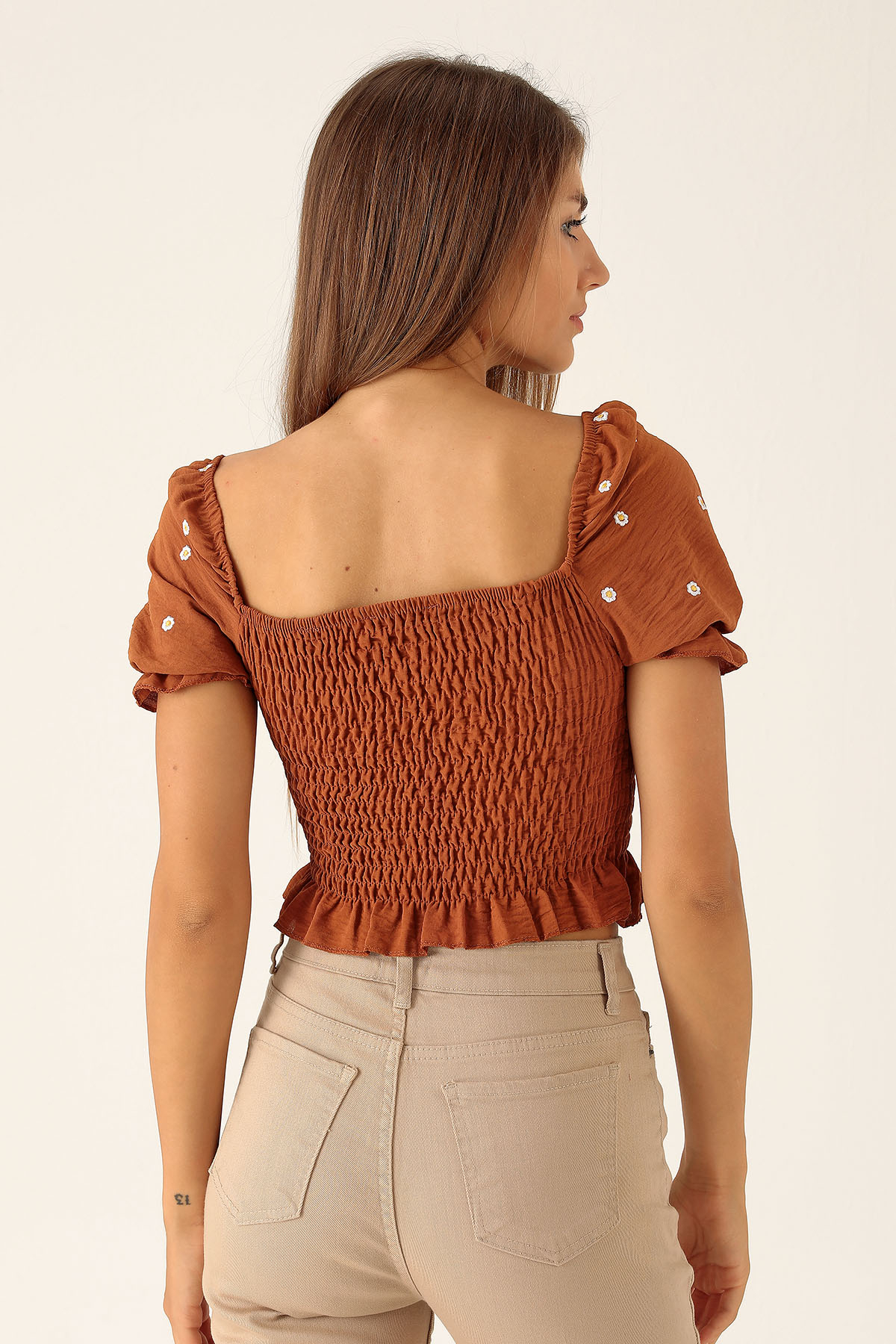 Kol Çiçek Detay Bluz - 8152 Kiremit