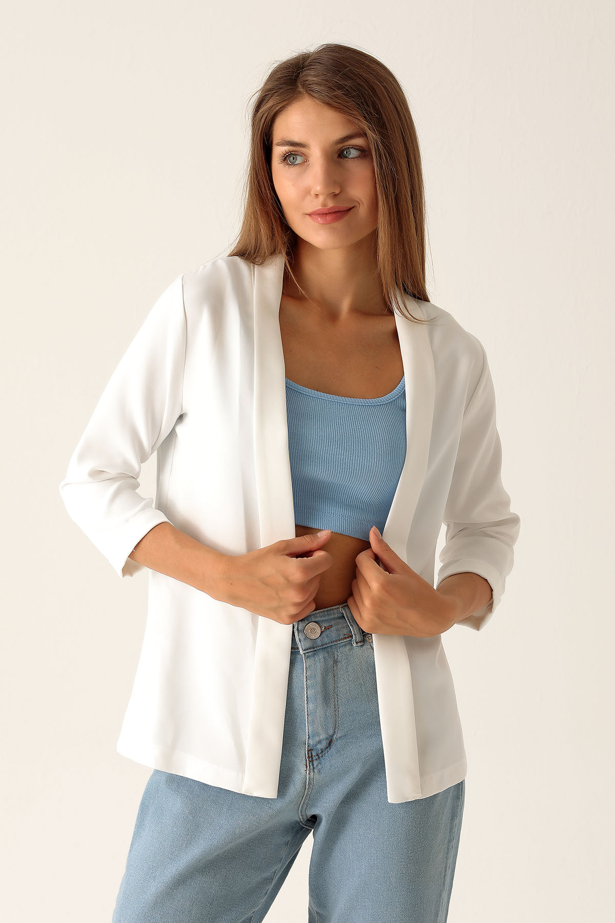 Kol Katlama Detay Ceket - 6382A Ekru
