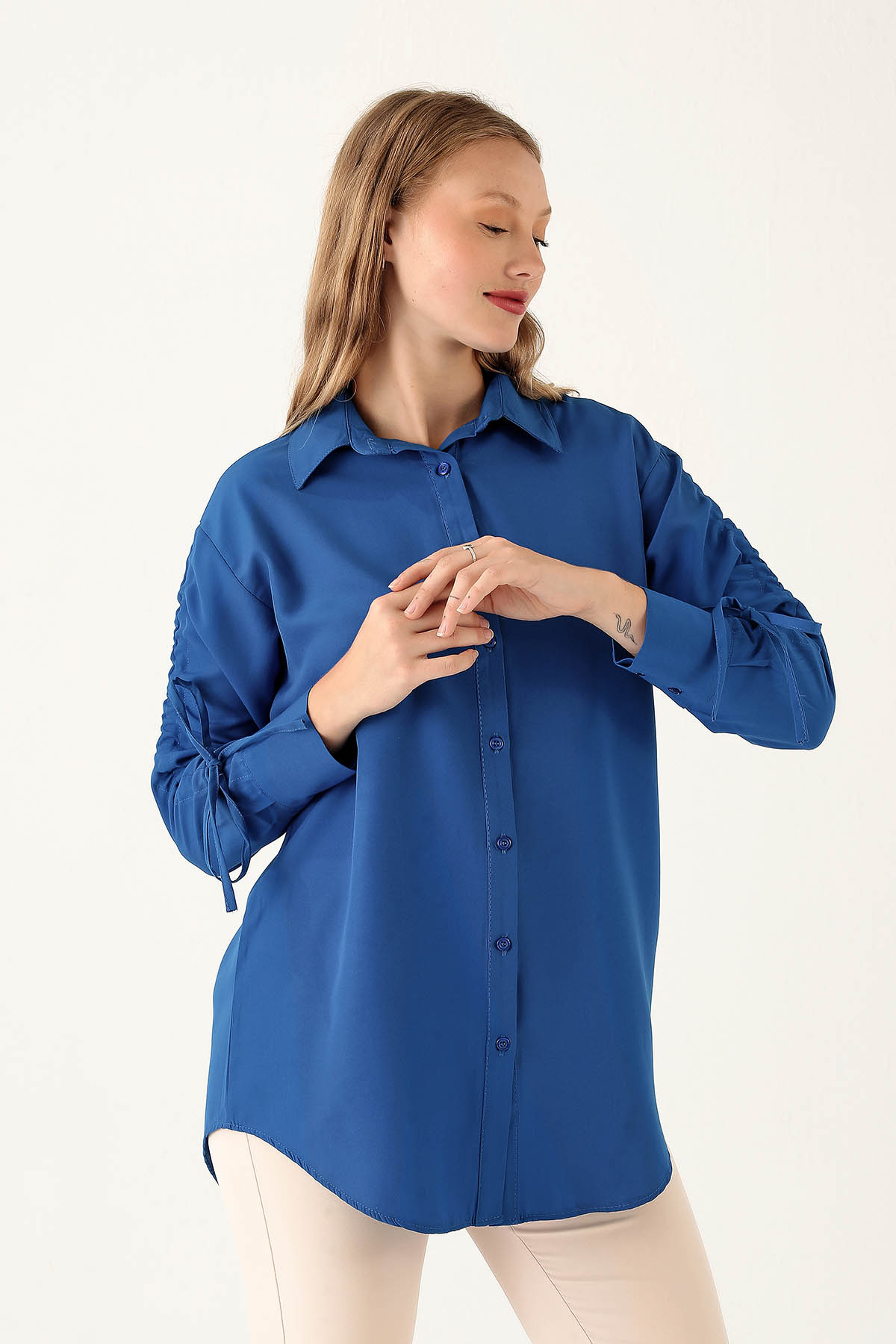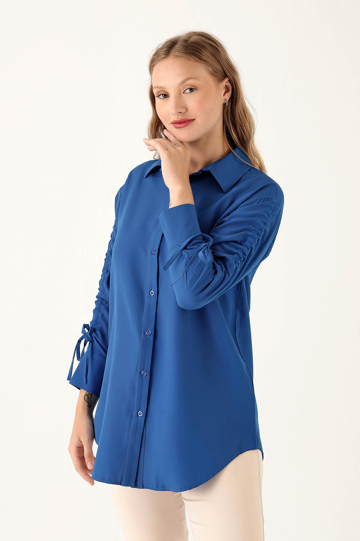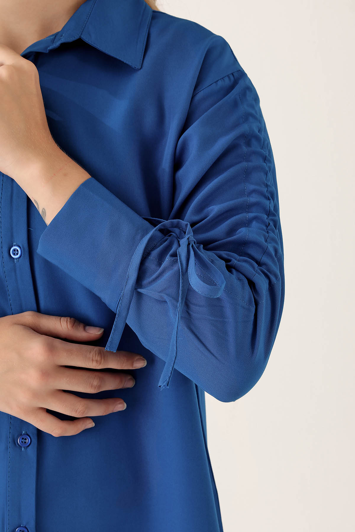 Kolları Büzgülü Bayan Gömlek - 6436A Saks