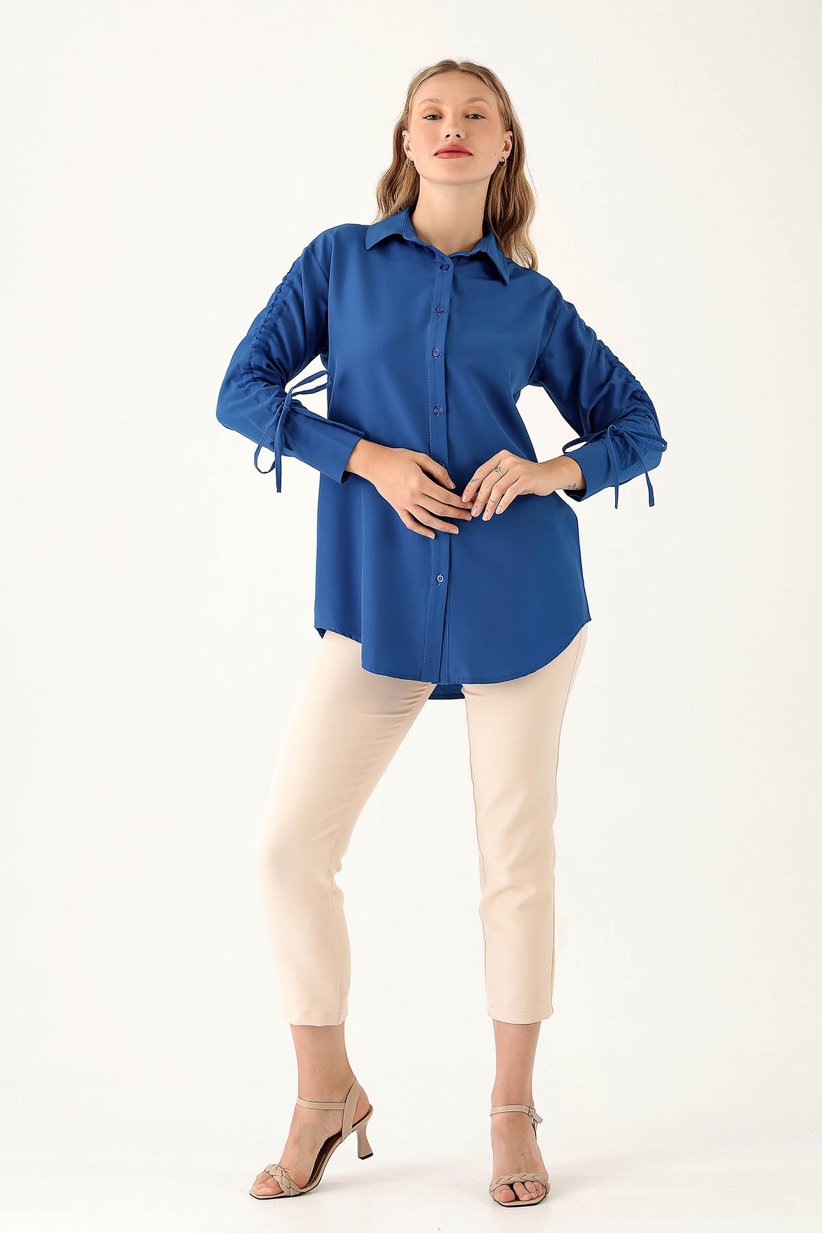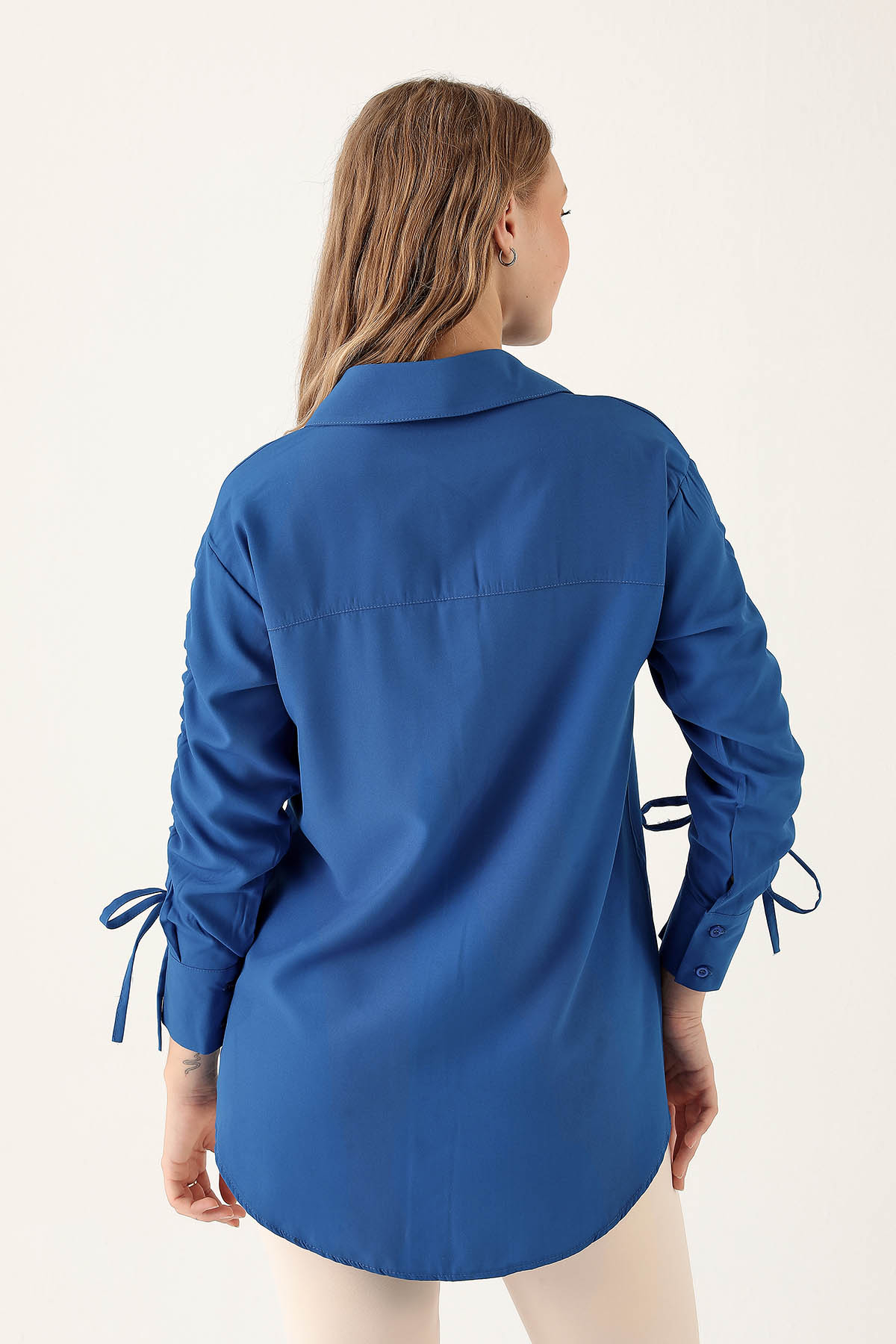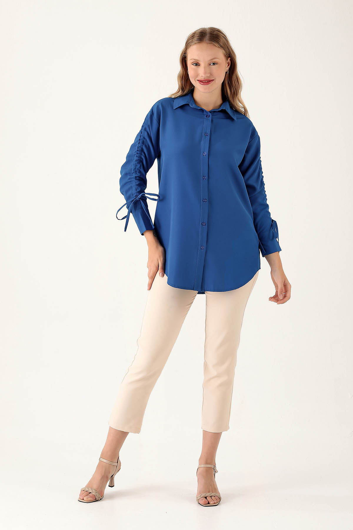 Kolları Büzgülü Bayan Gömlek - 6436A Saks