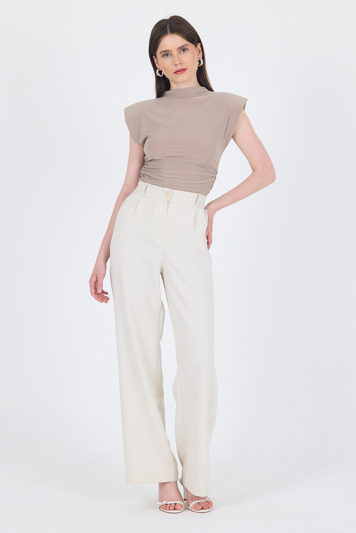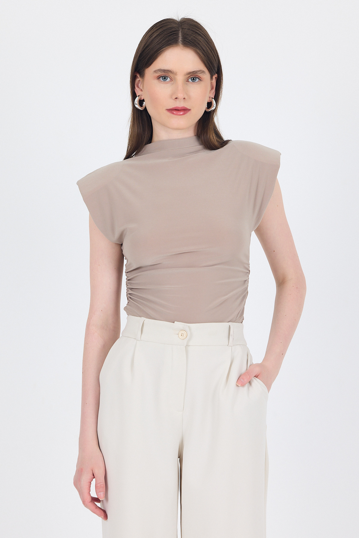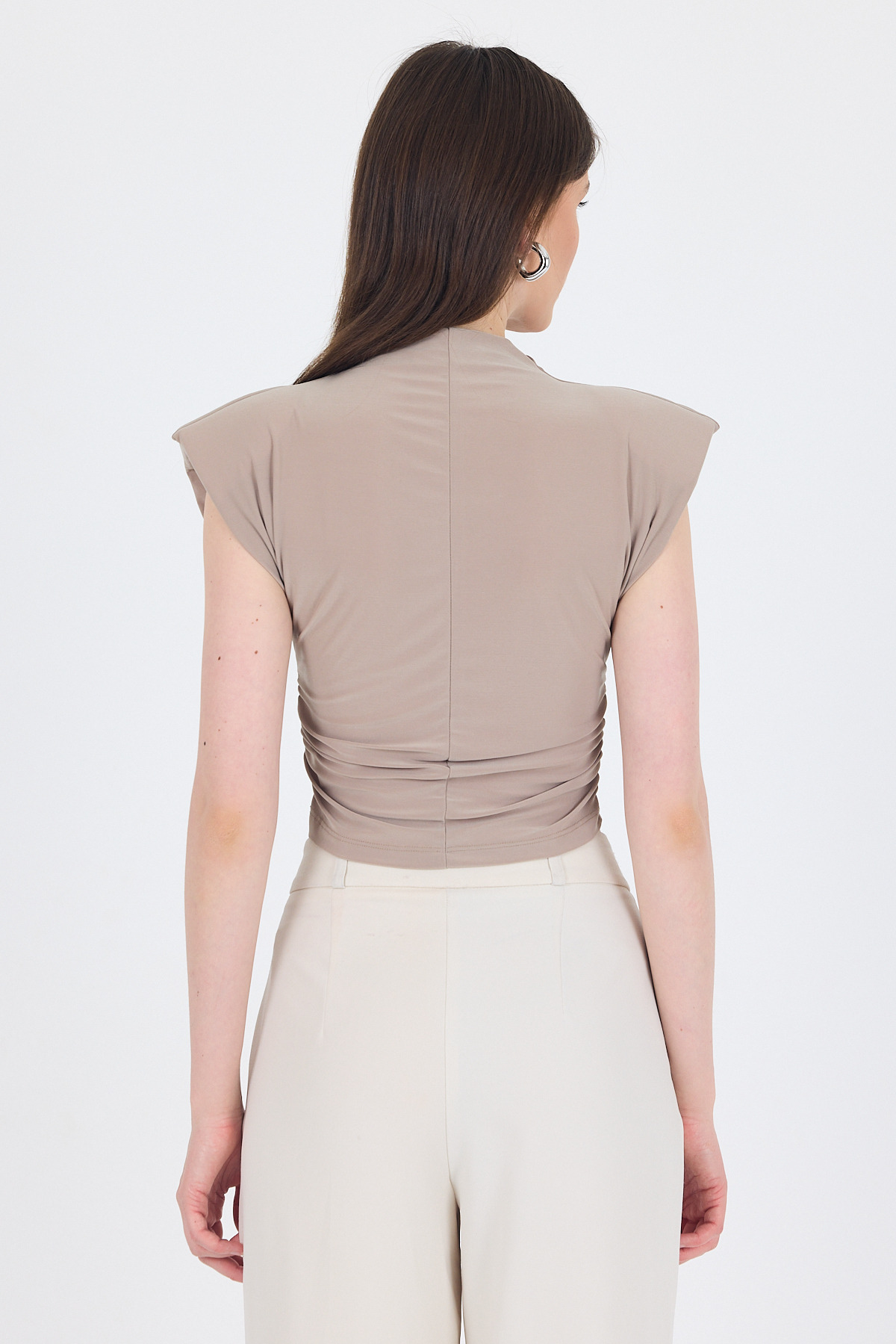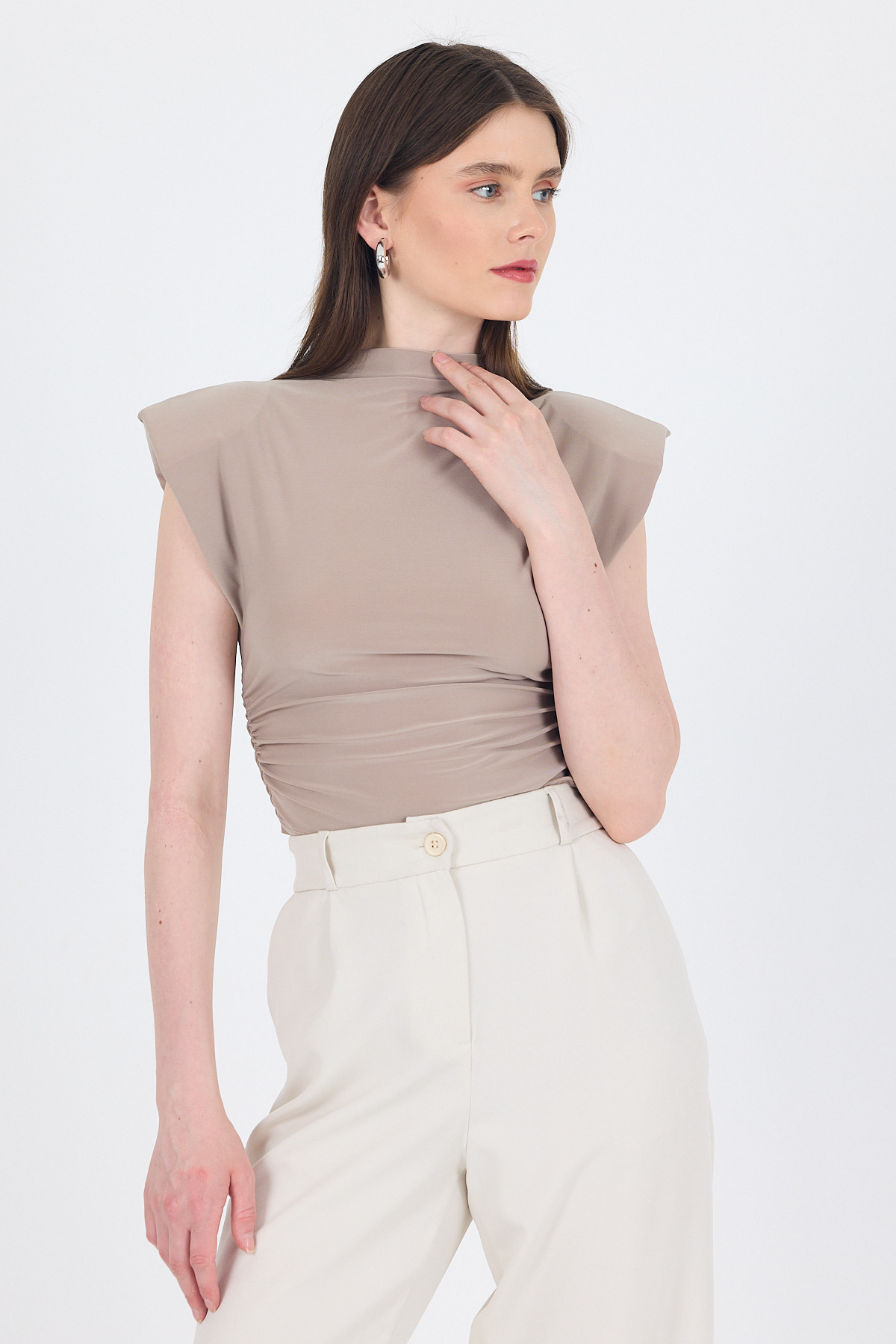 Koyu Taş Vatkalı Dik Yaka Drapeli Bluz 13185