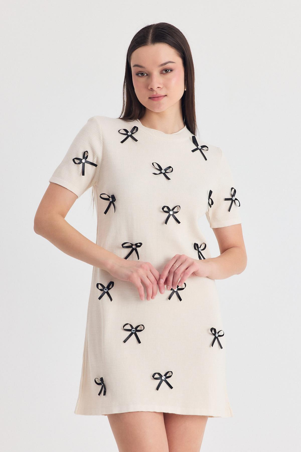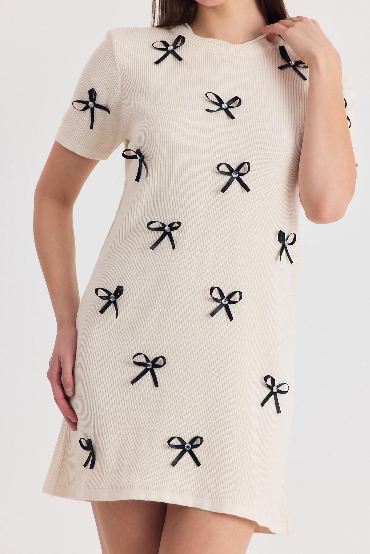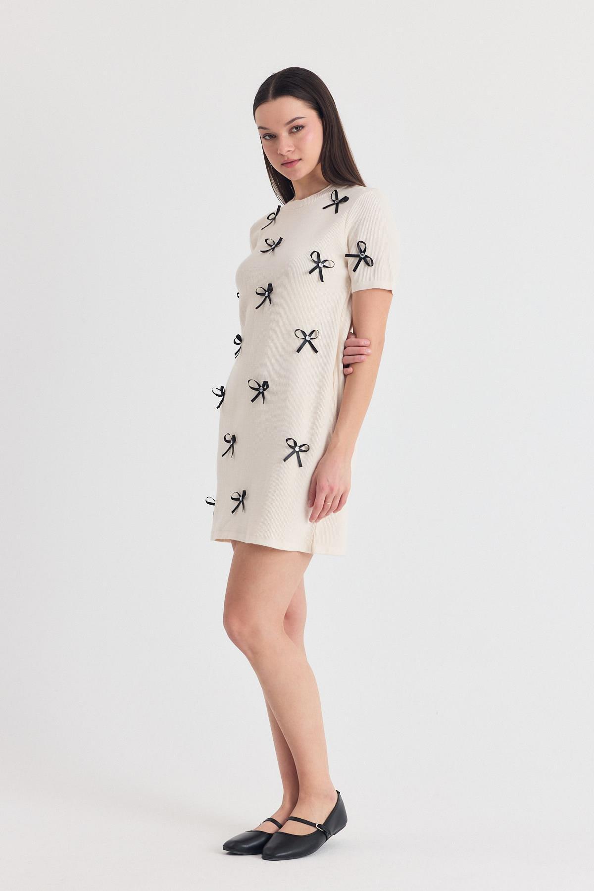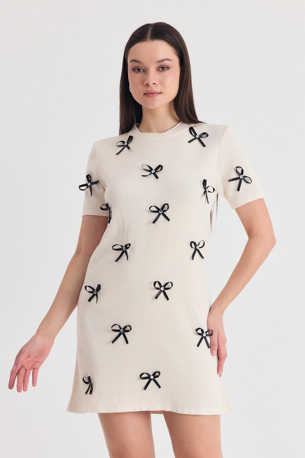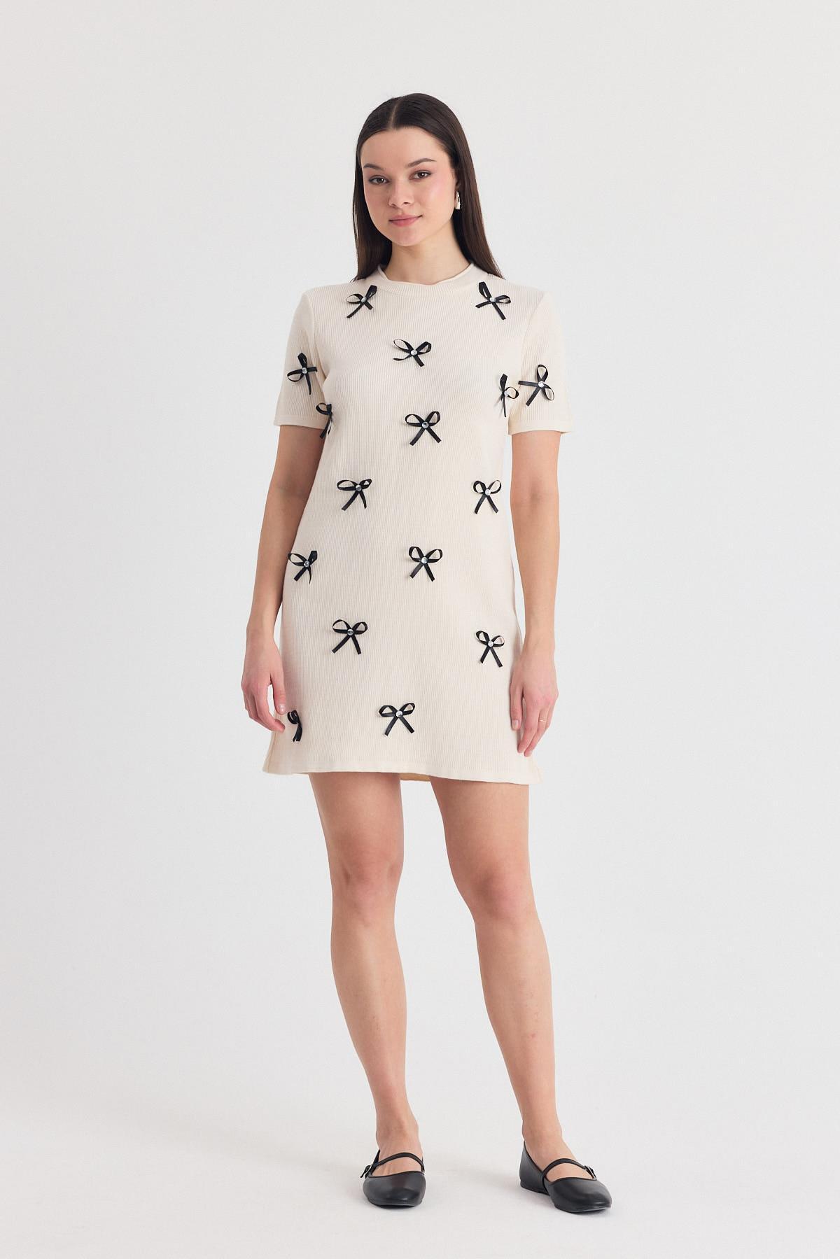 8392A Kemerli Kısa Elbise Ekru - RAYS 8392A Kemerli Kısa Elbise Ekru - RAYS (1)
