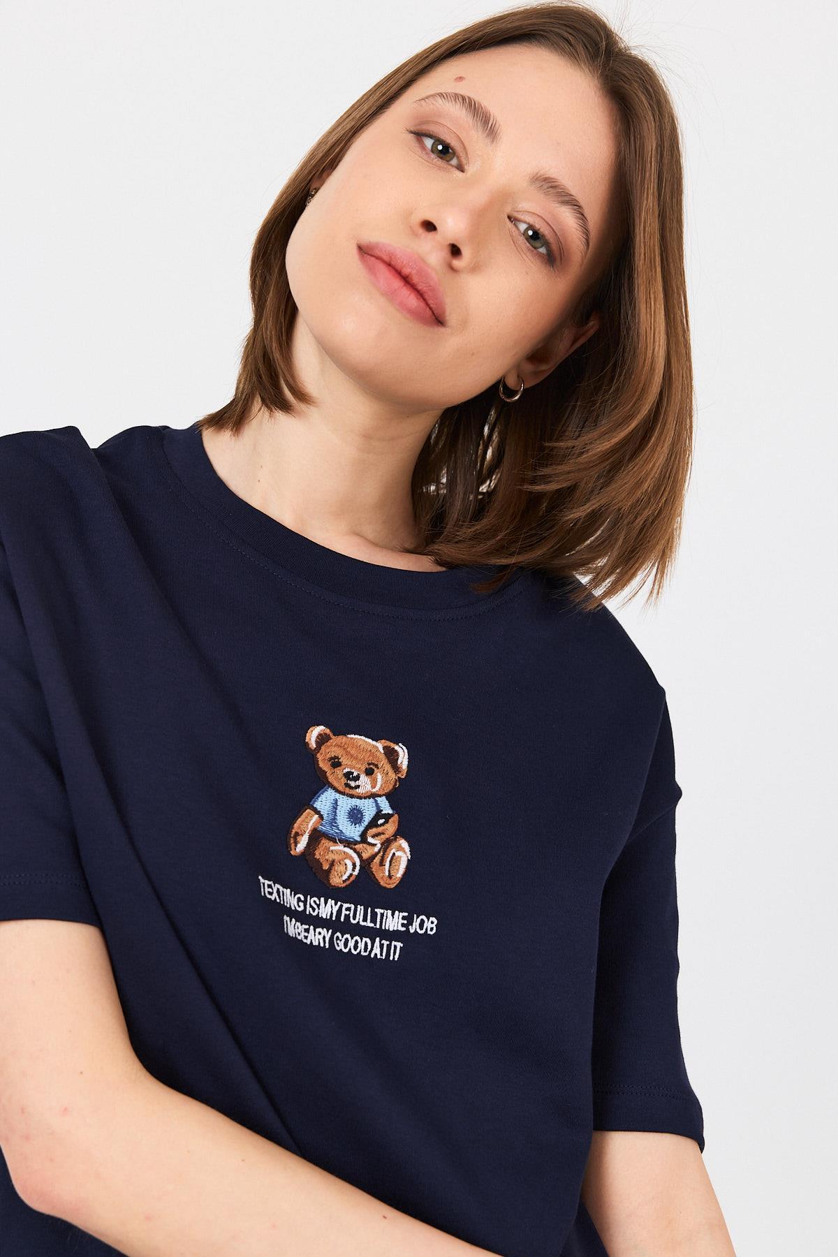 Laci Ayı Baskılı Yazılı Oversize Tişört 5632