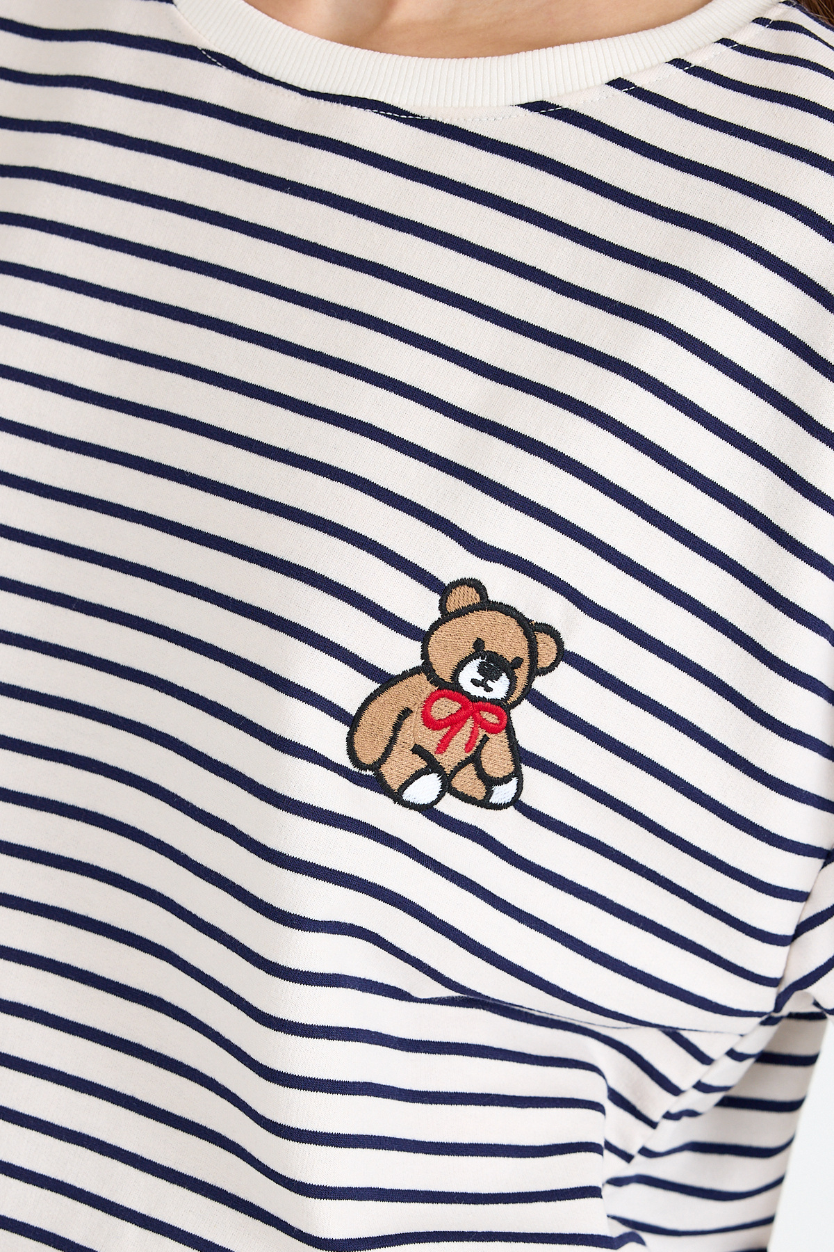 Laci Ayı Nakışlı Çizgili Oversize Tişört 3083
