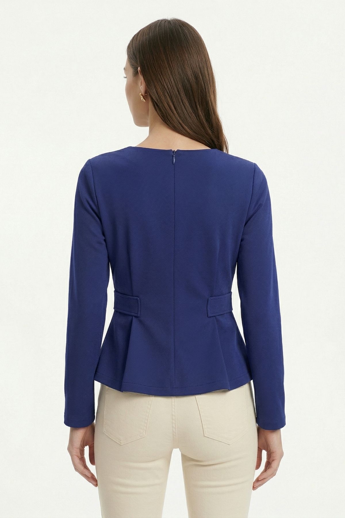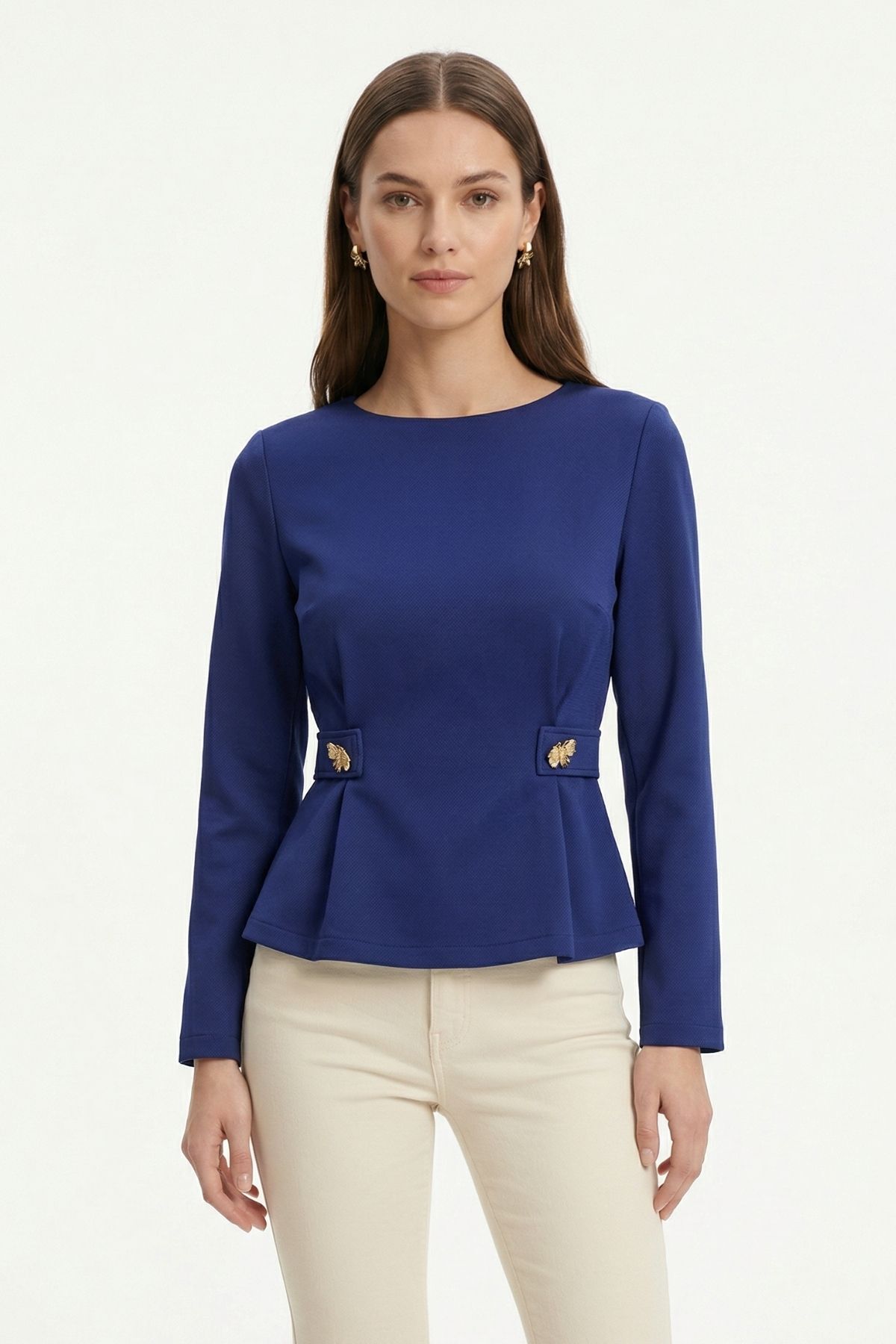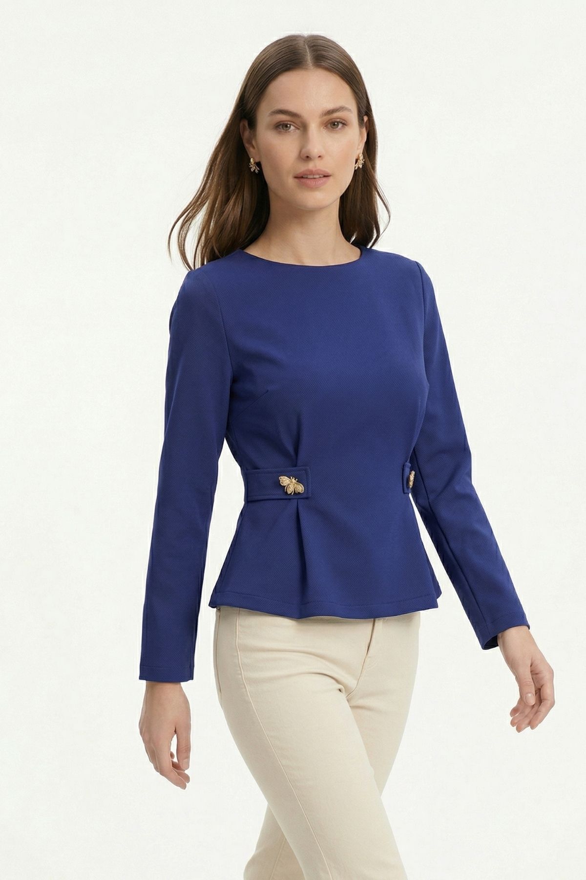 8492A Bisiklet Yaka Uzun Kol Düğmeli Bluz