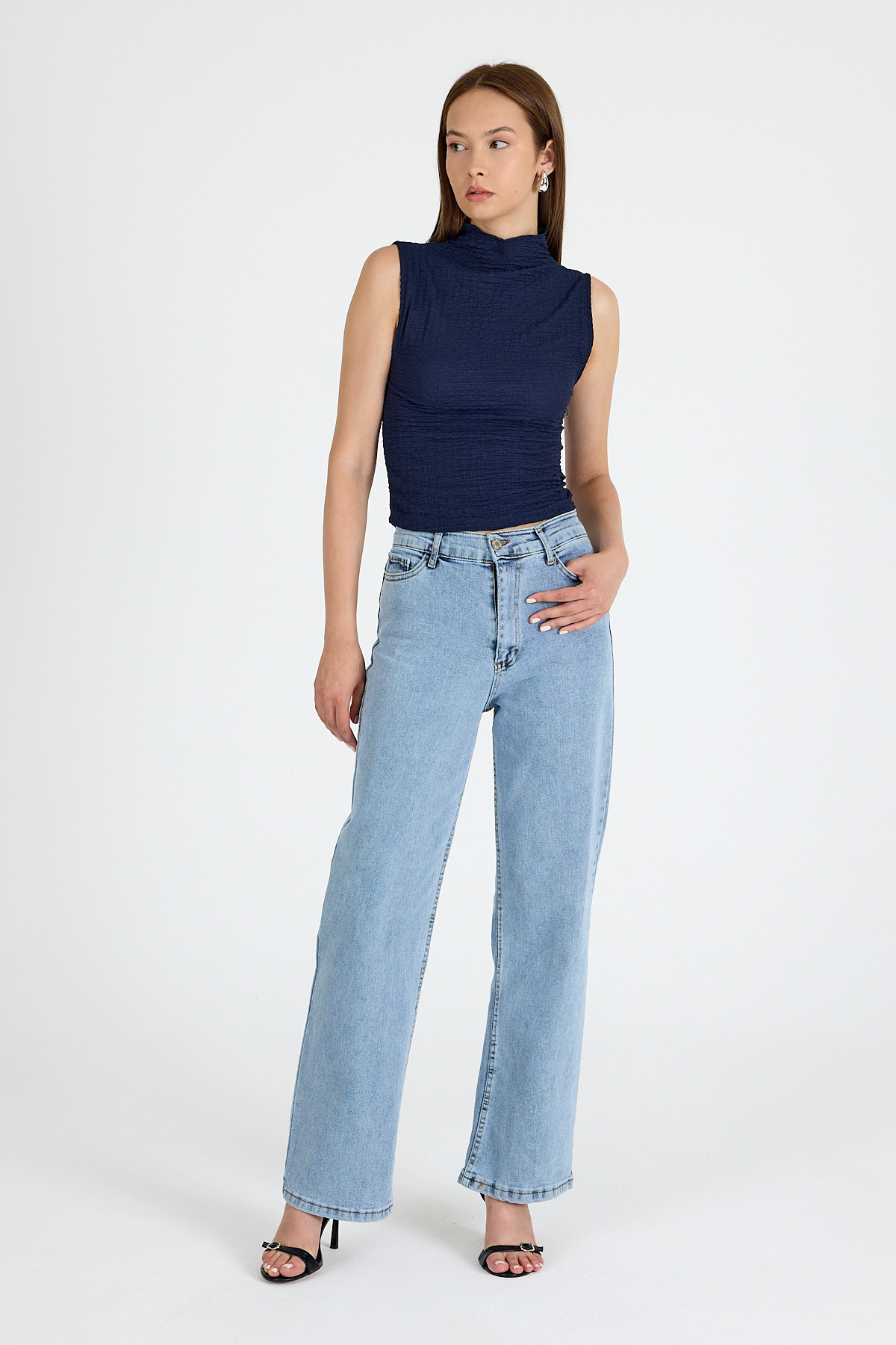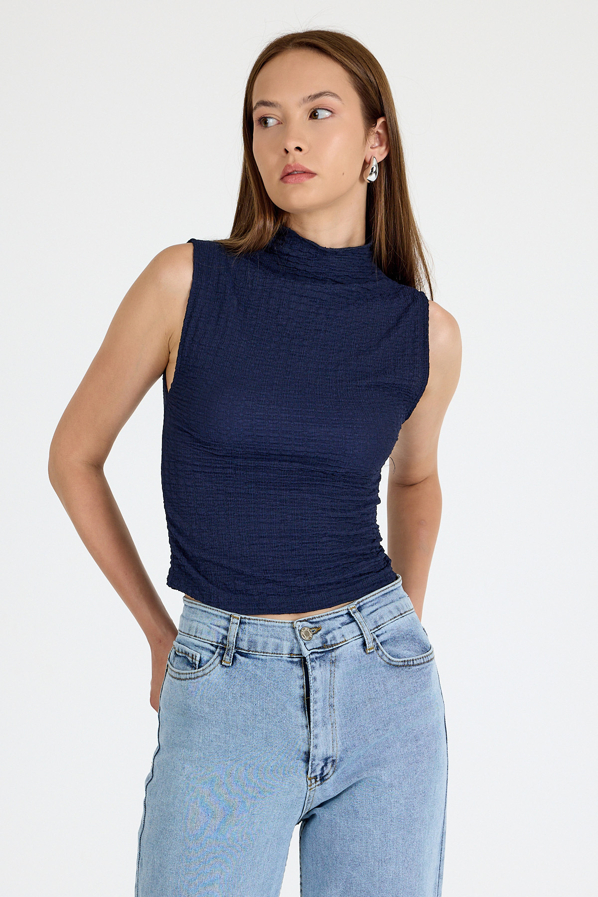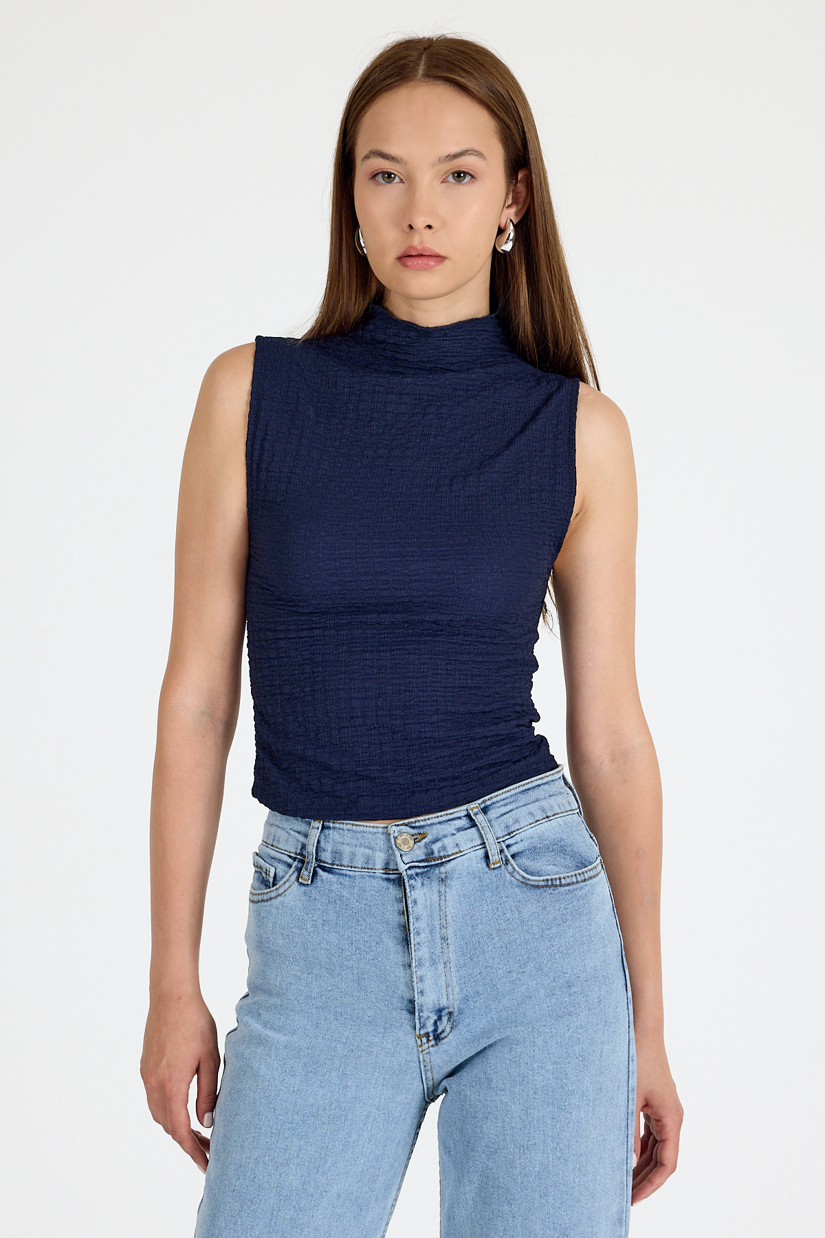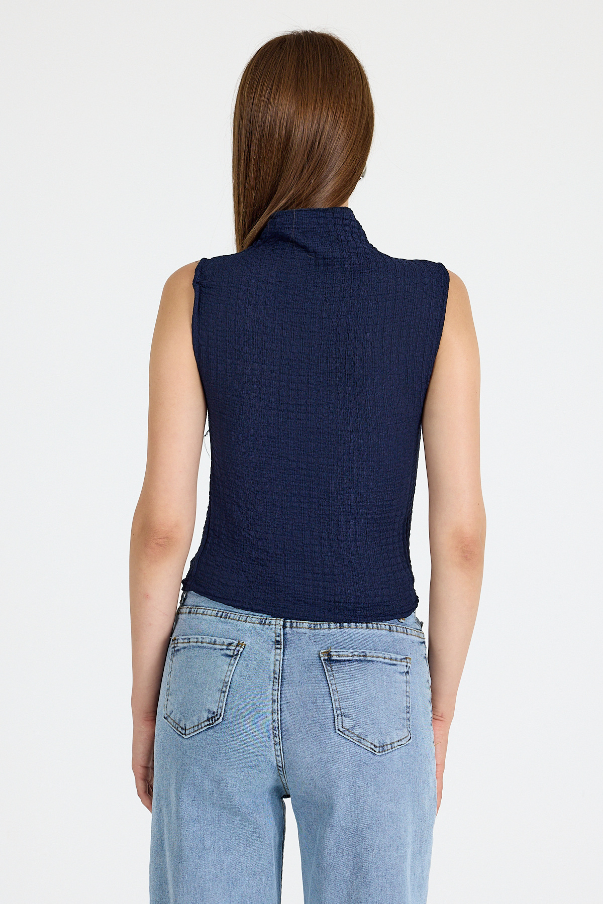Laci Bürümcük Kumaş Dik Yaka Kolsuz Bluz 3458