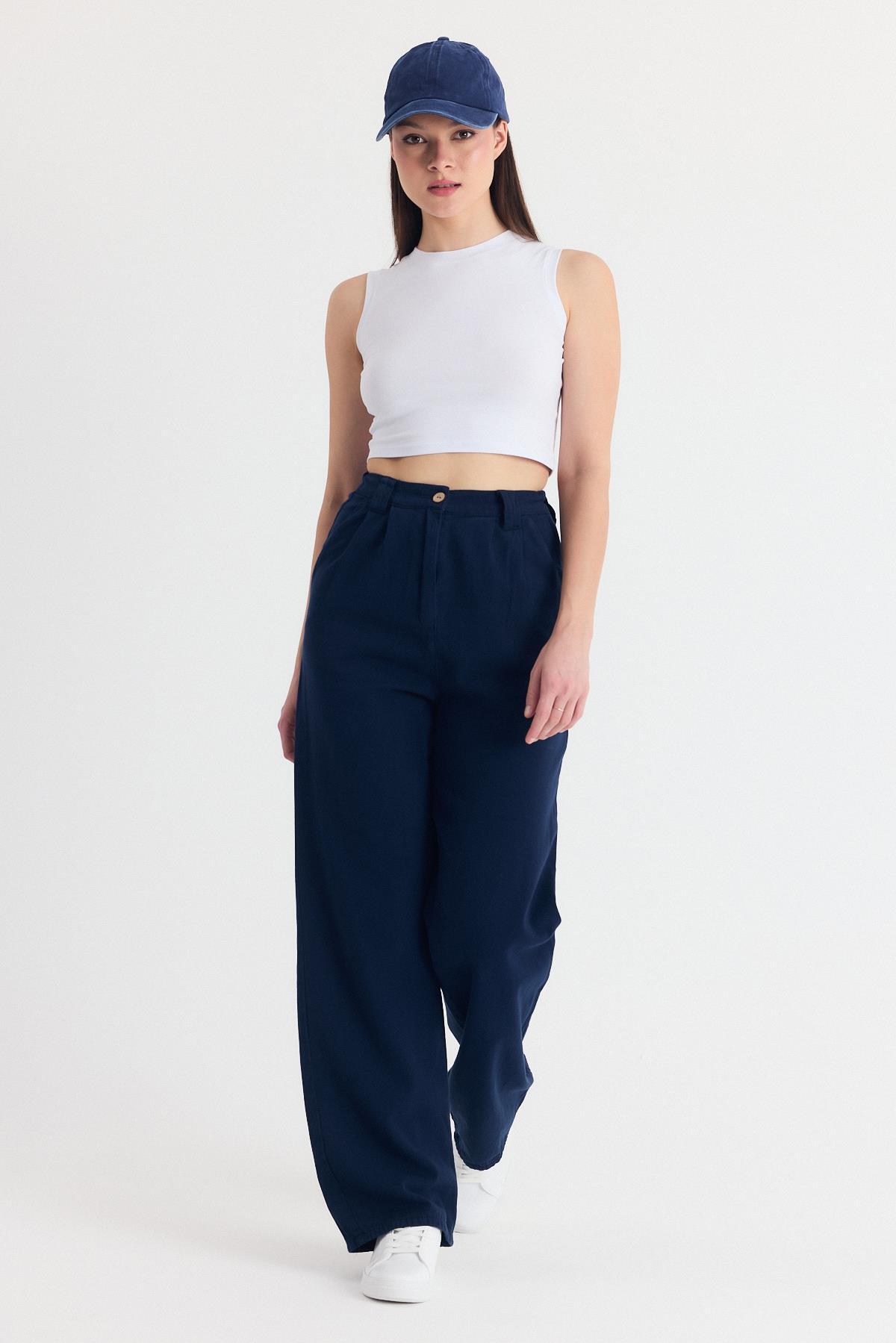 Laci Cepli Pileli Geniş Paça Pantolon 7021