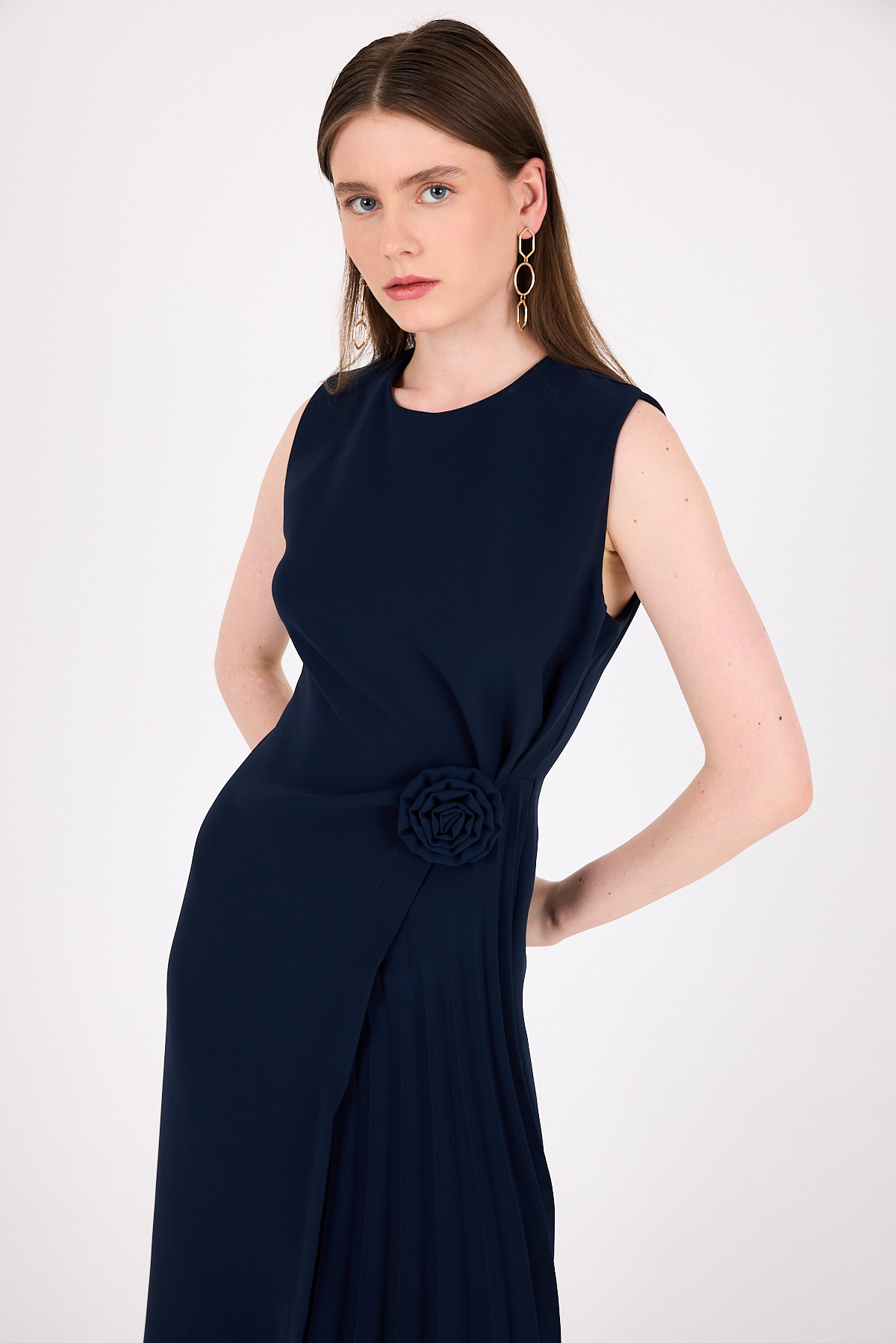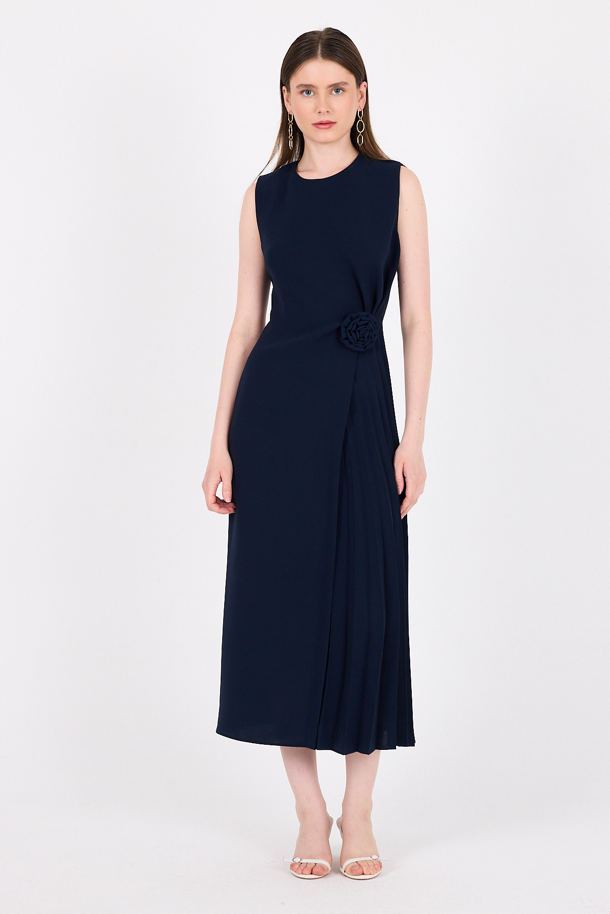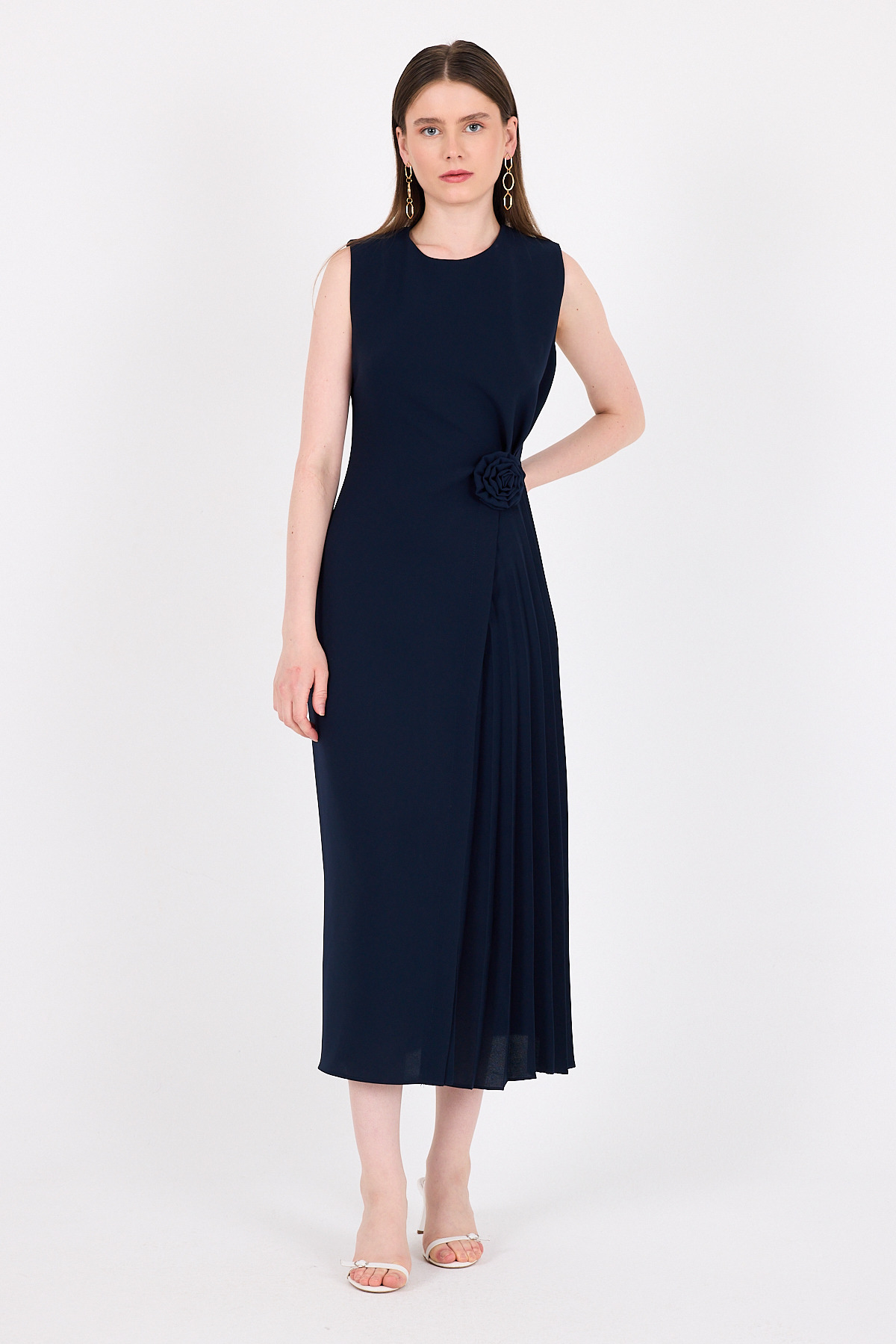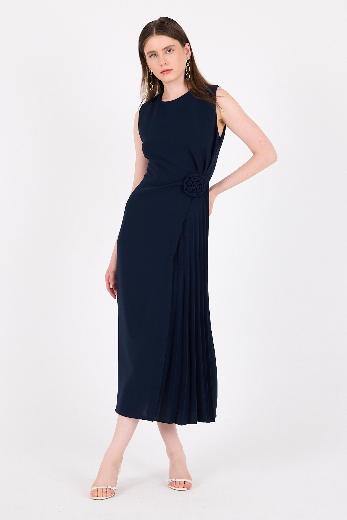 Laci Çiçek Detaylı Pliseli Midi Abiye Elbise 251671