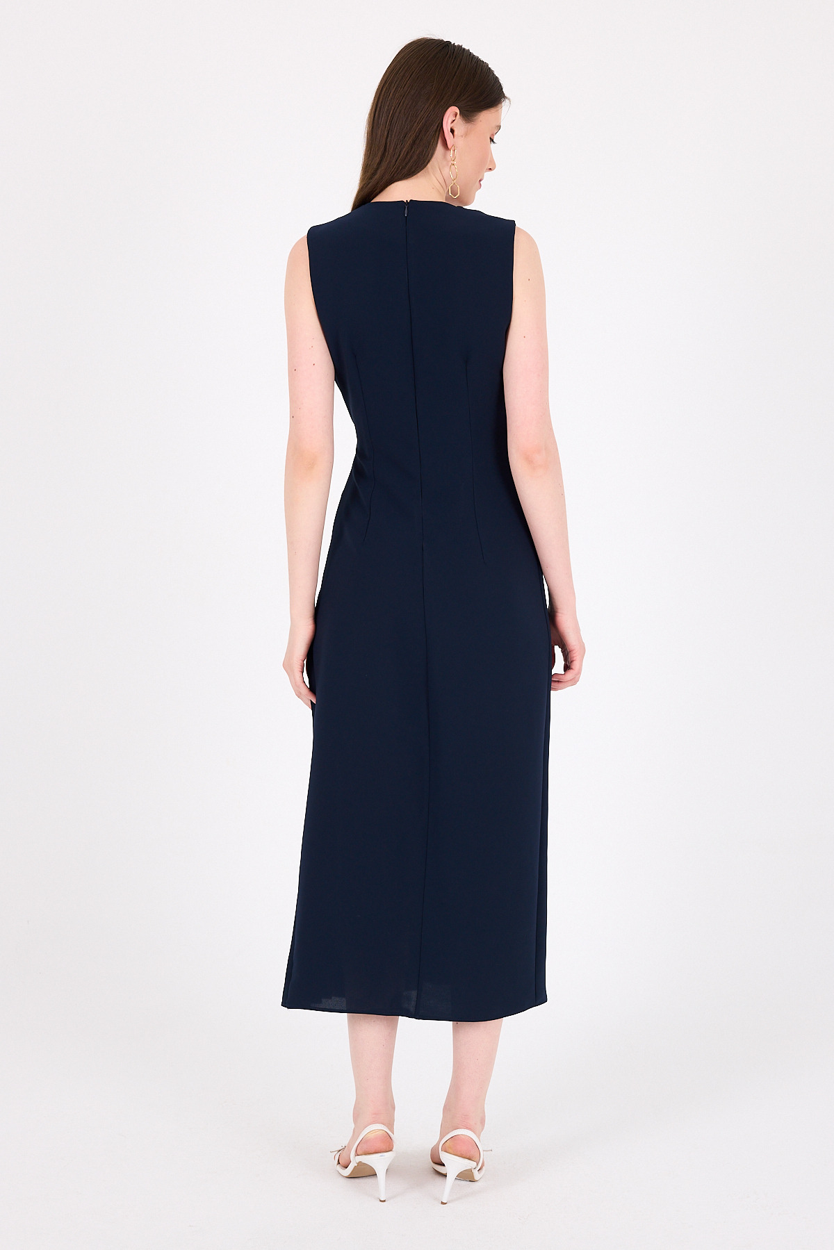 Kahve Düğmeli Kat Kat Elbise 2817