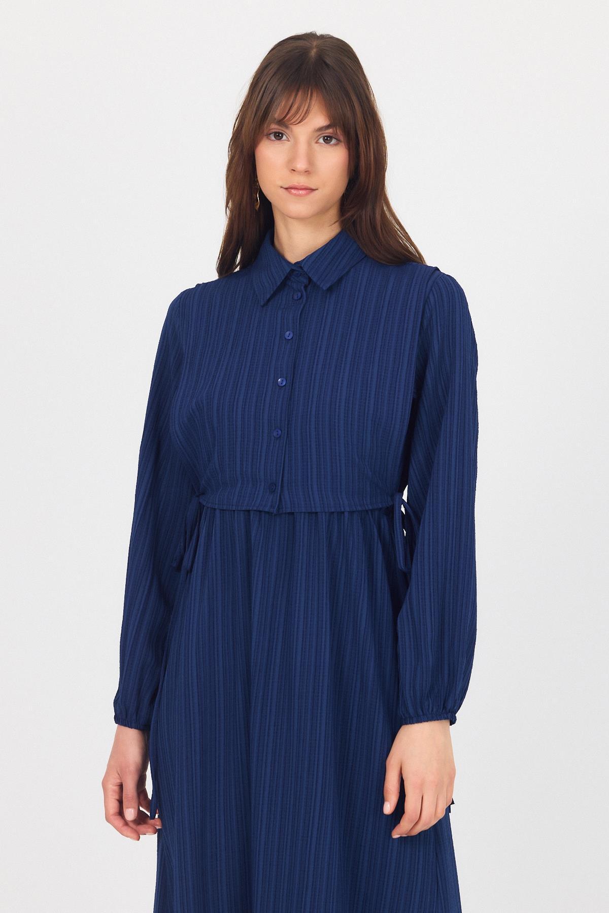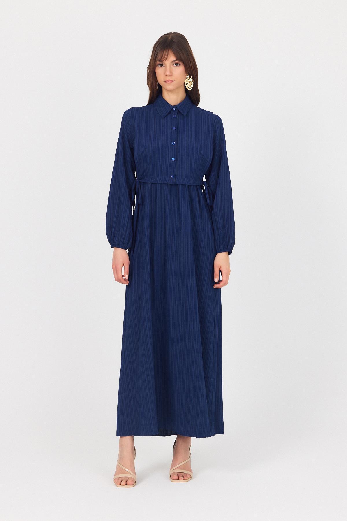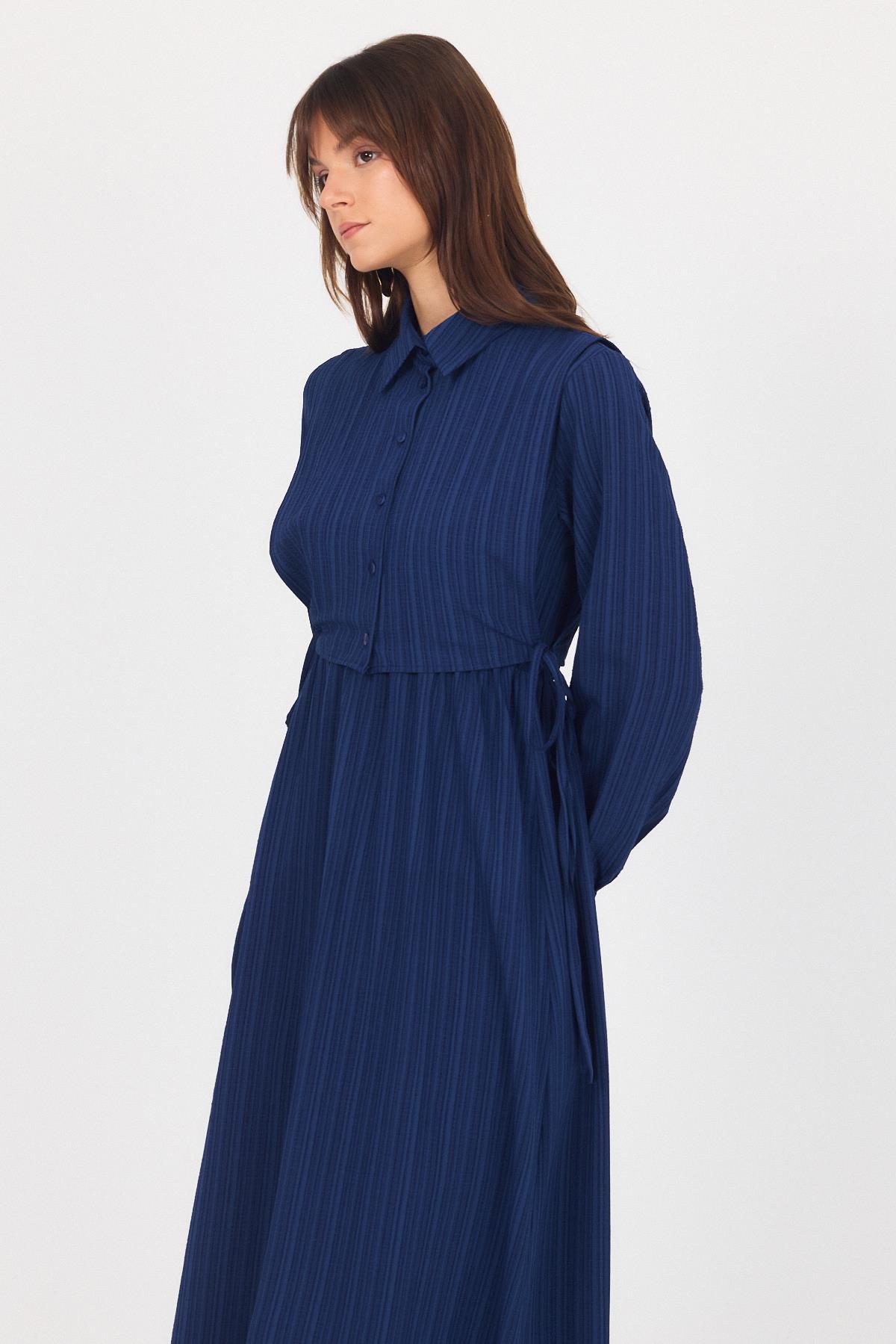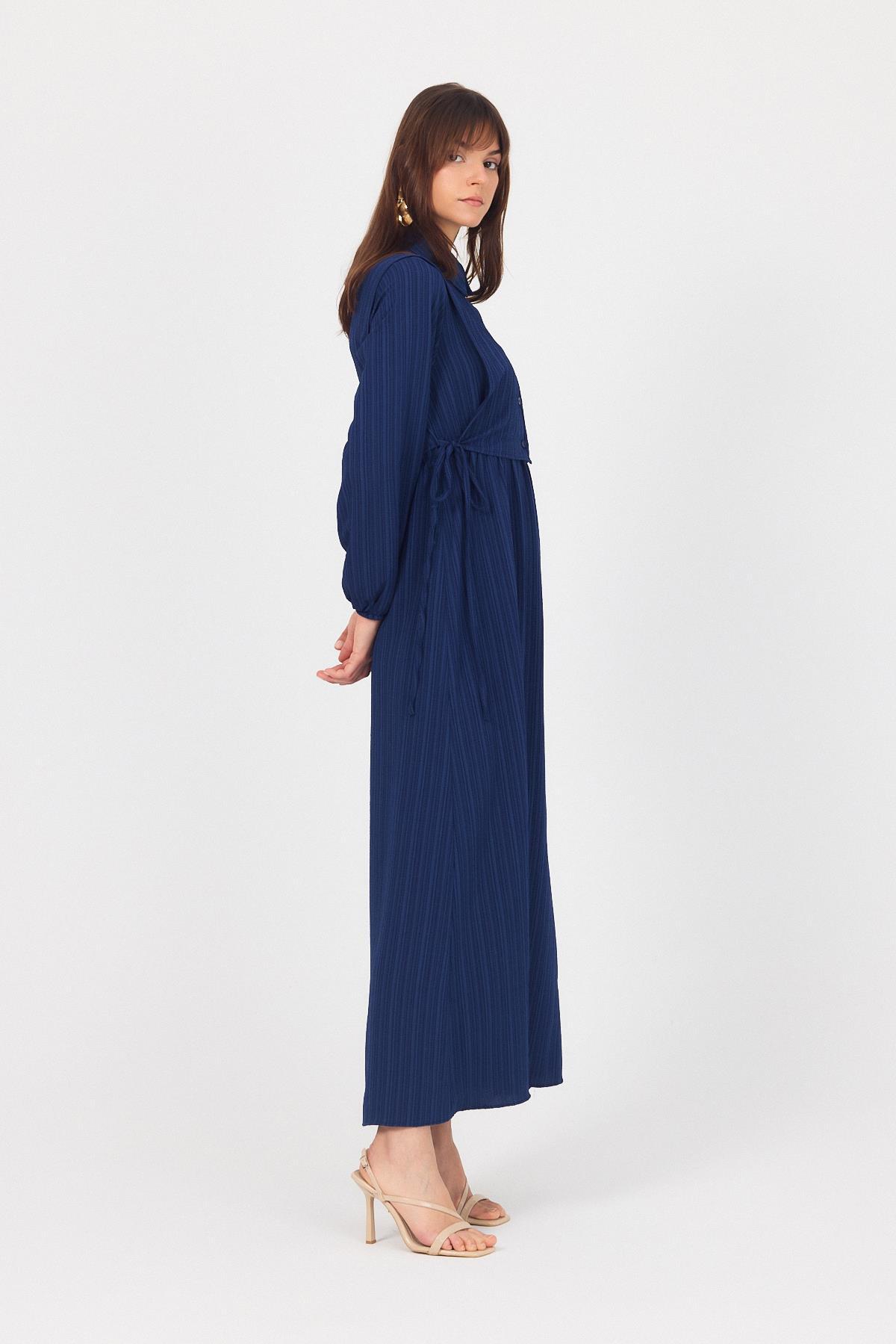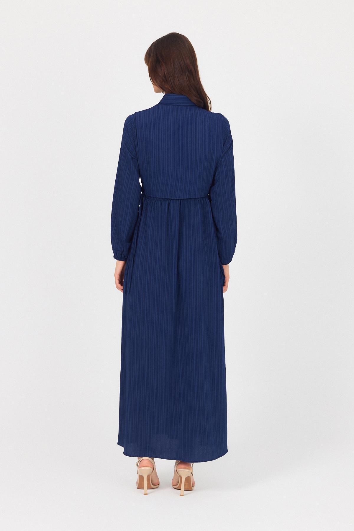 Laci Çift Kullanımlı Çıkma Yakalı Dokuma Elbise 4652A