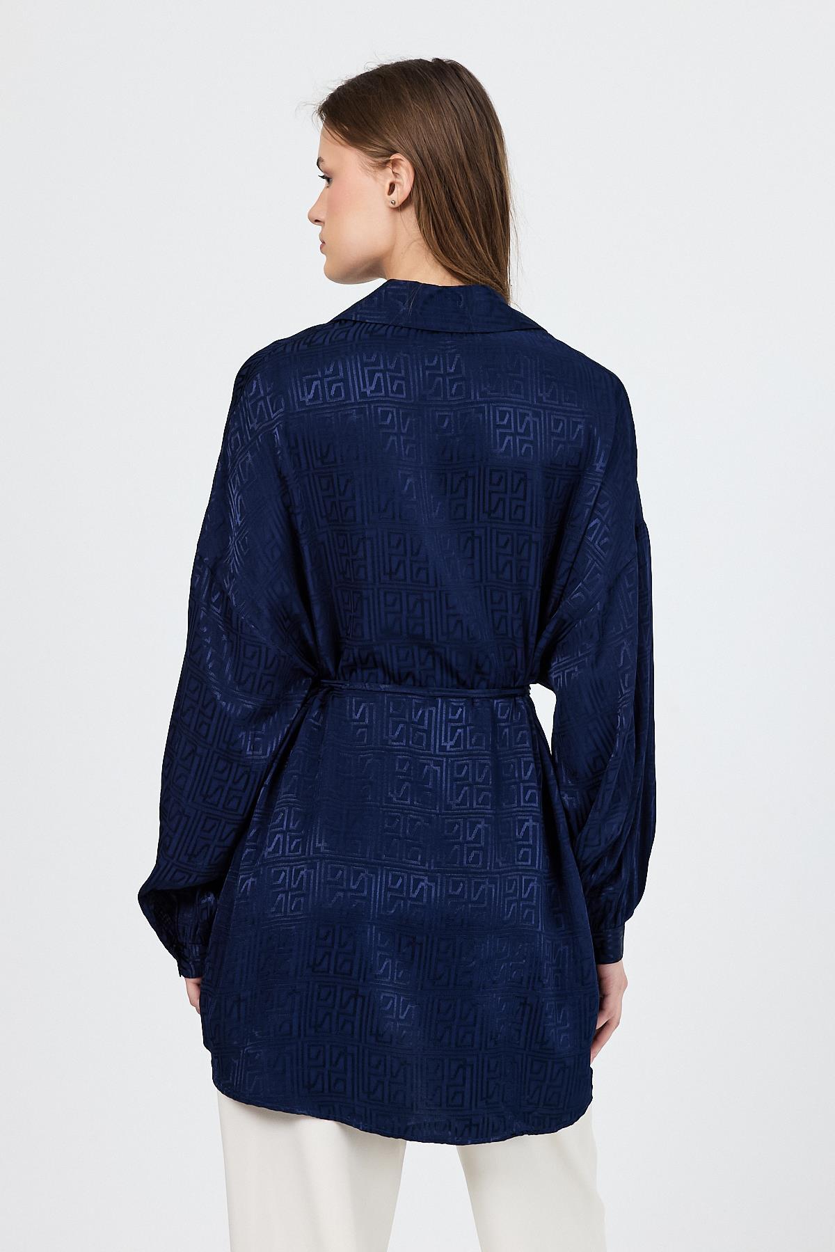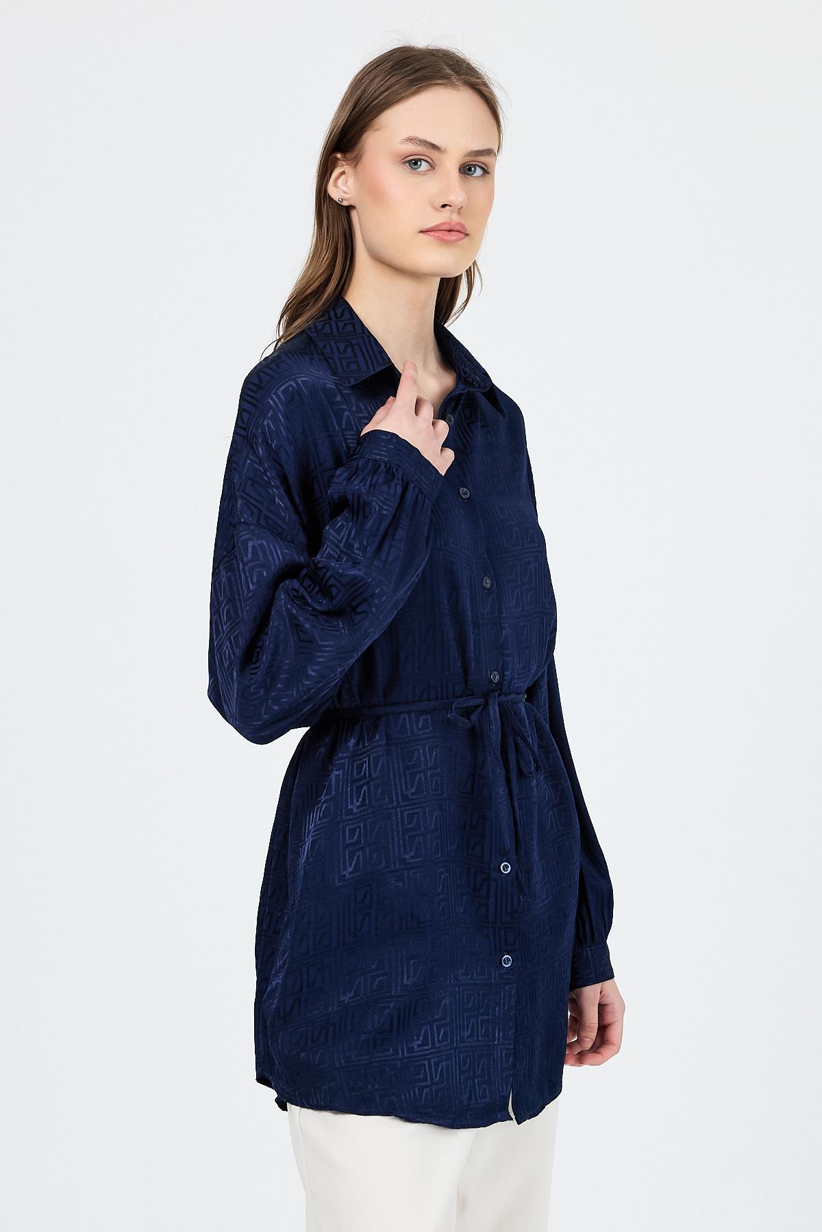 Laci Desenli Saten Görünümlü İp Bağlama Detaylı Gömlek 4293A