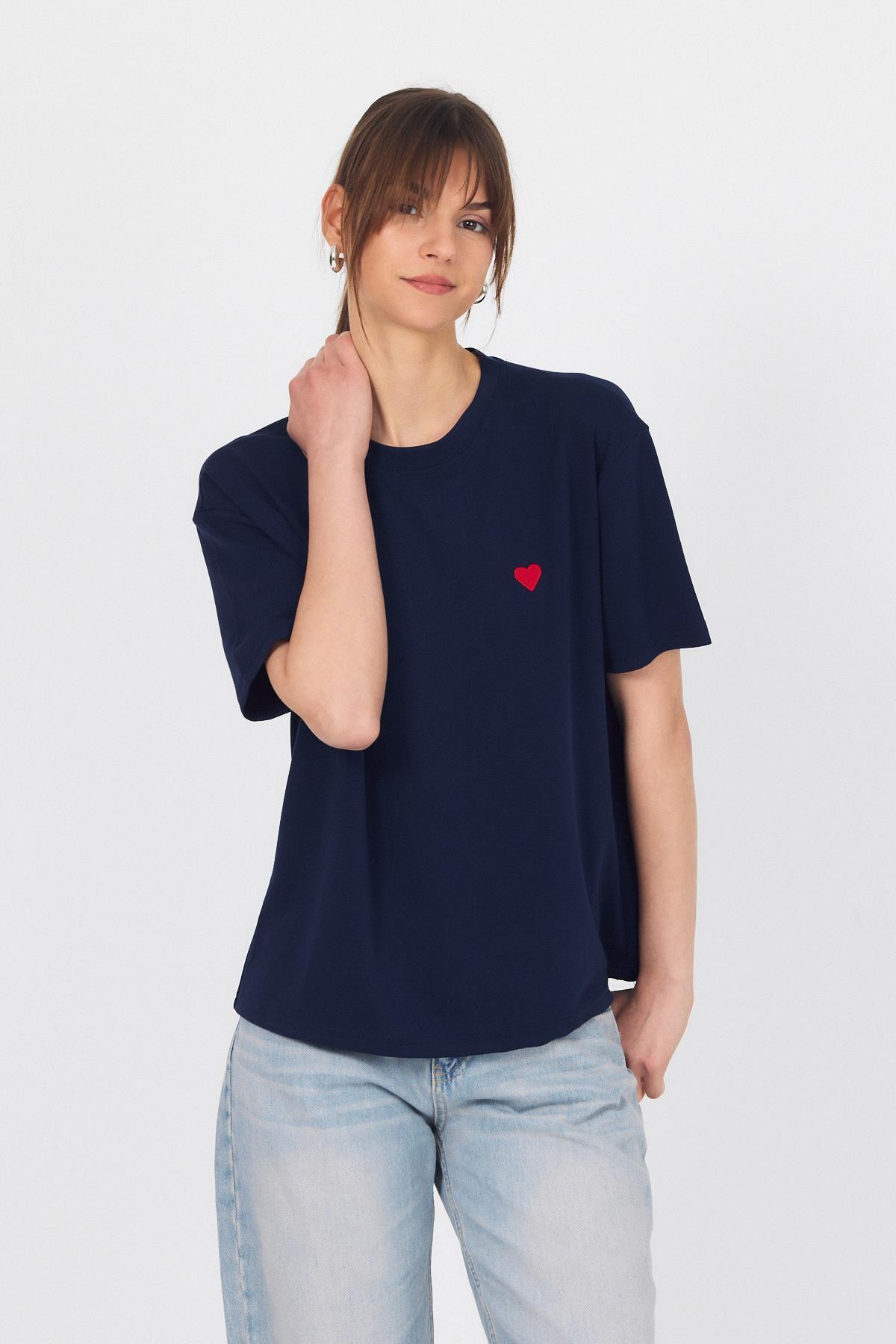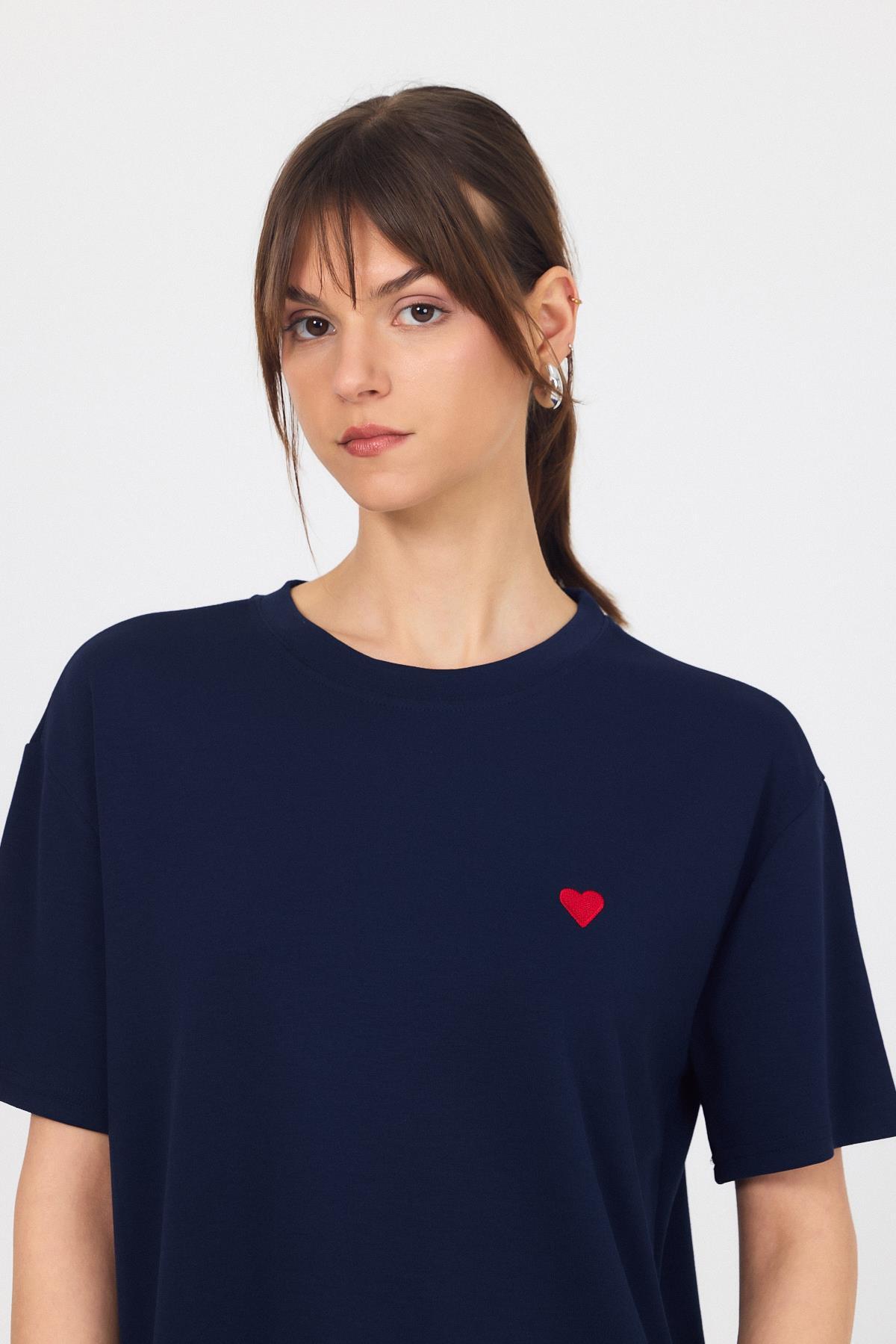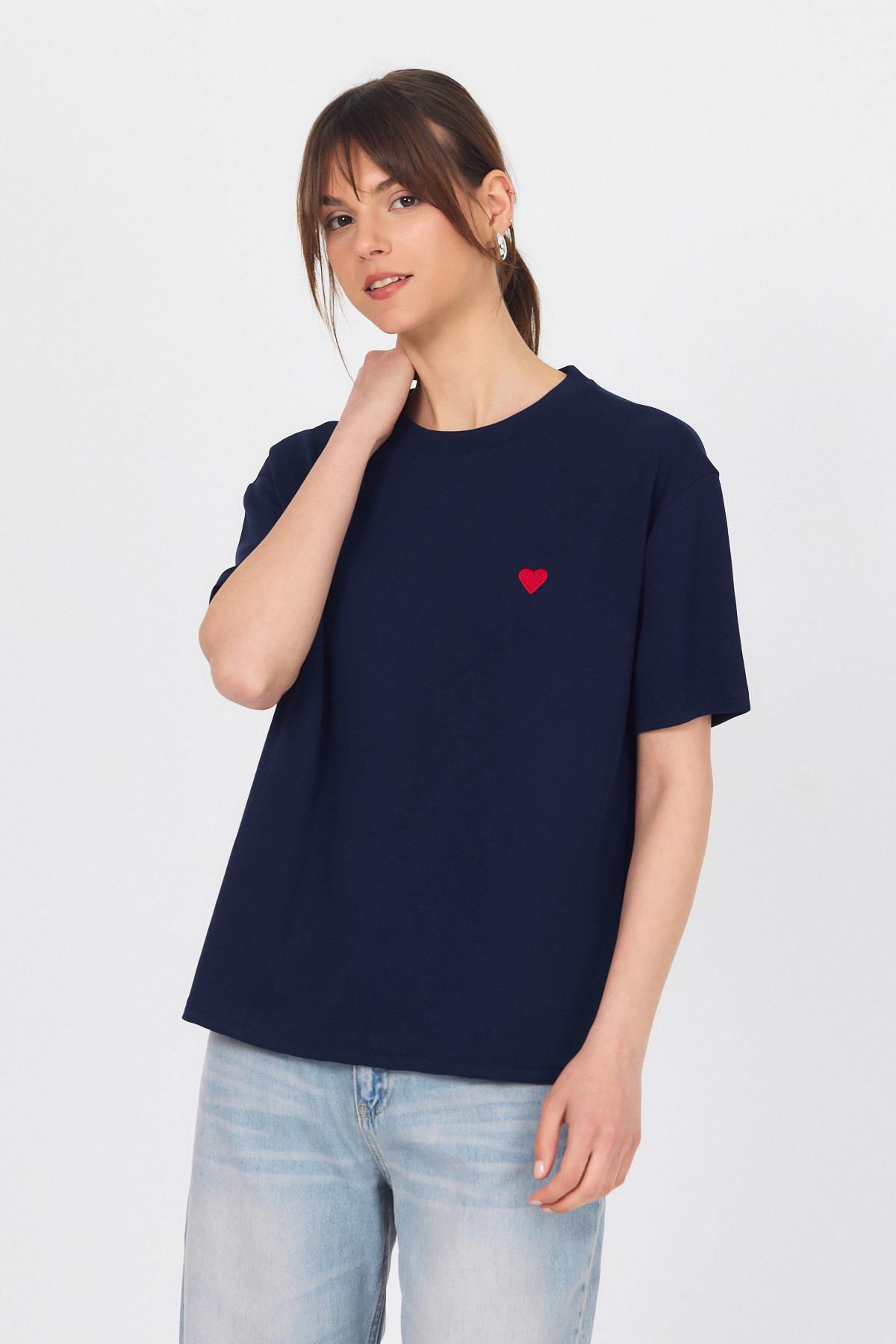 Laci Kalp Nakışlı Premium Kumaş Tişört 6218