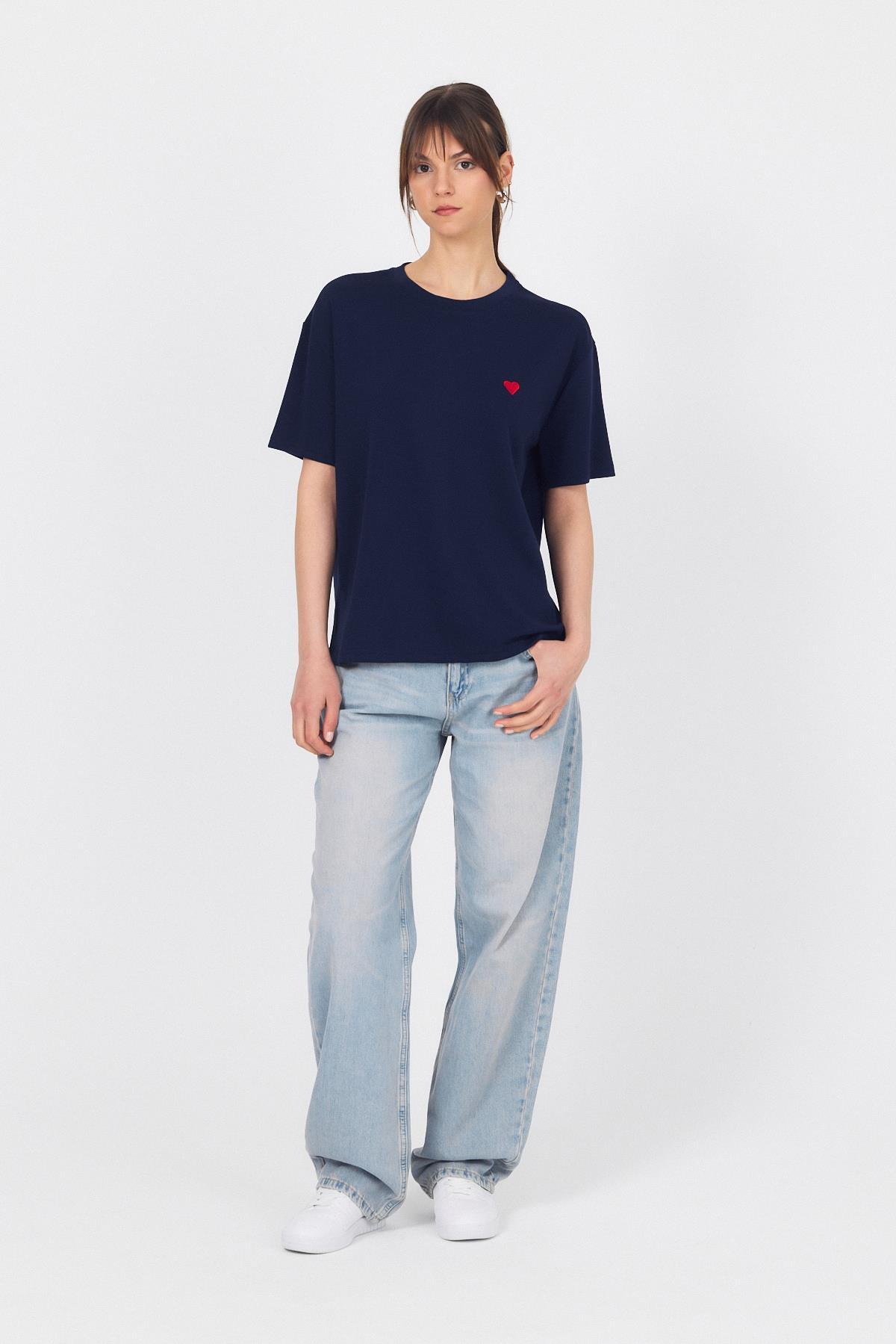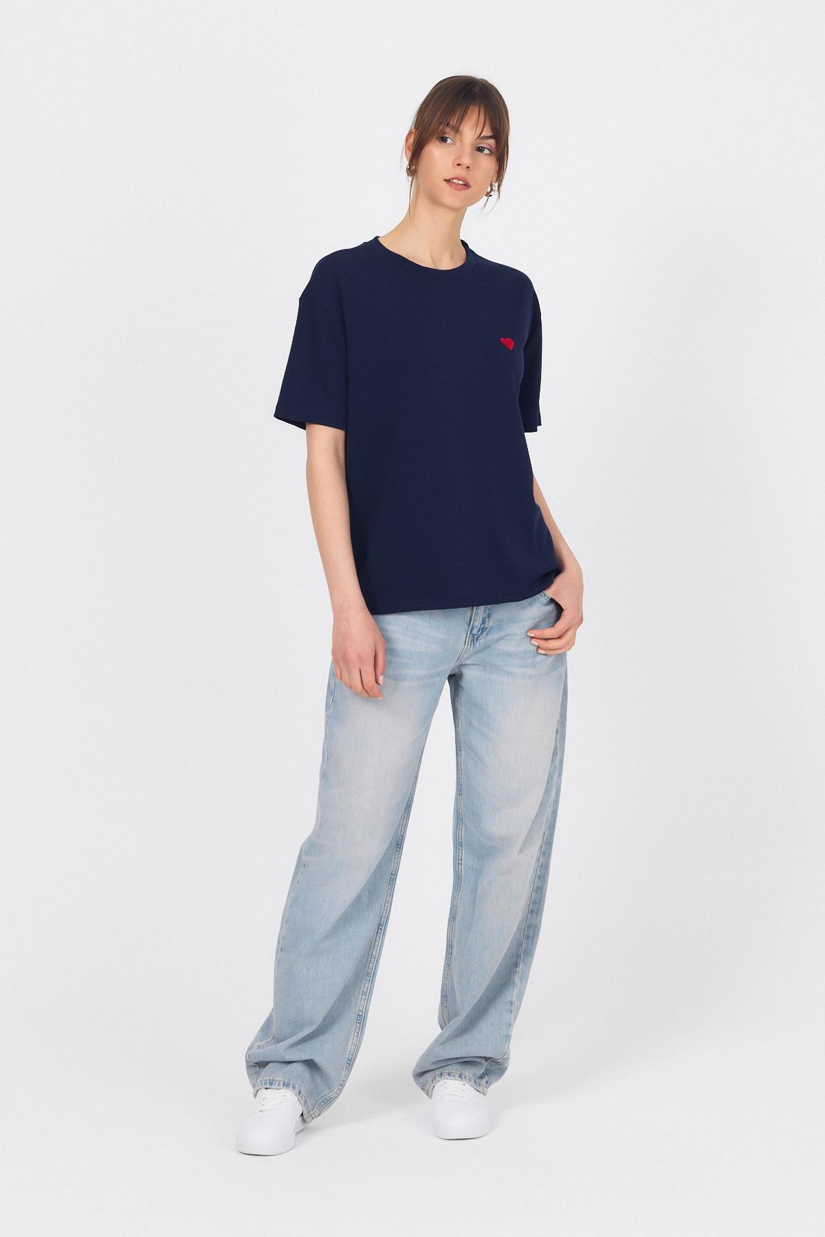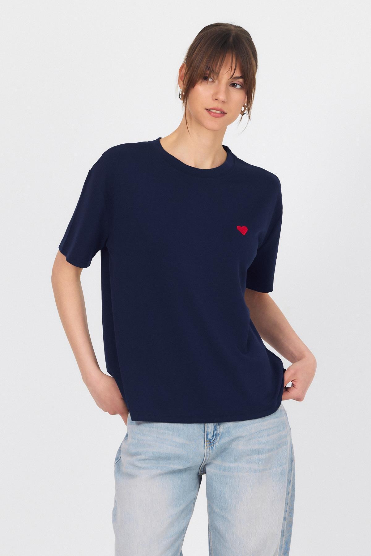 Laci Kalp Nakışlı Premium Kumaş Tişört 6218