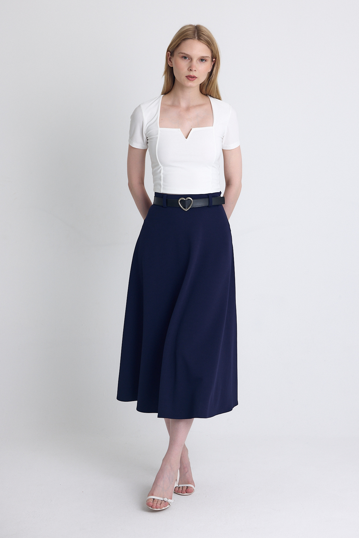 Laci Kemerli A Kesim Midi Etek 4806A