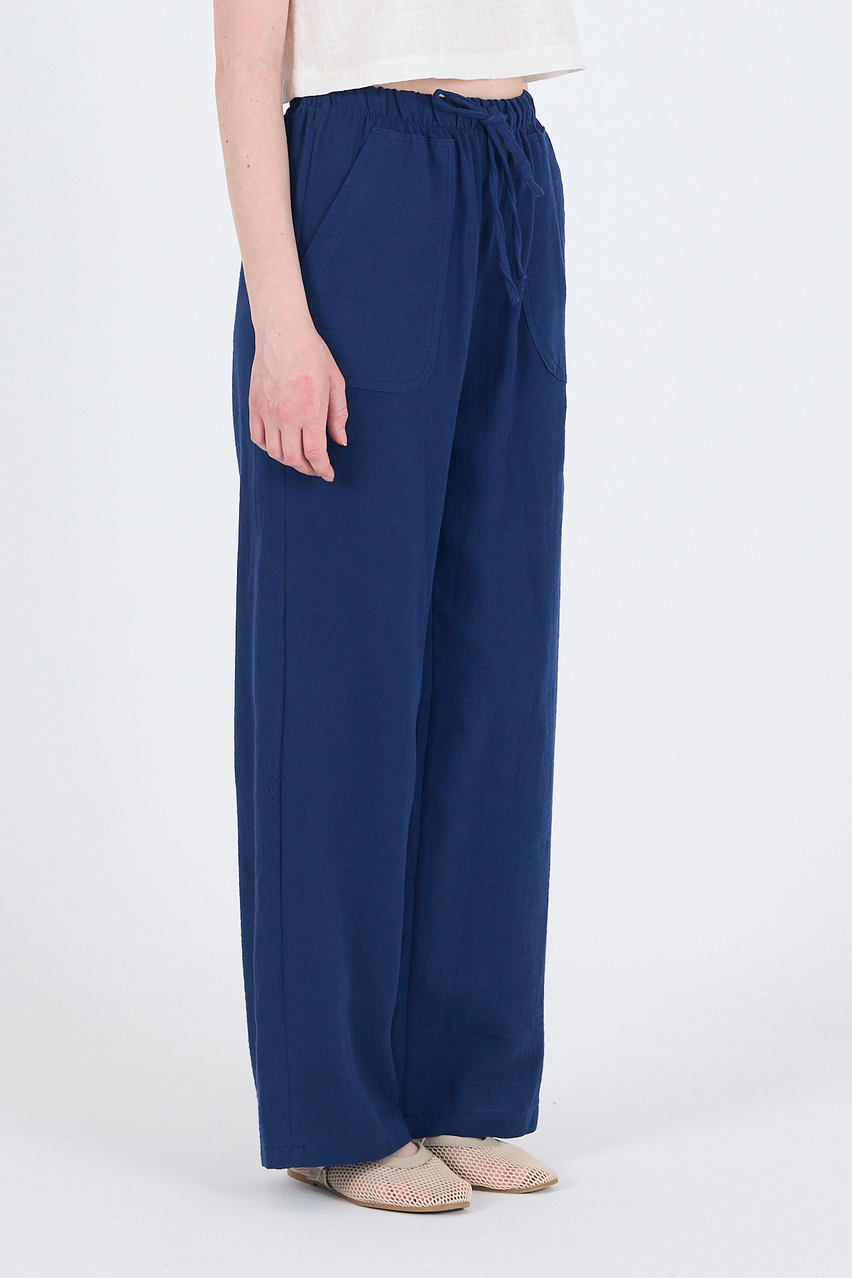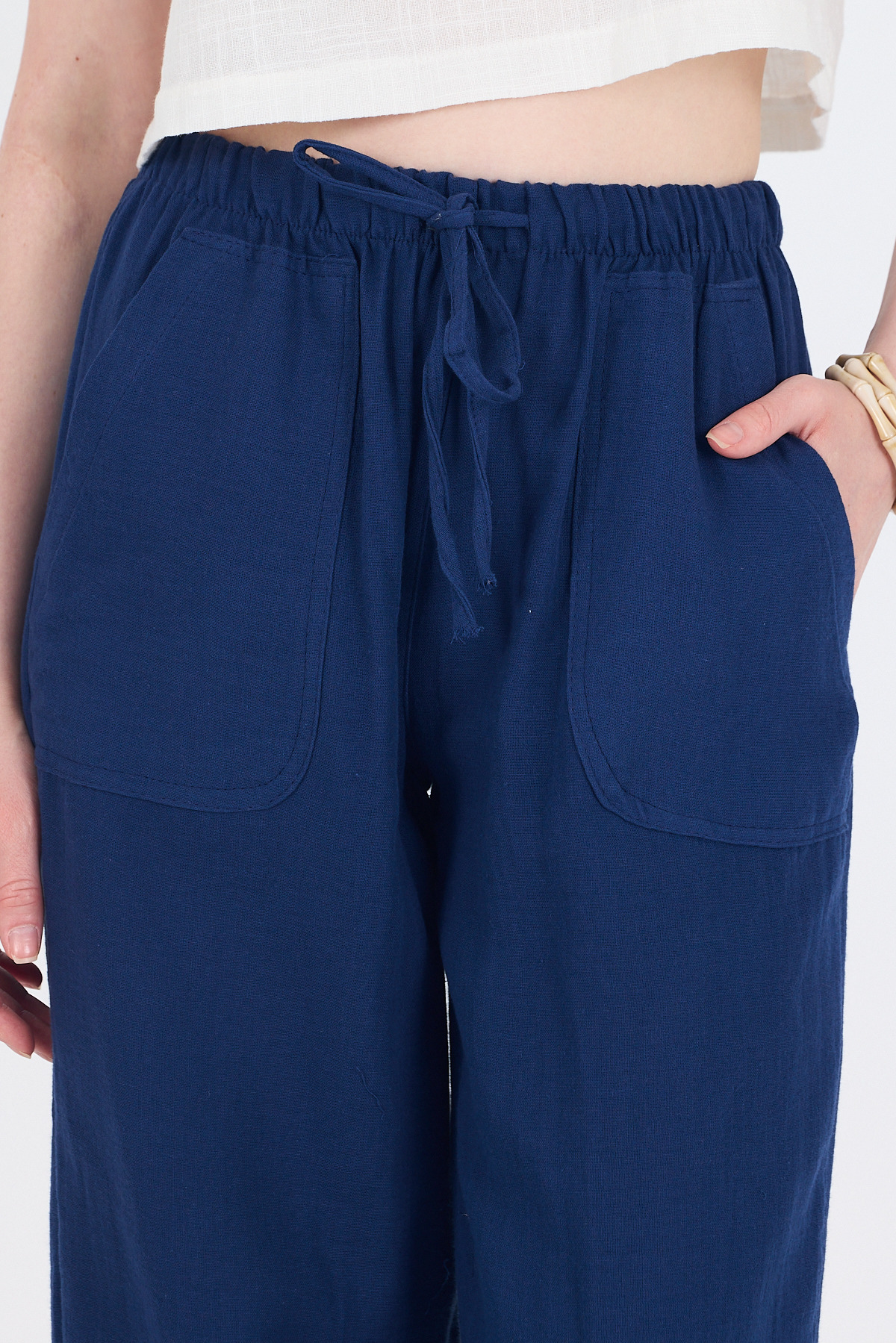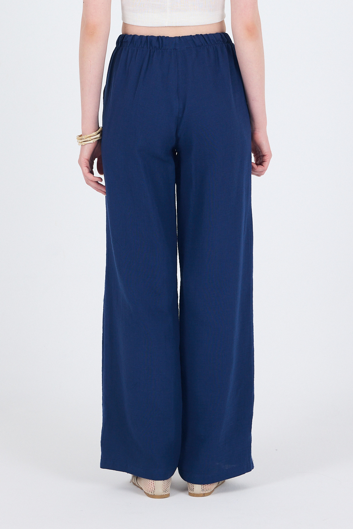 Laci Keten Görünümlü %100 Pamuk Cepli Bol Paça Pantolon 8054A
