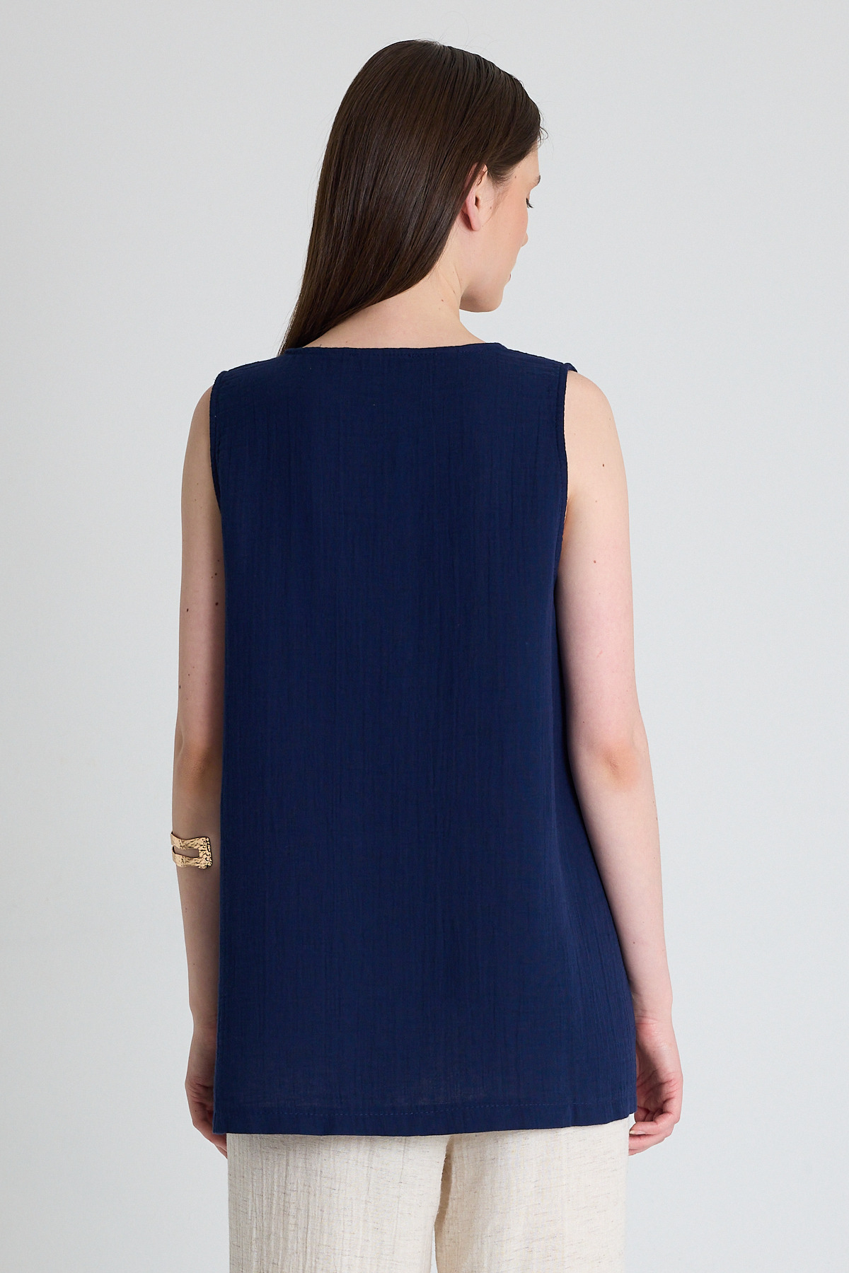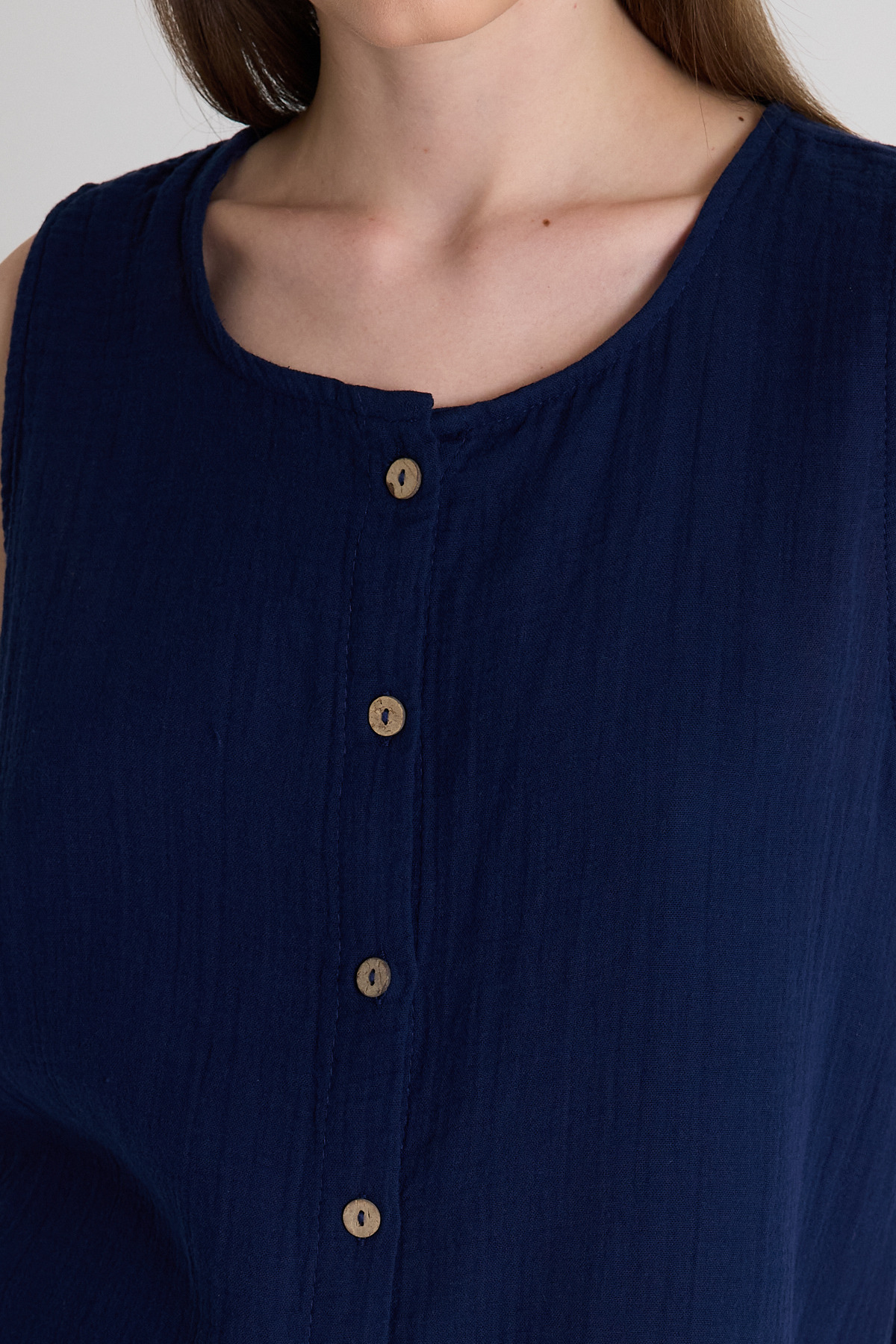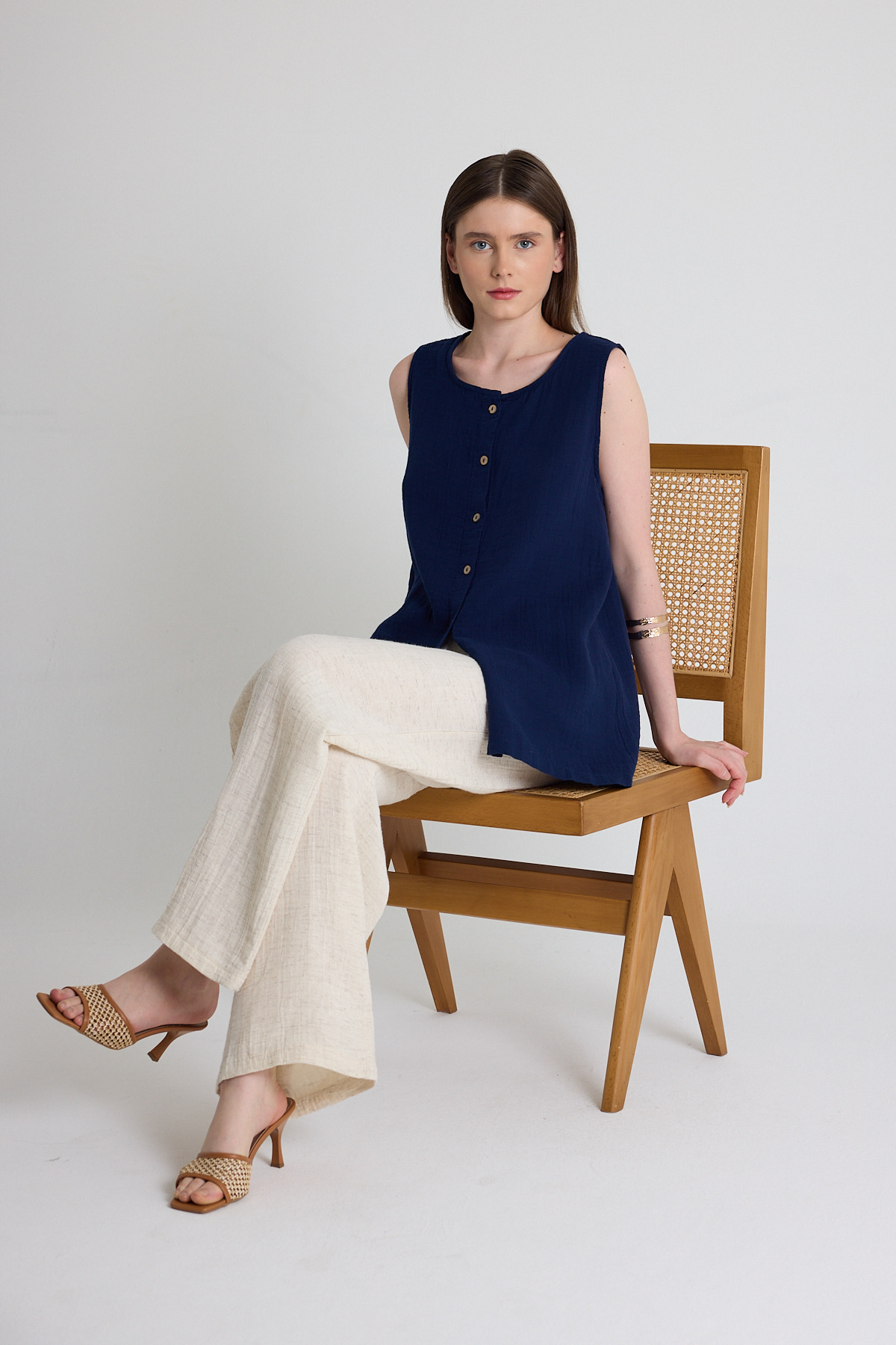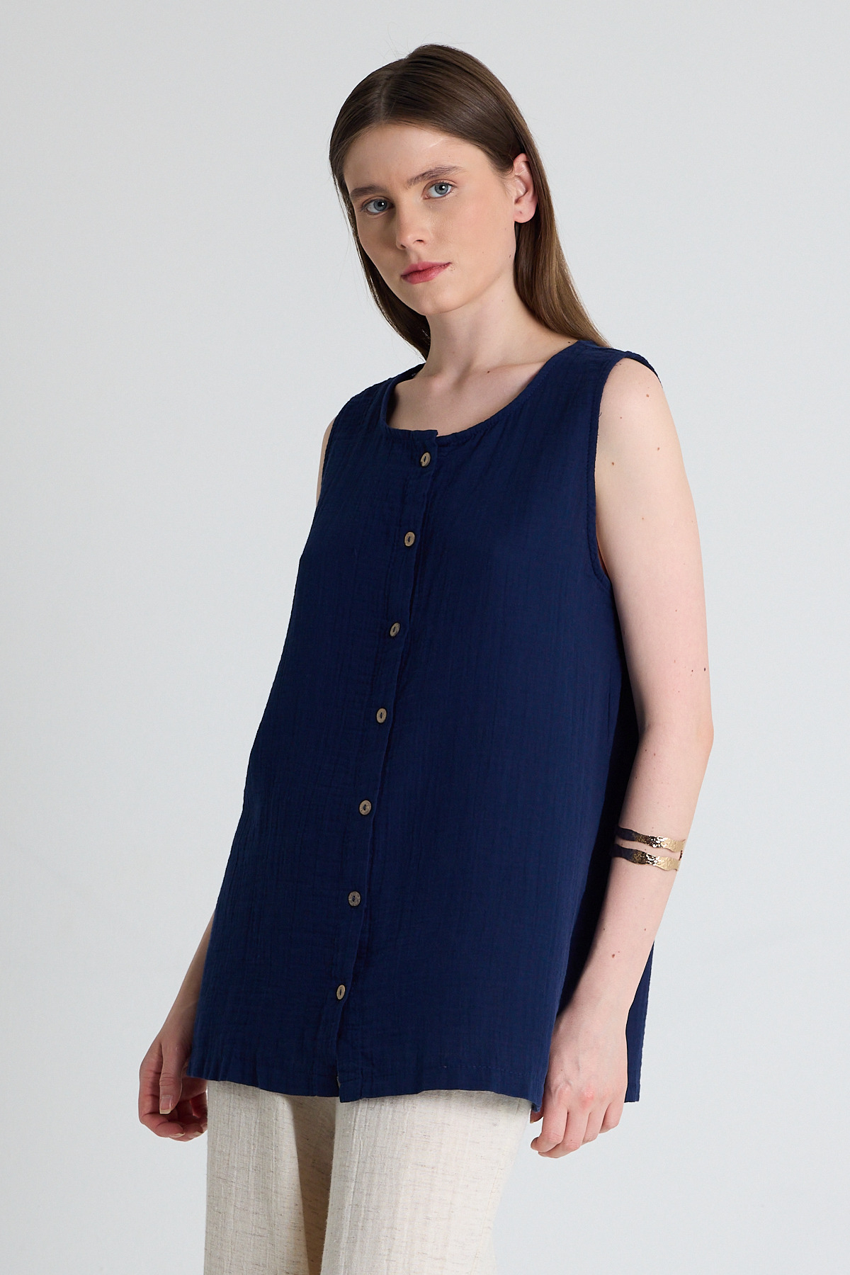 Laci Keten Görünümlü %100 Pamuk Düğmeli Kolsuz Bluz 4808A