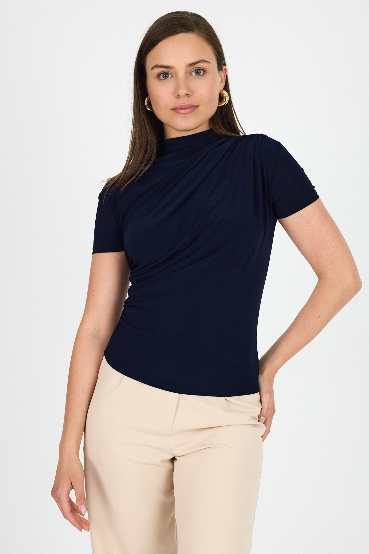 Laci Kısa Kol Büzgülü Sandy Bluz 2417
