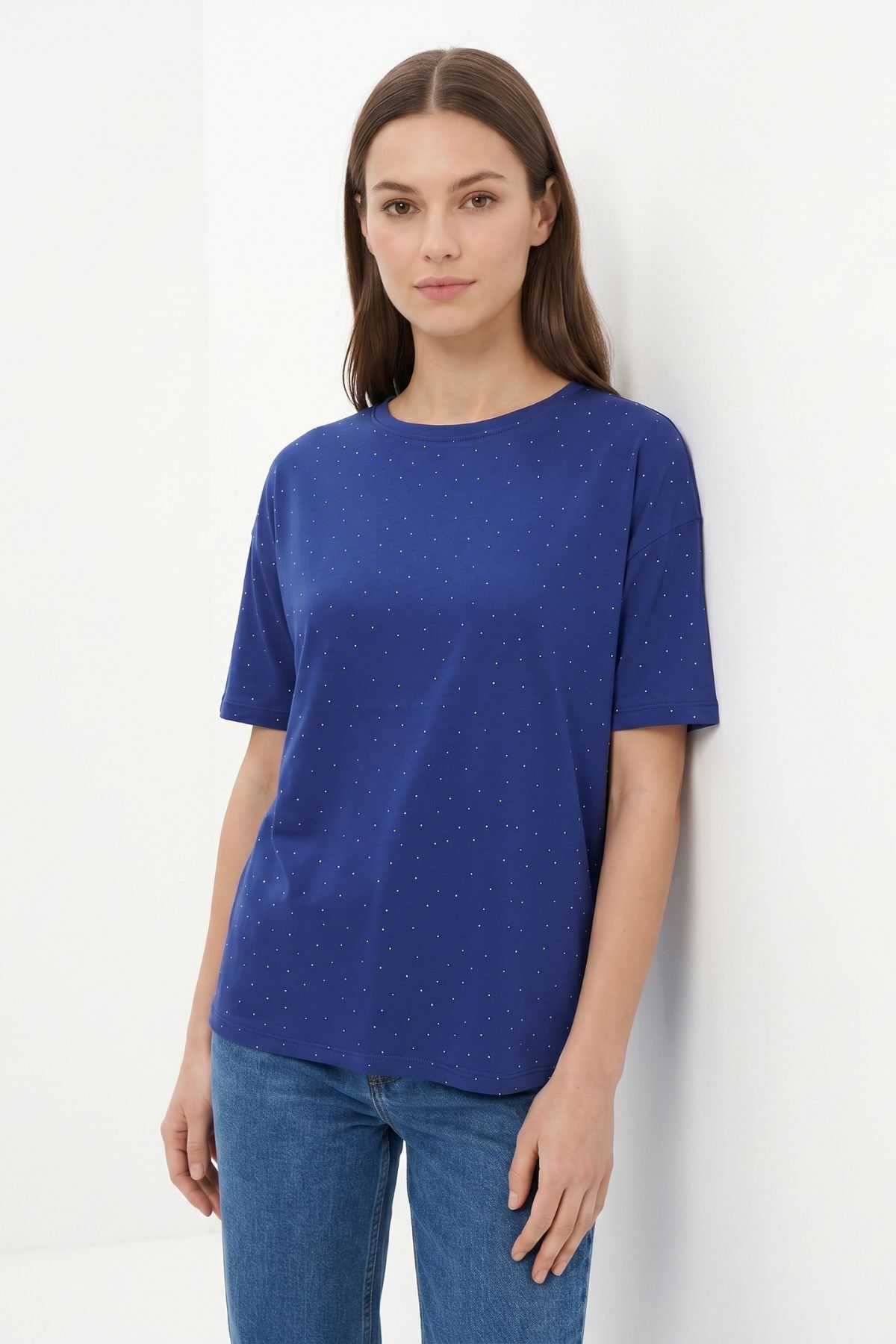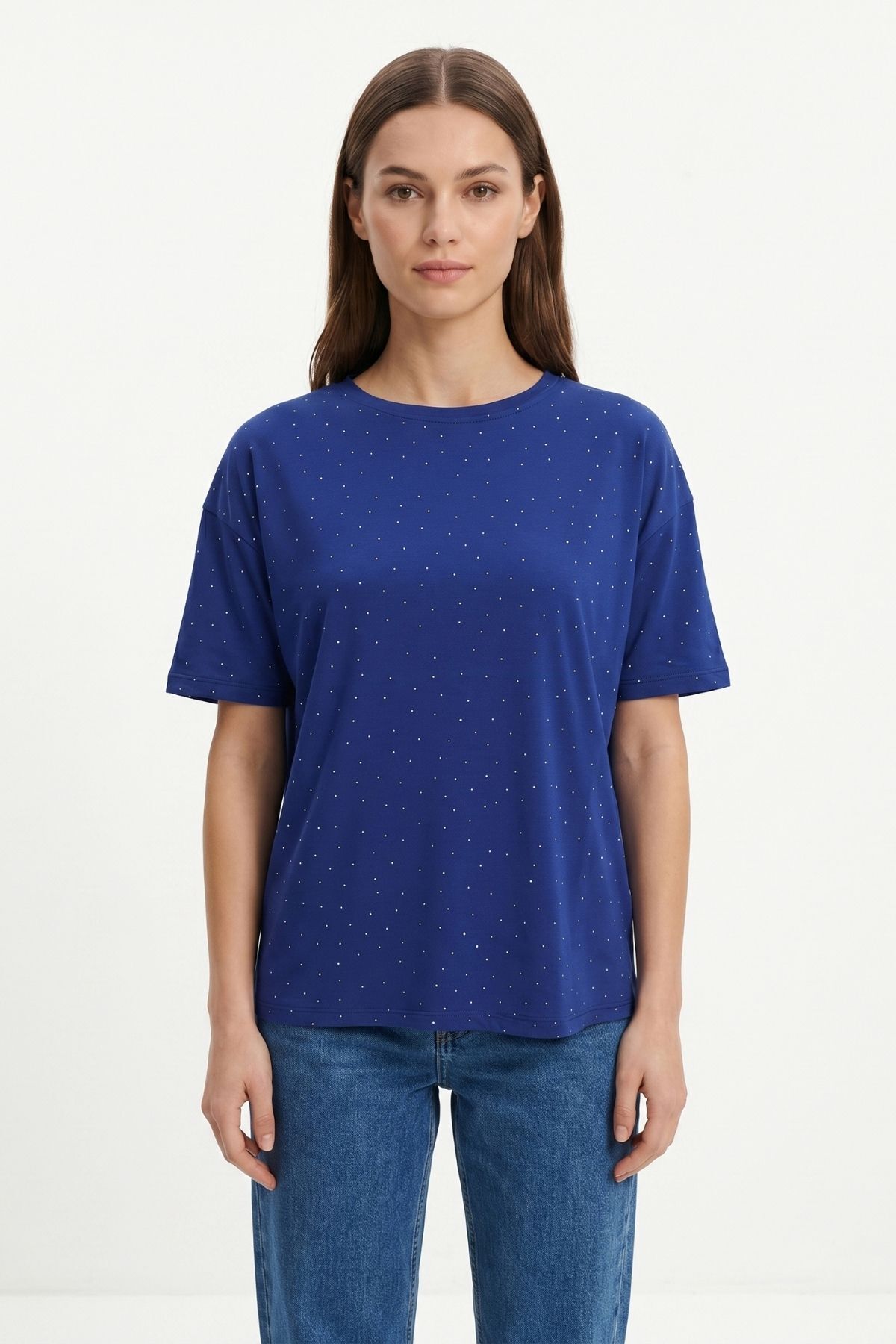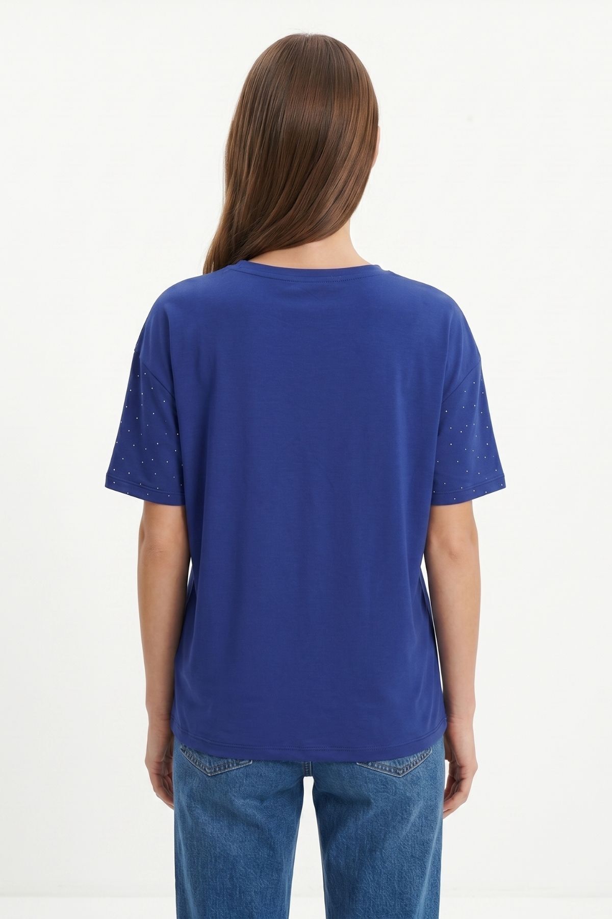 Laci Taşlı Bisiklet Yaka Tişört 1762