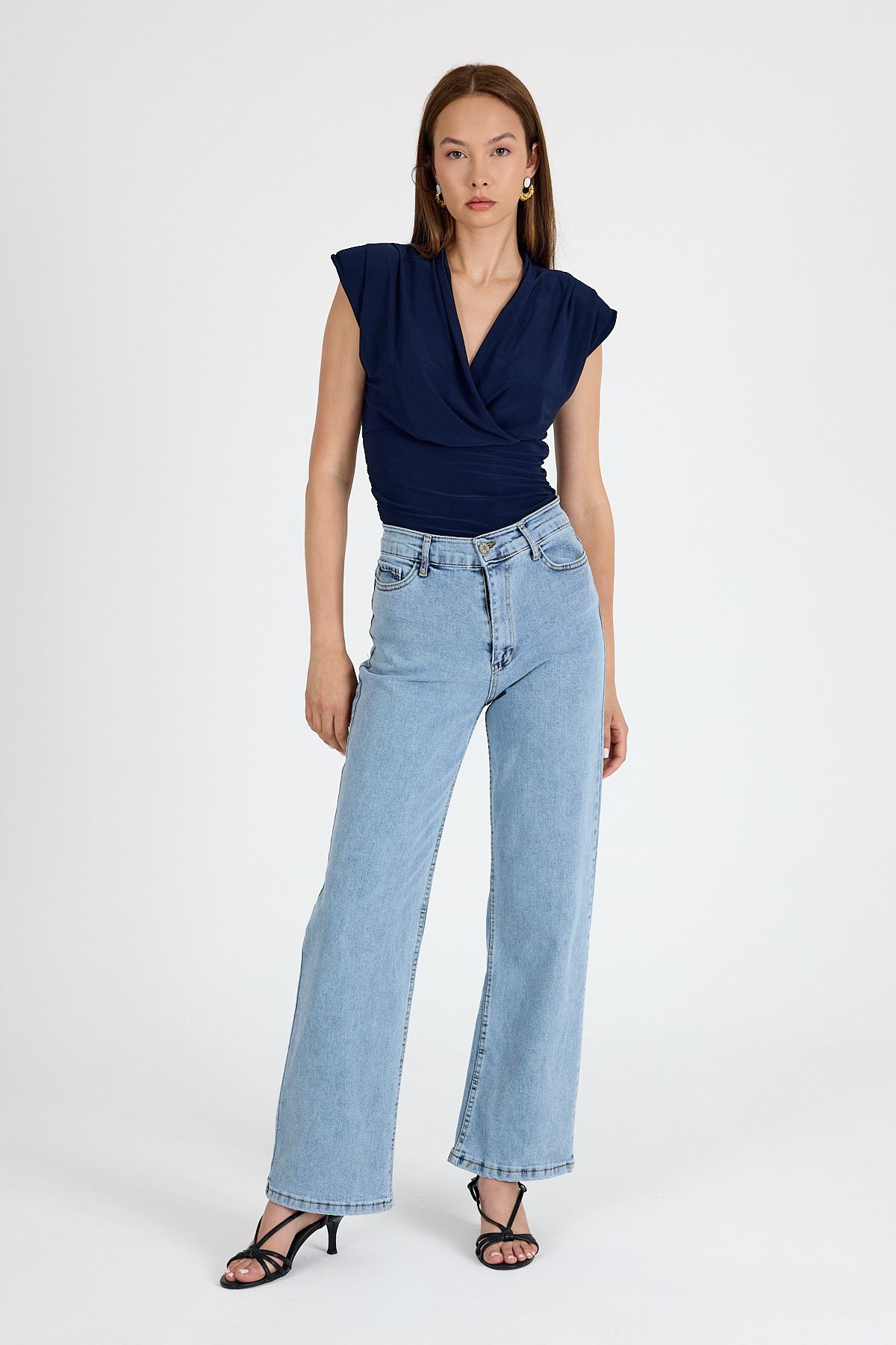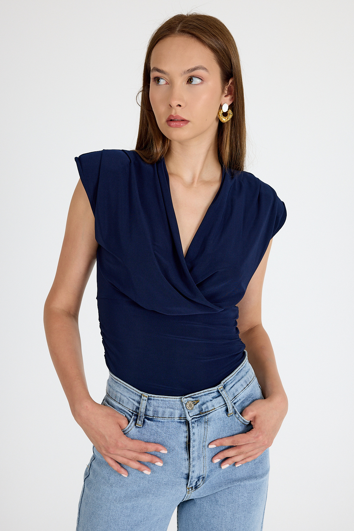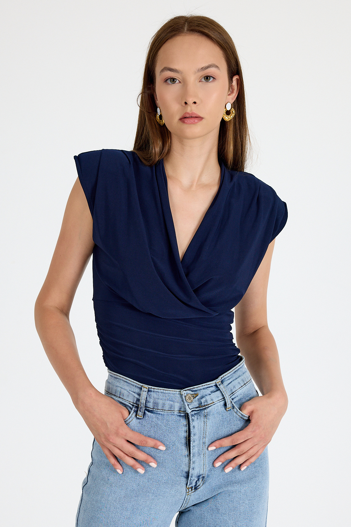 Laci Vatkalı Kruvaze Yaka Drapeli Bluz 2487