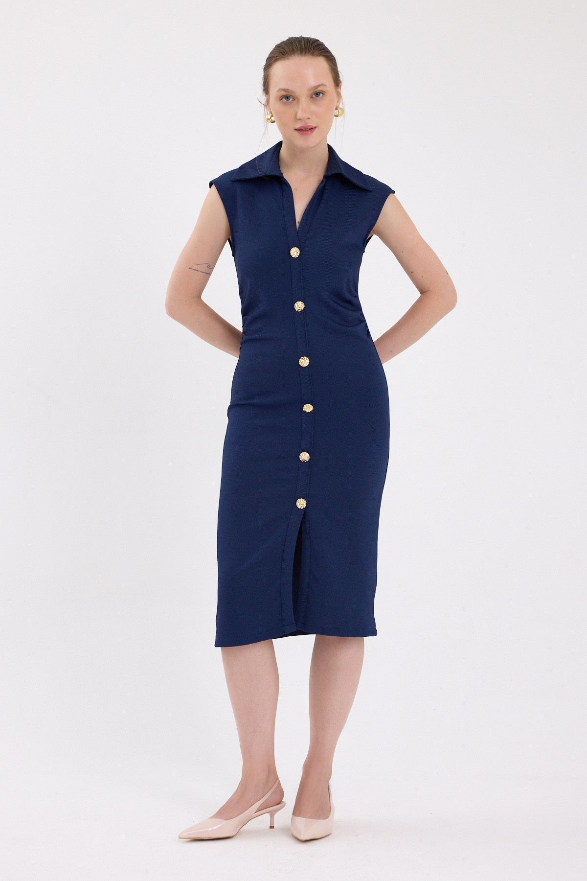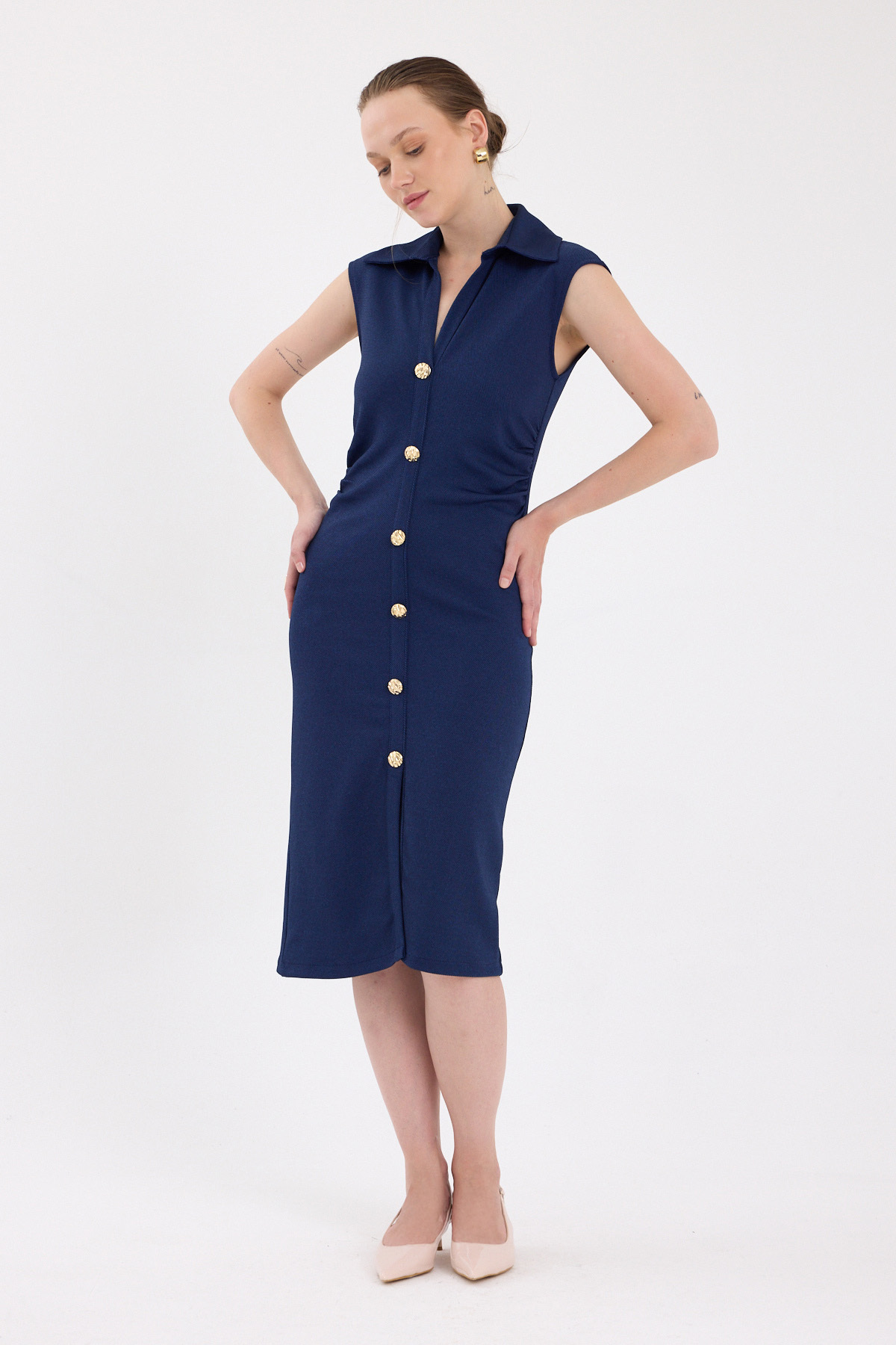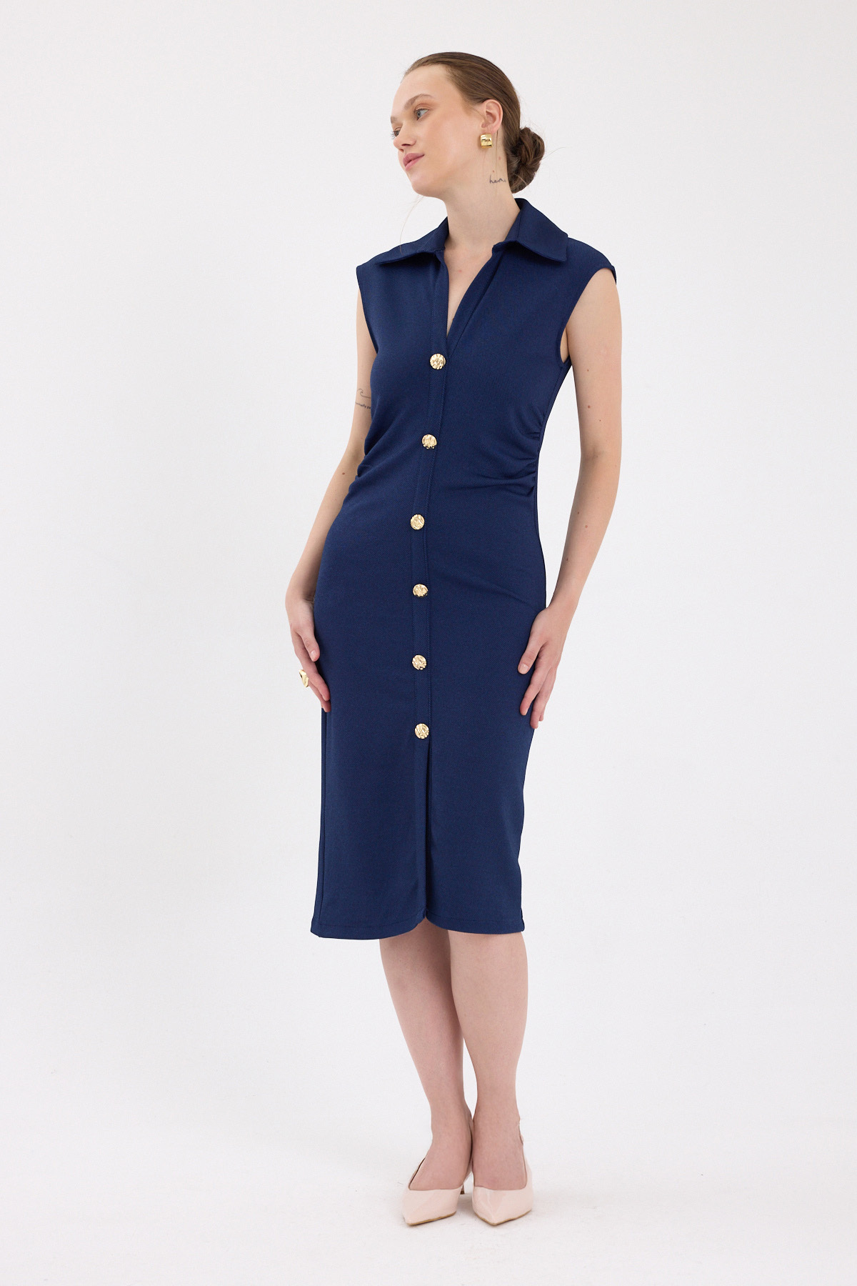 Laci Yanları Büzgülü Kolsuz Gömlek Midi Elbise 8117A