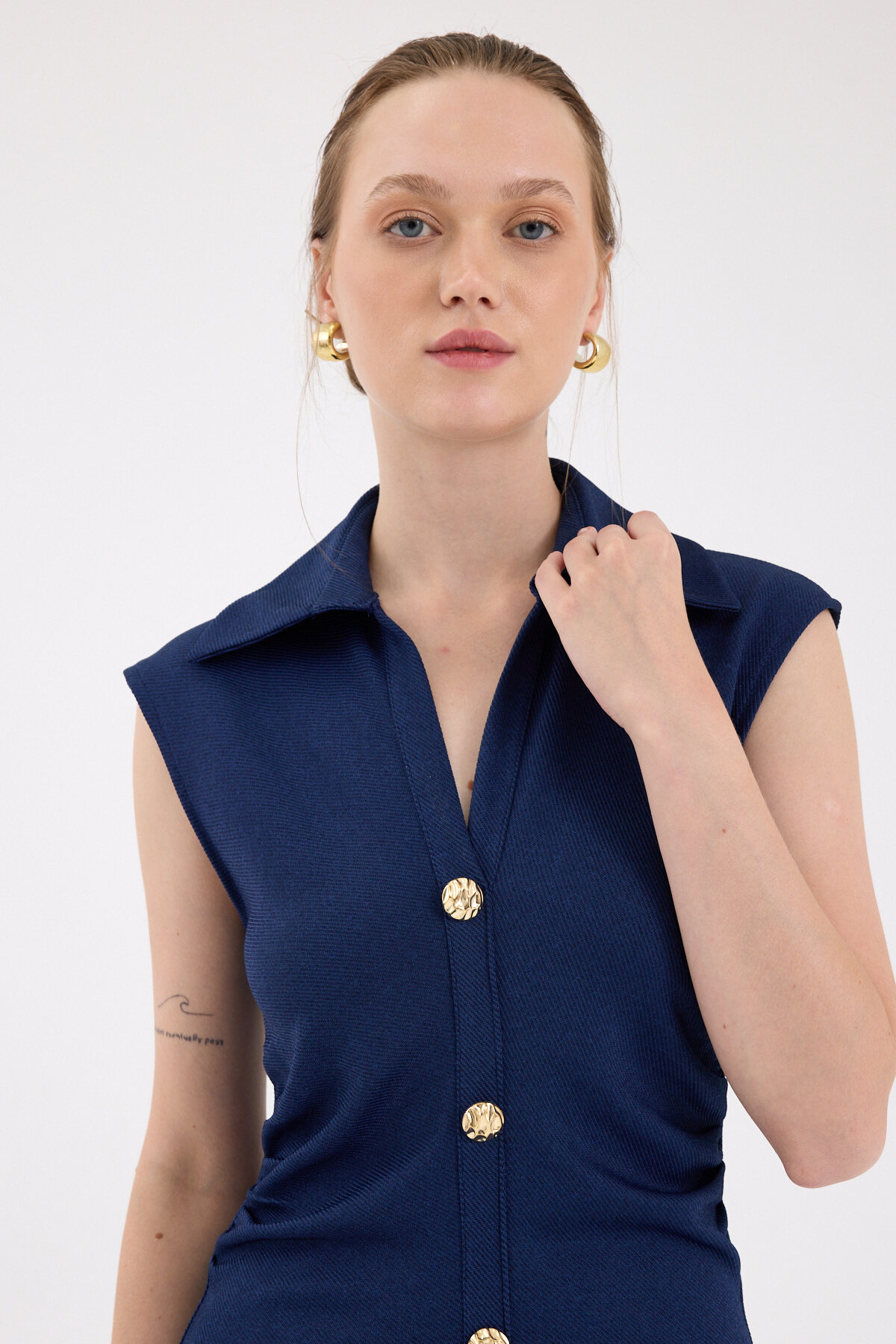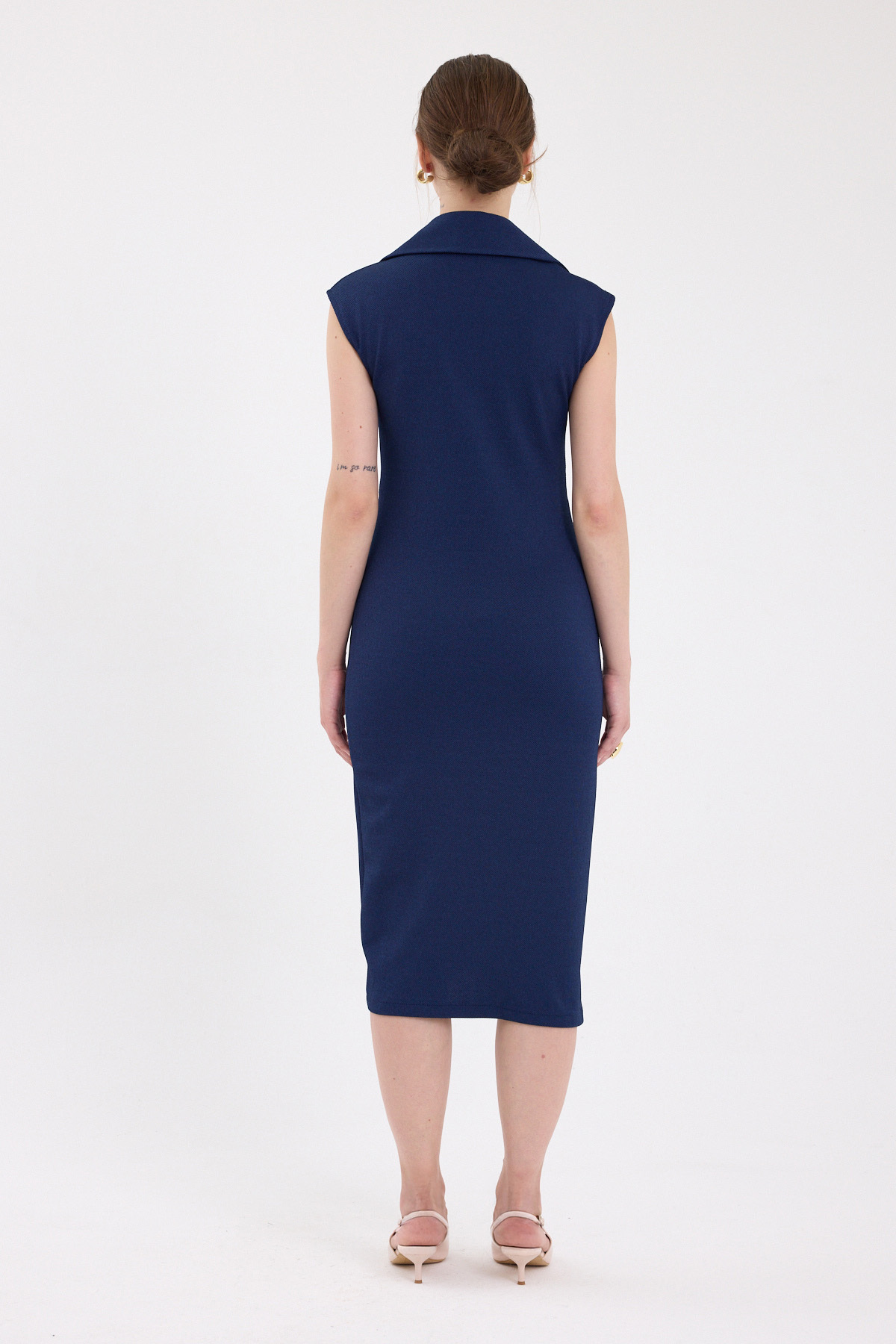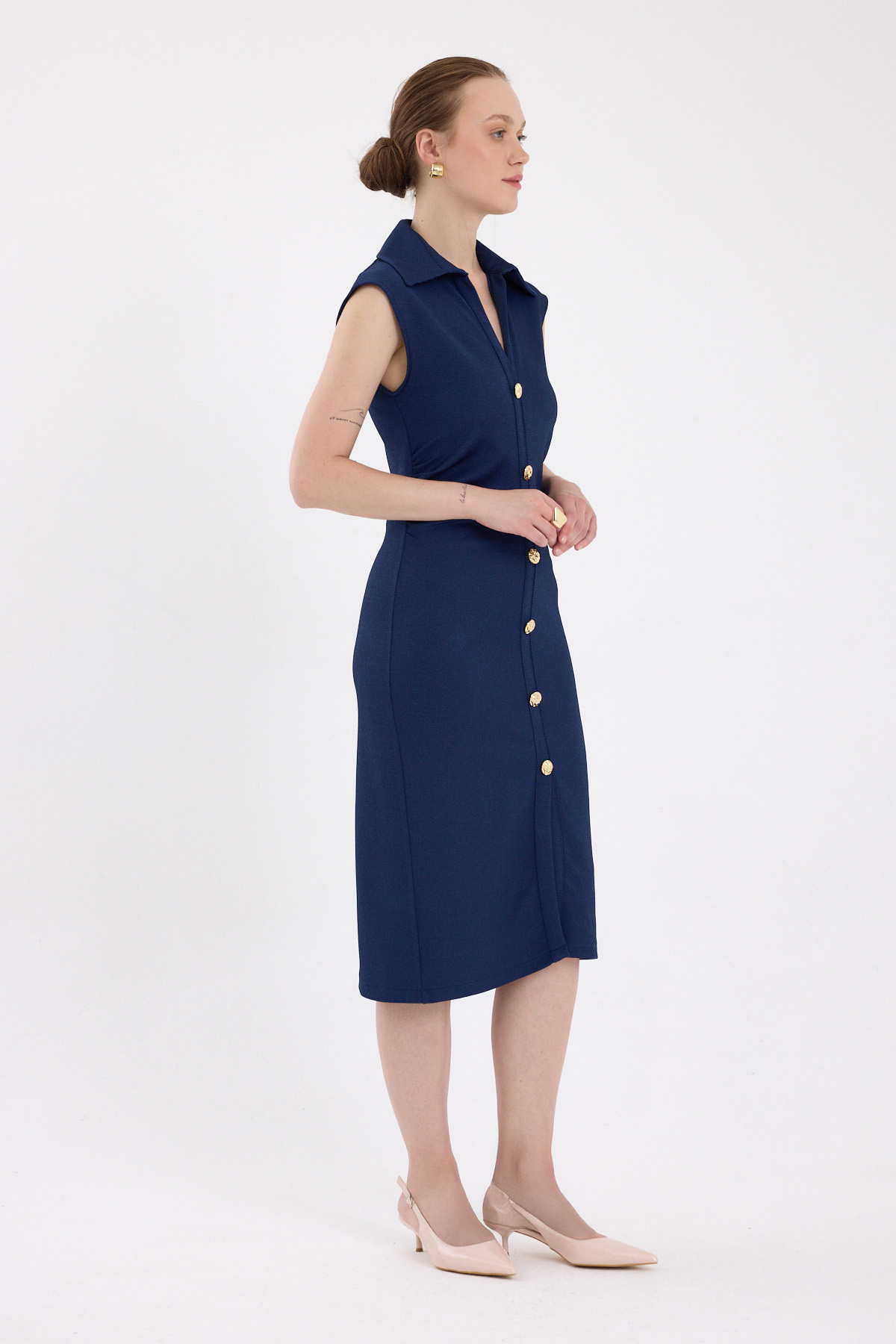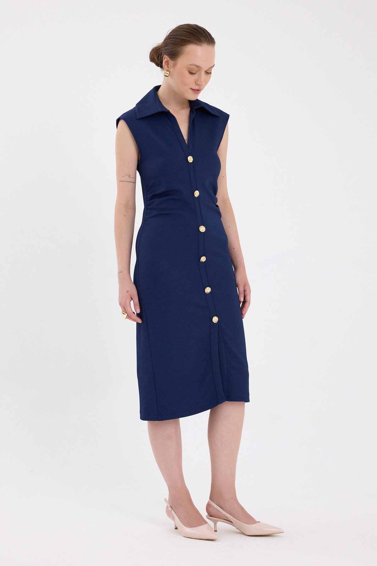 Laci Yanları Büzgülü Kolsuz Gömlek Midi Elbise 8117A