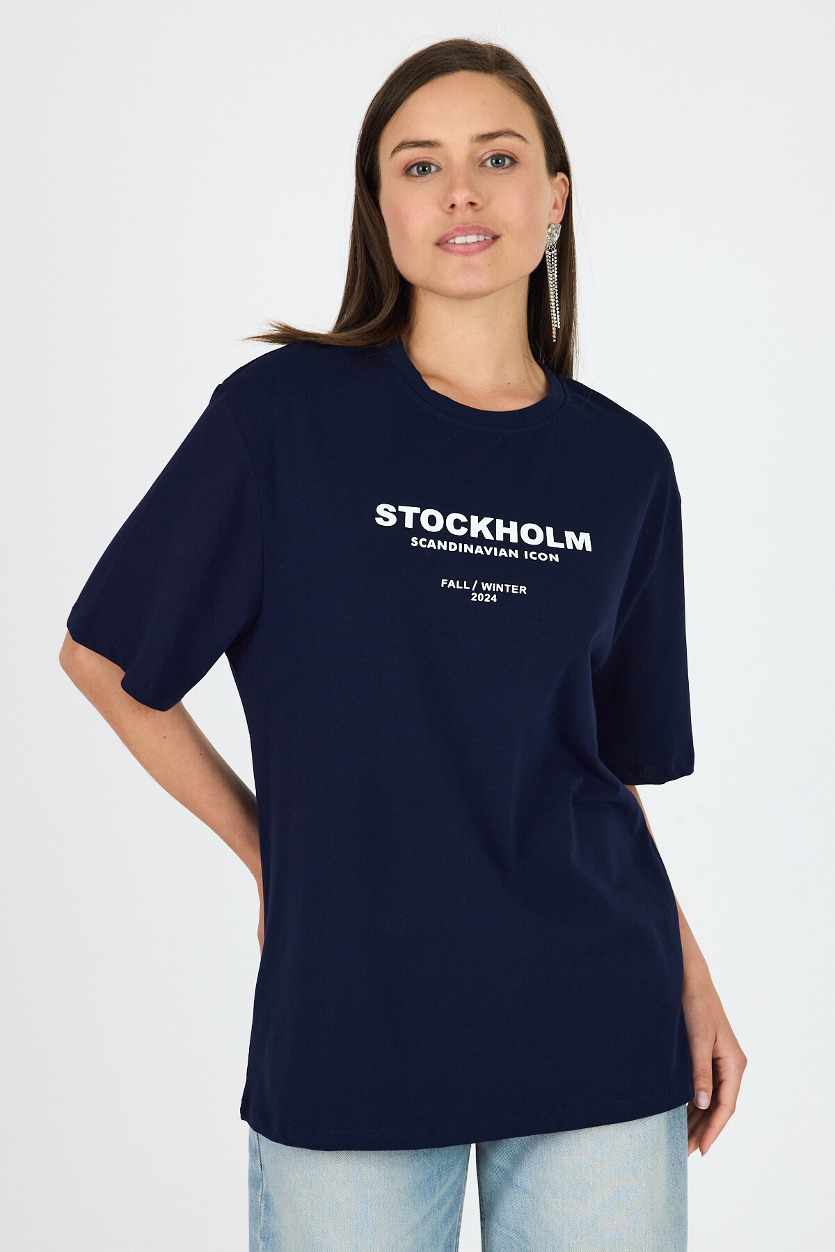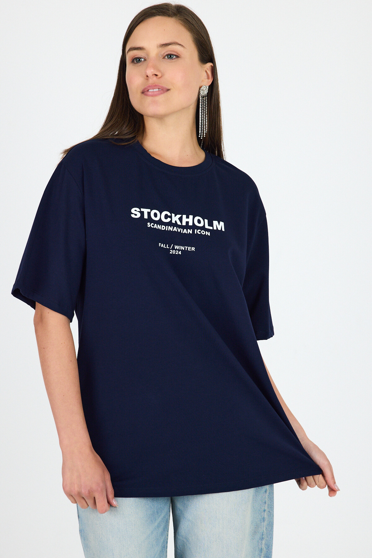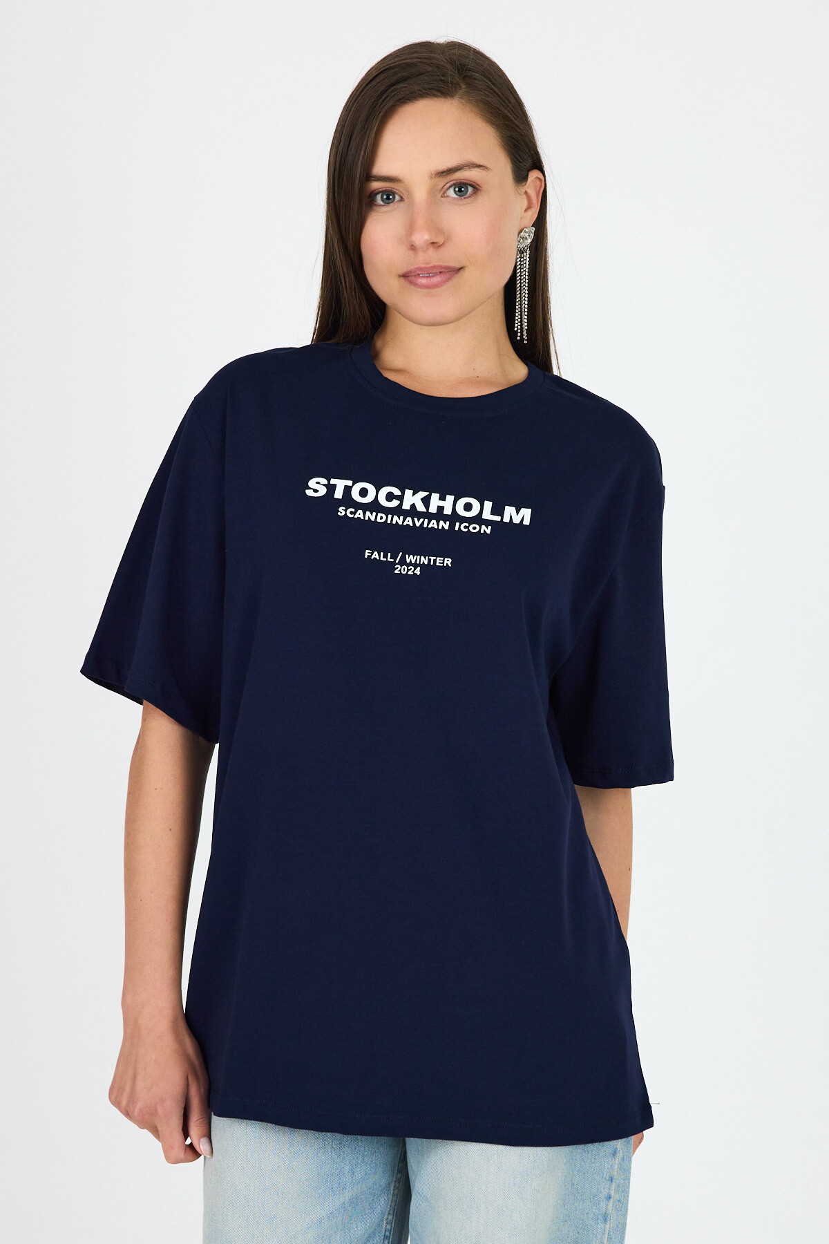 Laci Yazı Baskılı Bisiklet Yaka Oversize Tişört 6056