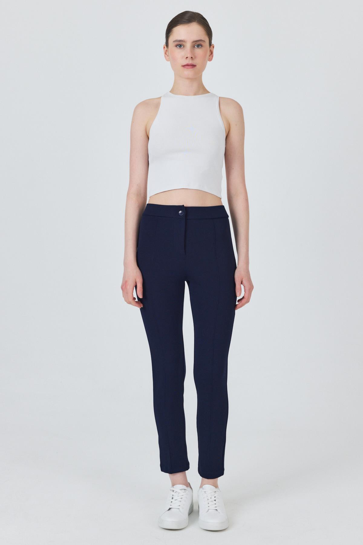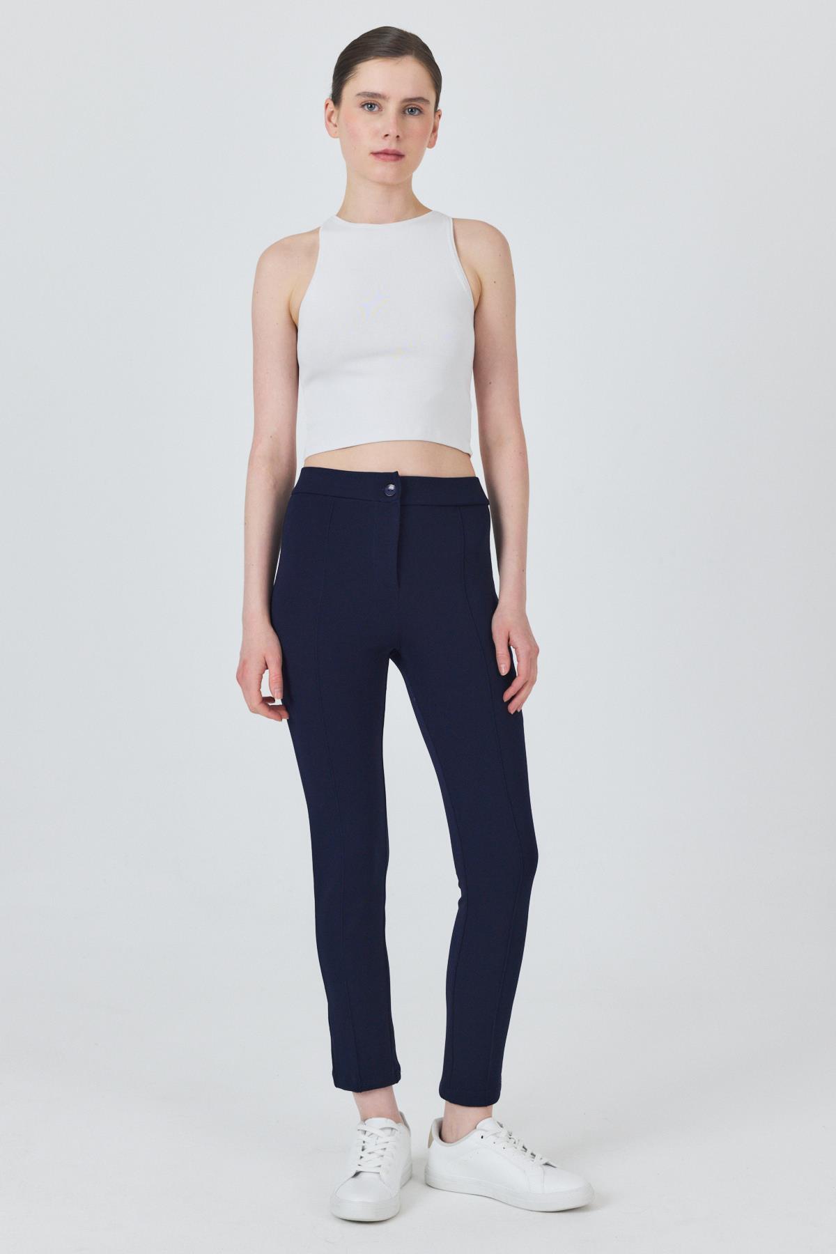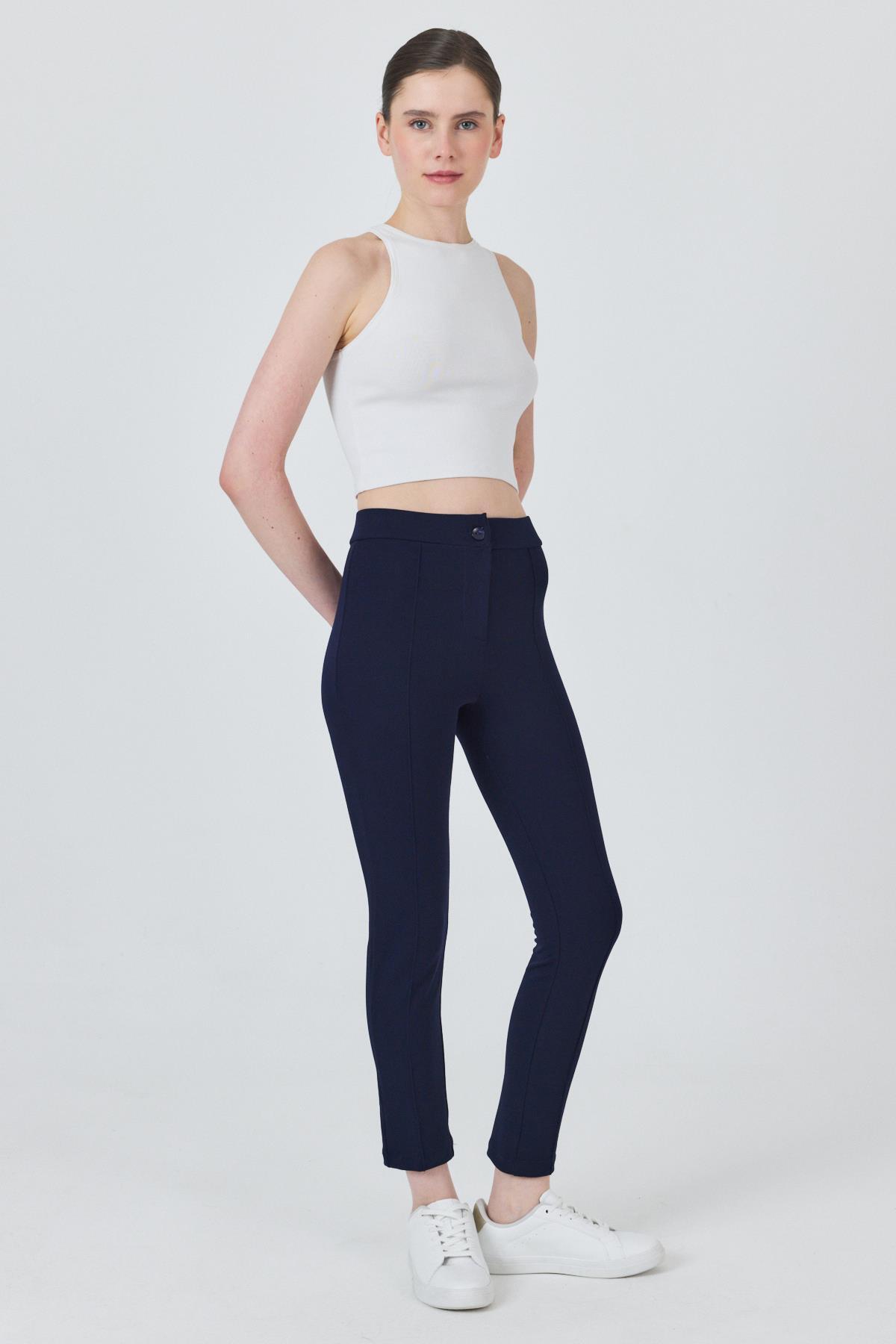 Laci Yüksek Bel Nervür Dikiş Detaylı Tayt Pantolon 6875A