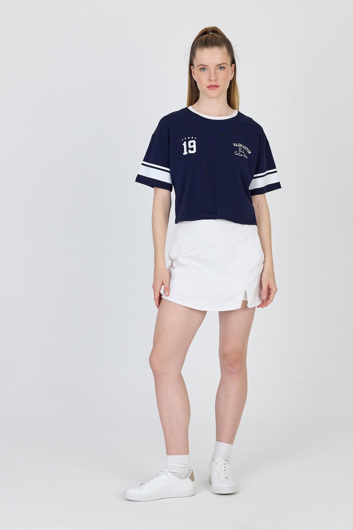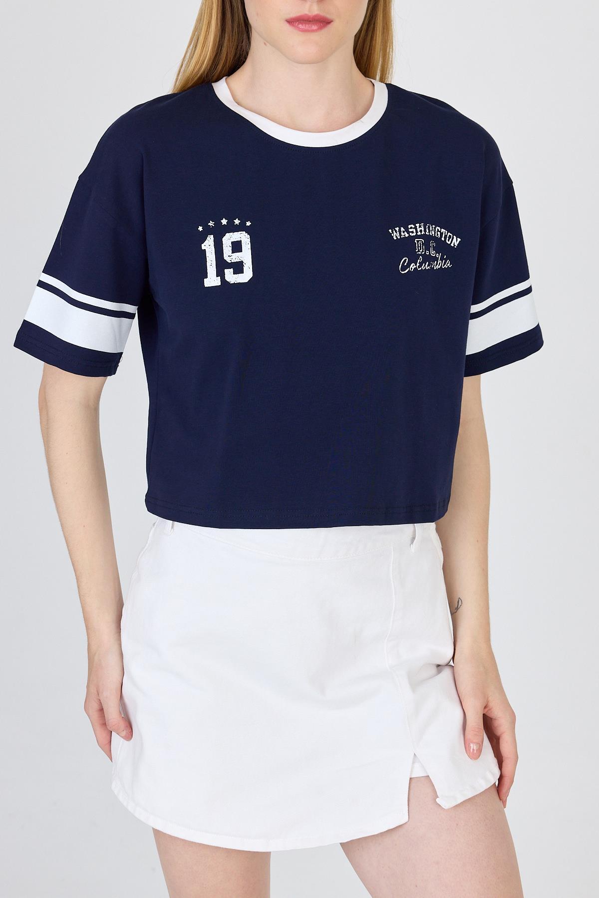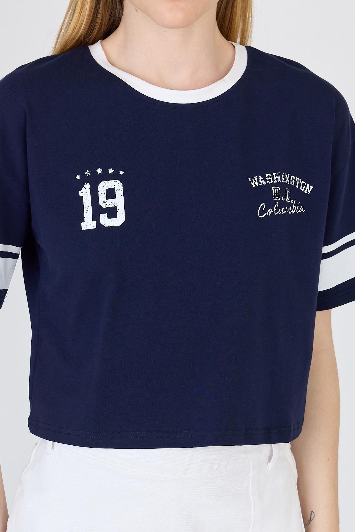 Lacivert Yazı Baskılı Crop Tişört 6584