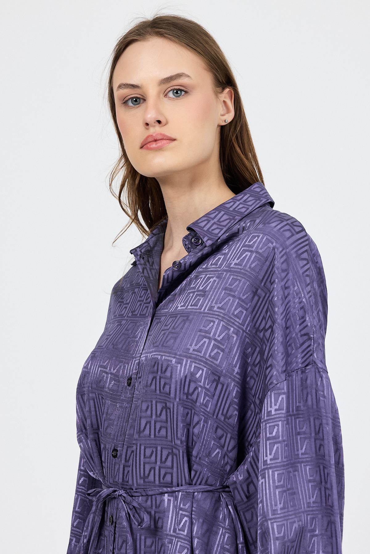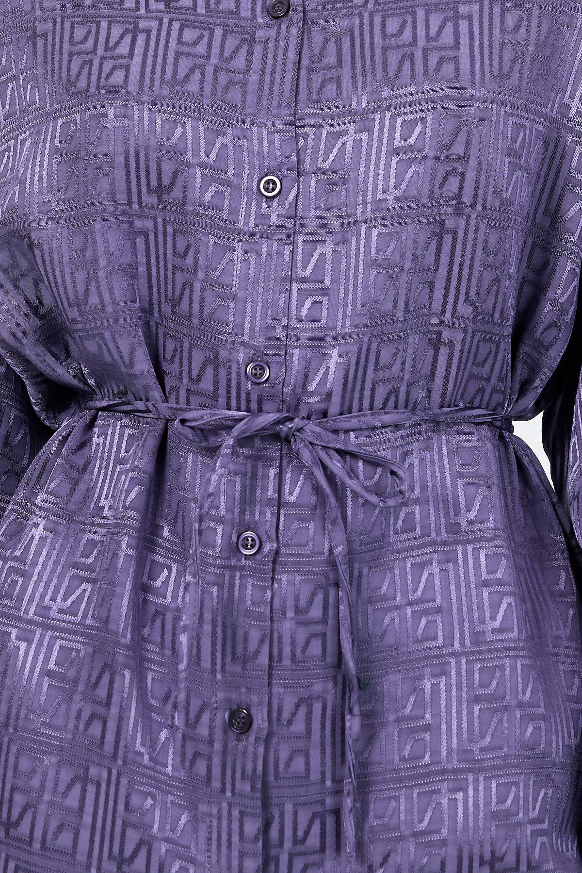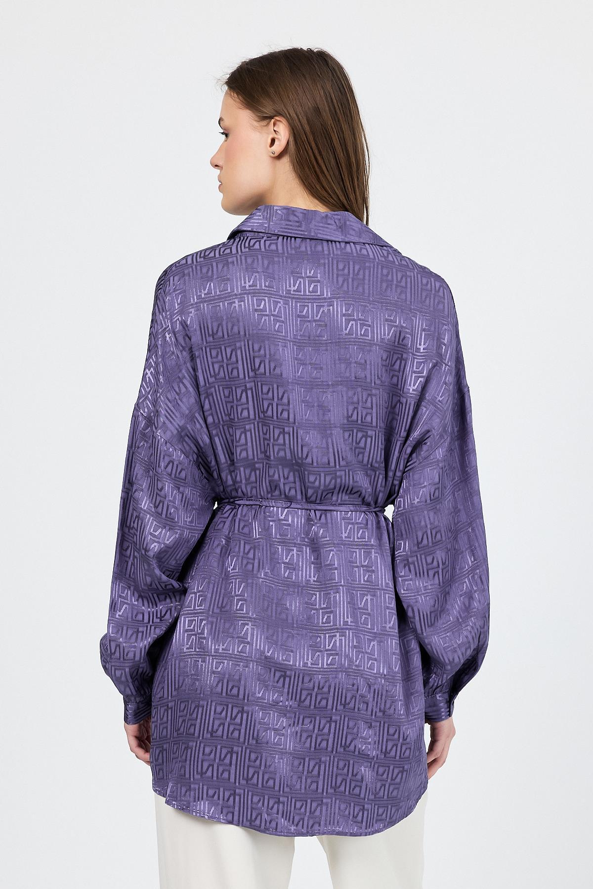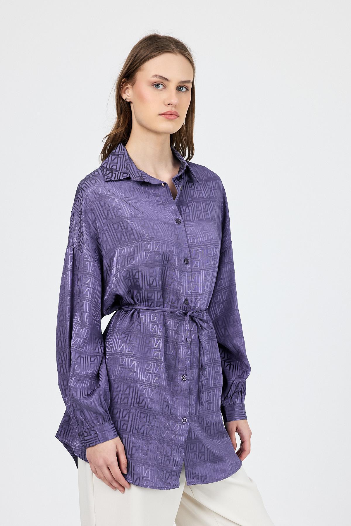 Leylak Desenli Saten Görünümlü İp Bağlama Detaylı Gömlek 4293A