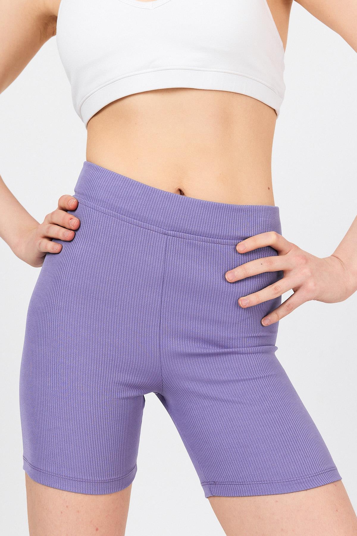 Lila Fitilli Biker Şort 2190M