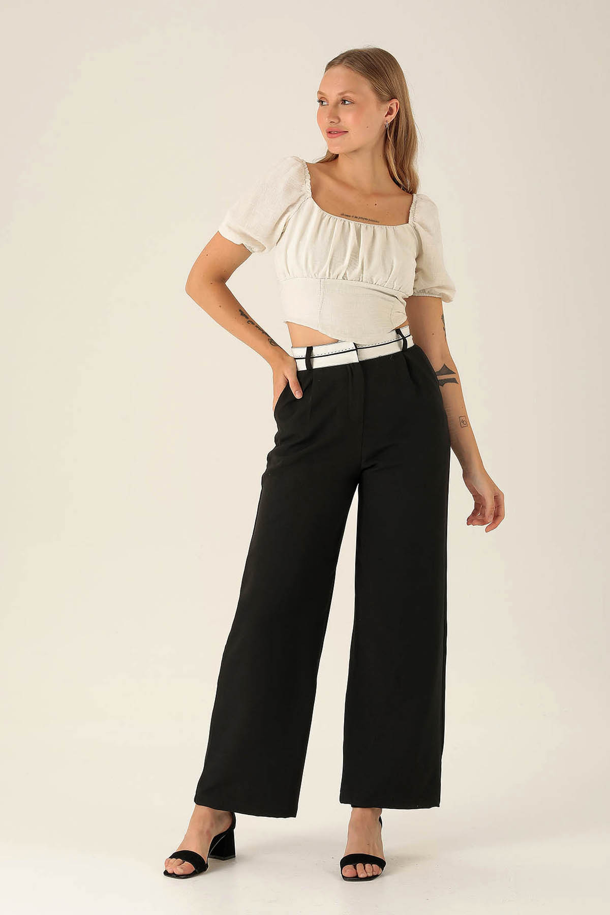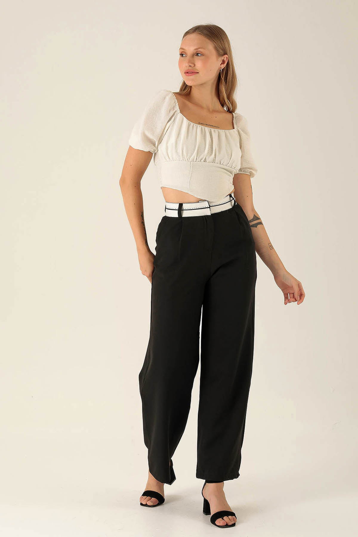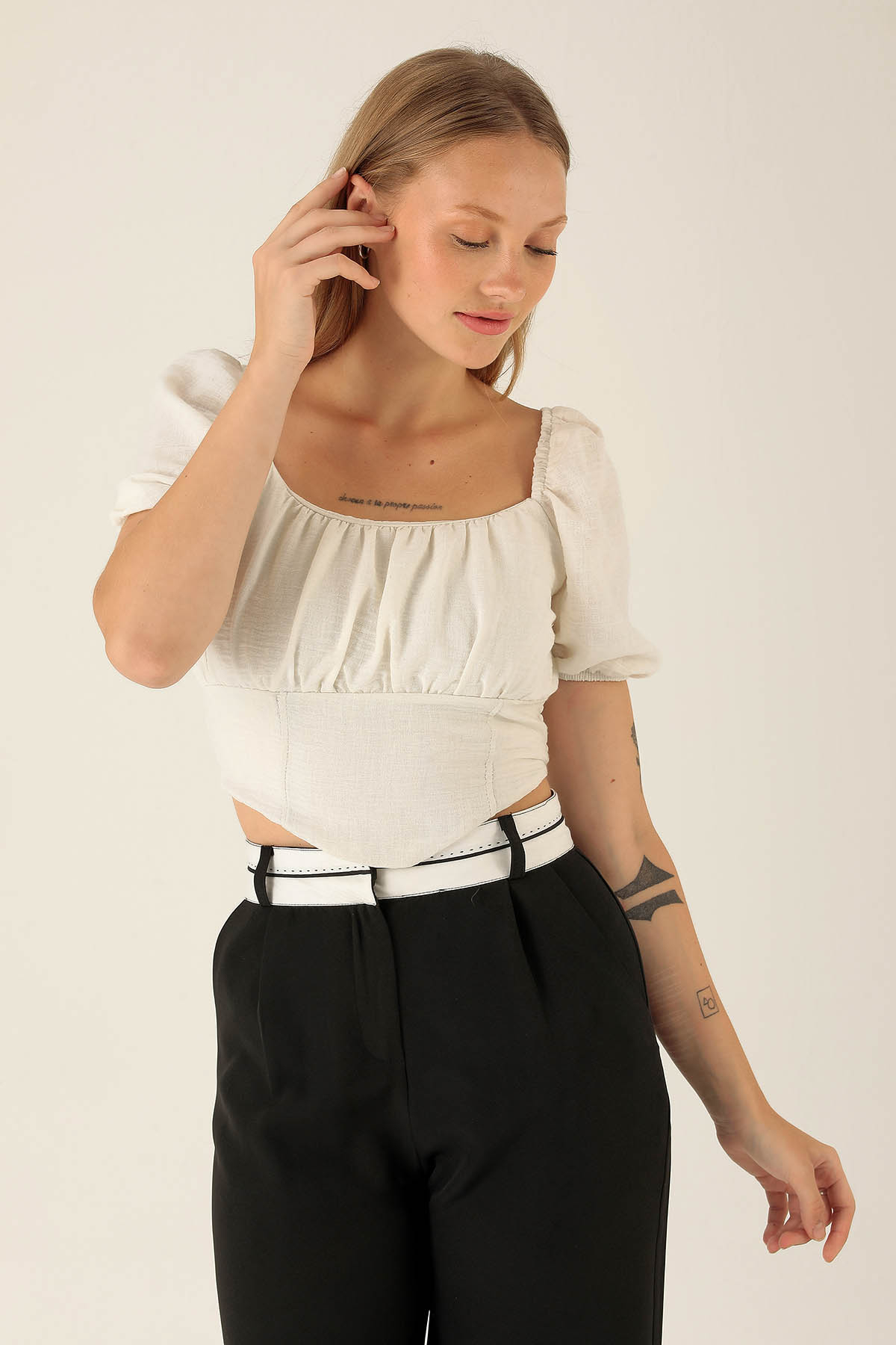 Madonna Yaka Keten Bluz - 10414 Beyaz