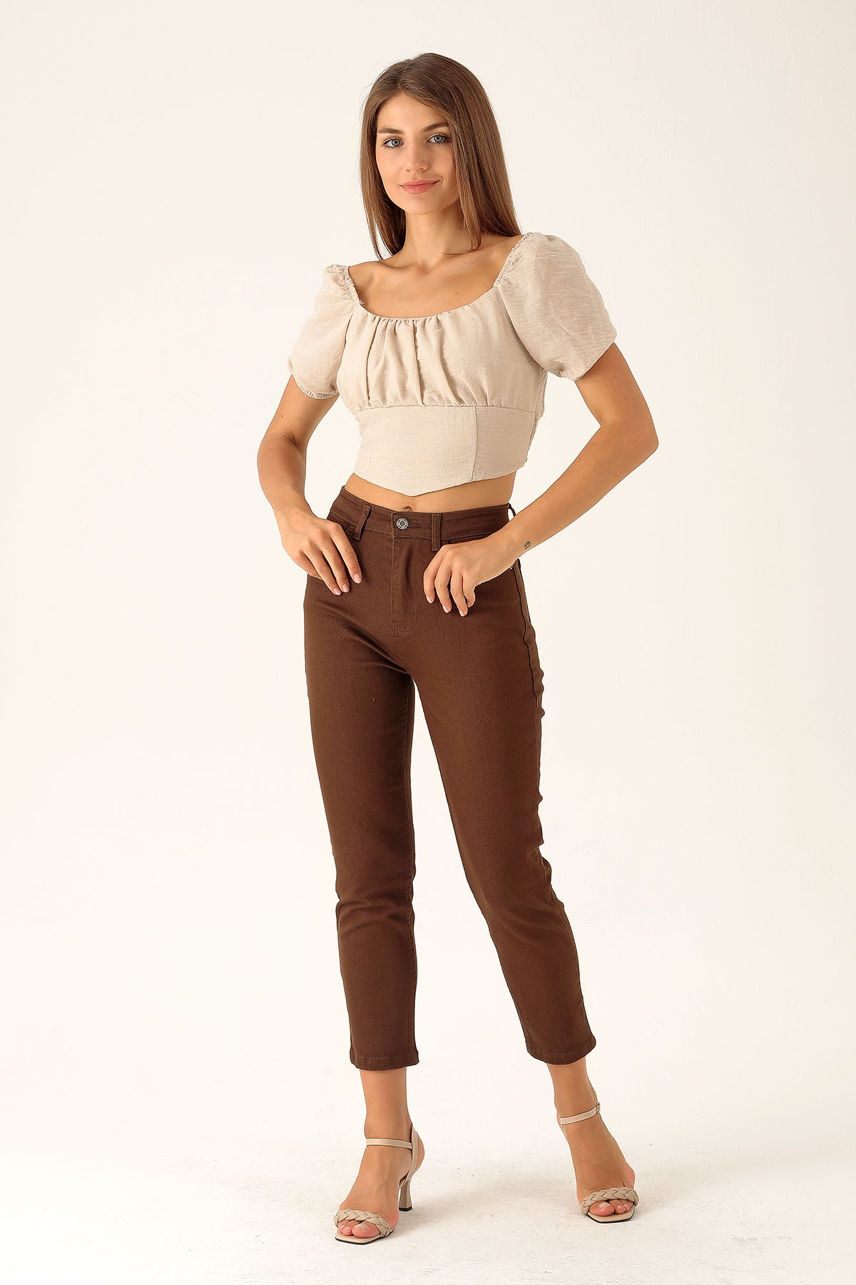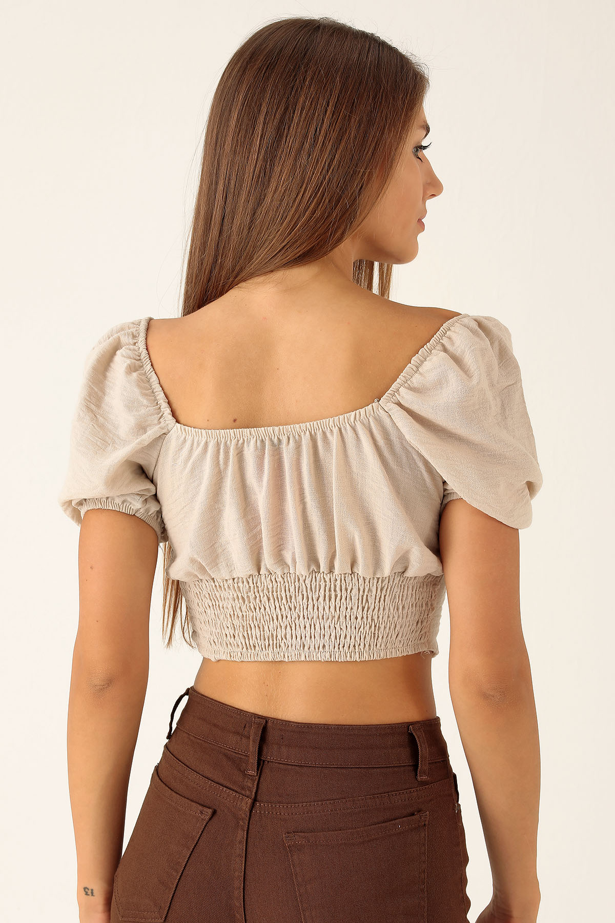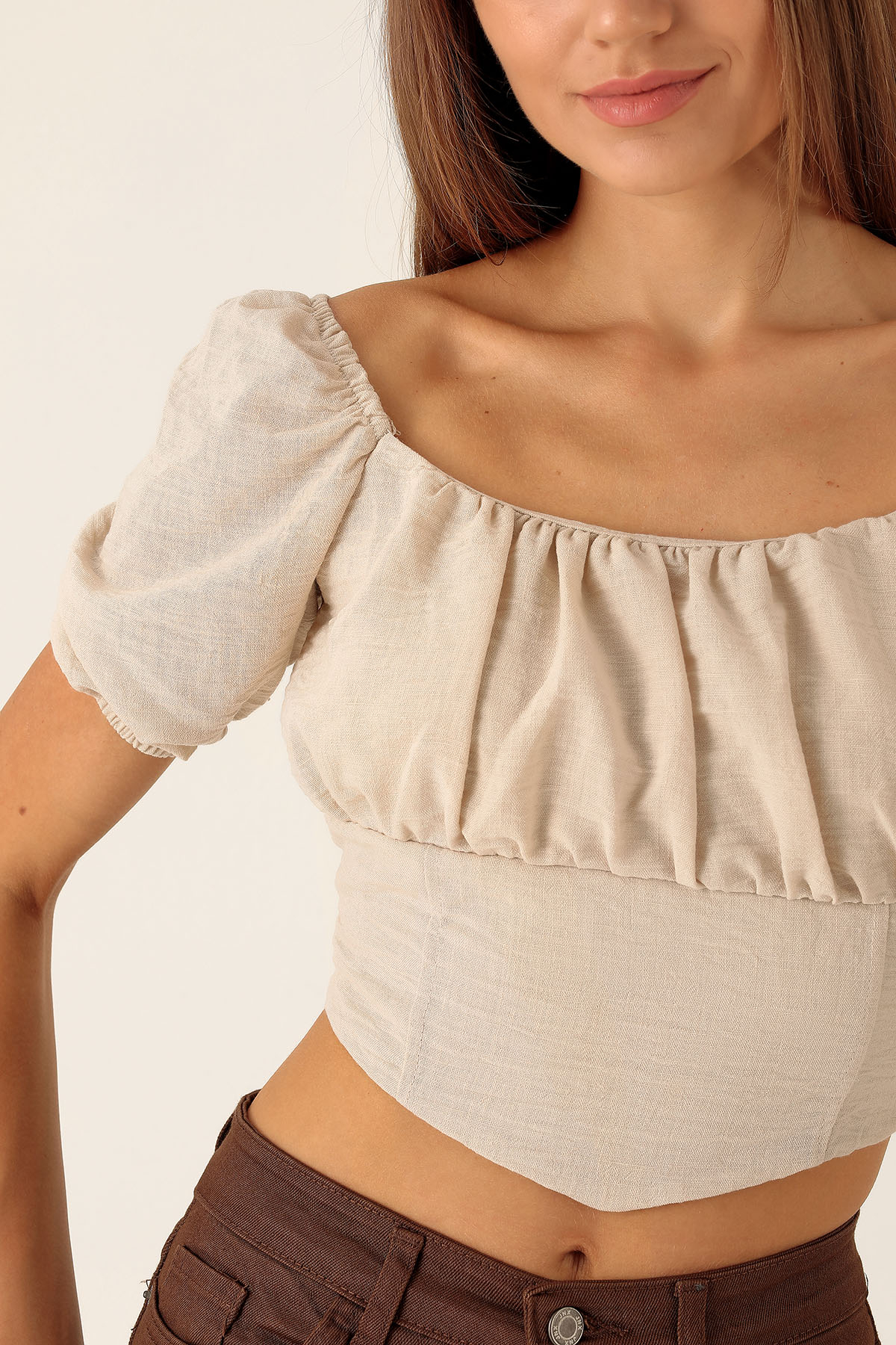 Madonna Yaka Keten Bluz - 10414 Taş