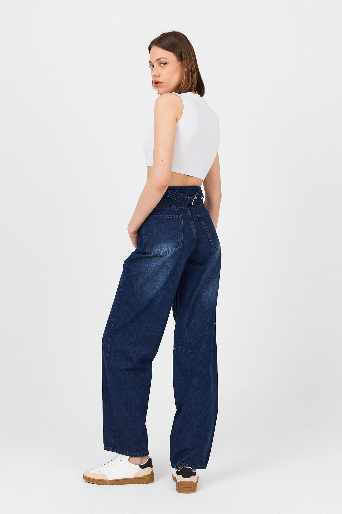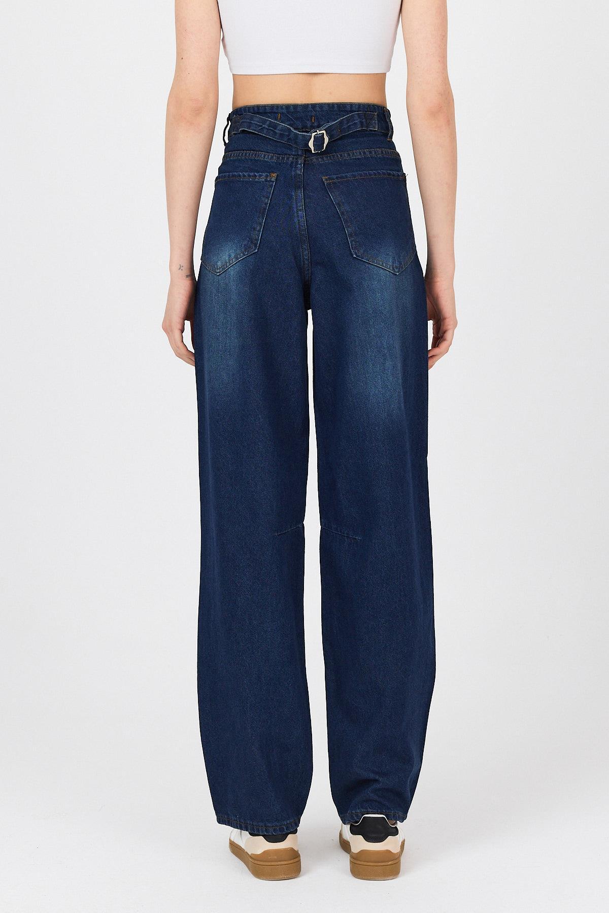 Mavi Arka Kemer Tokalı Yüksek Bel Jean11137