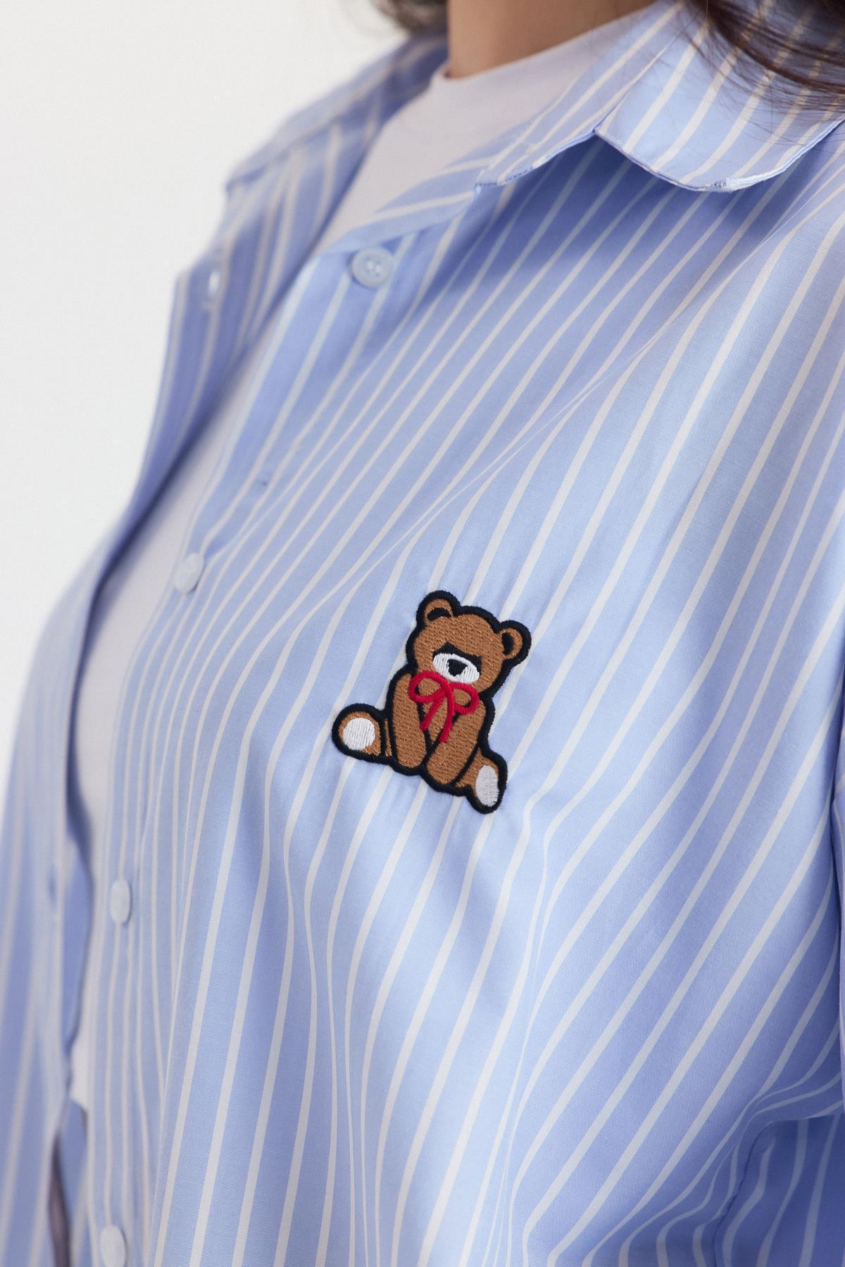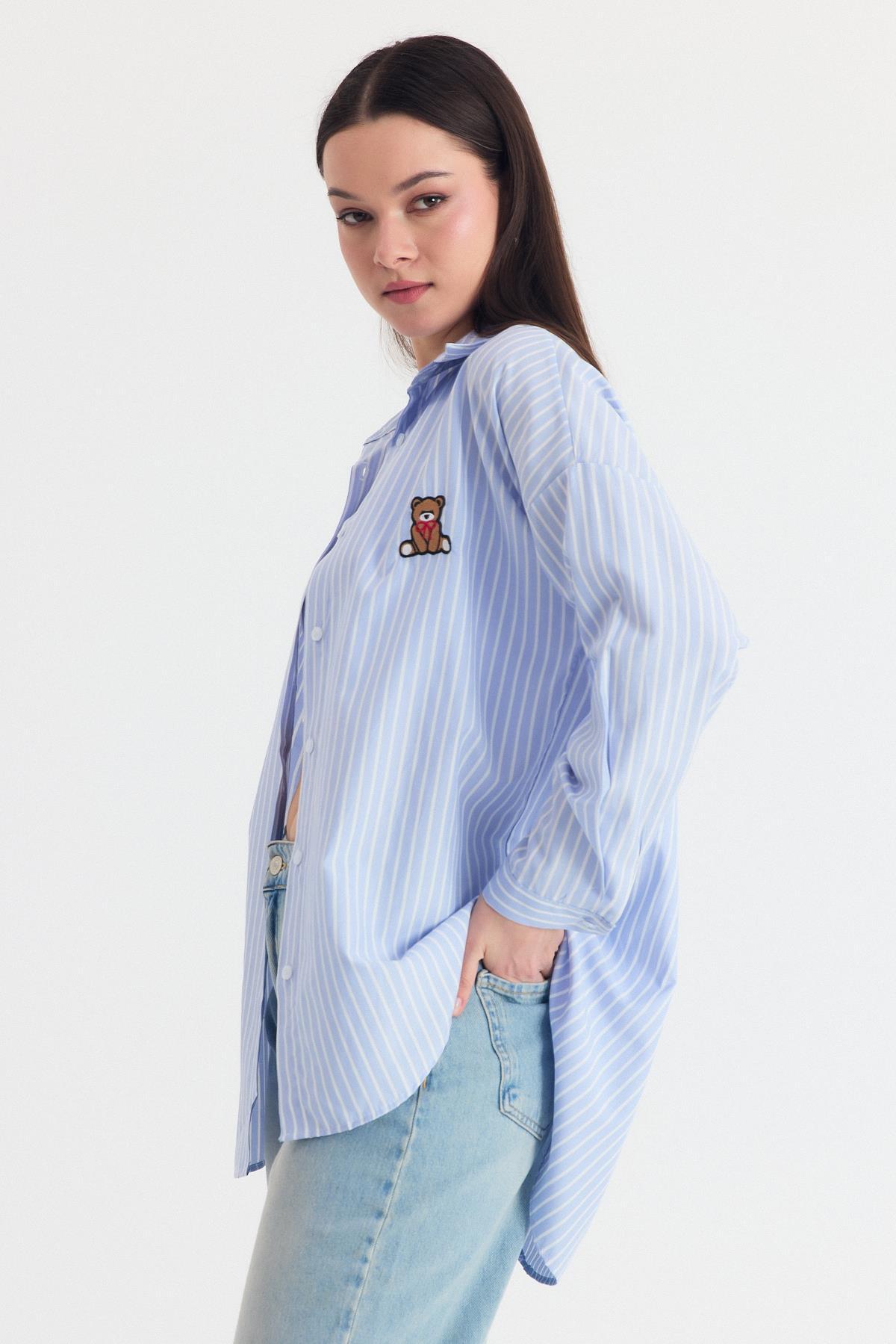 Mavi Ayıcık Nakışlı Oversize Gömlek 4689A