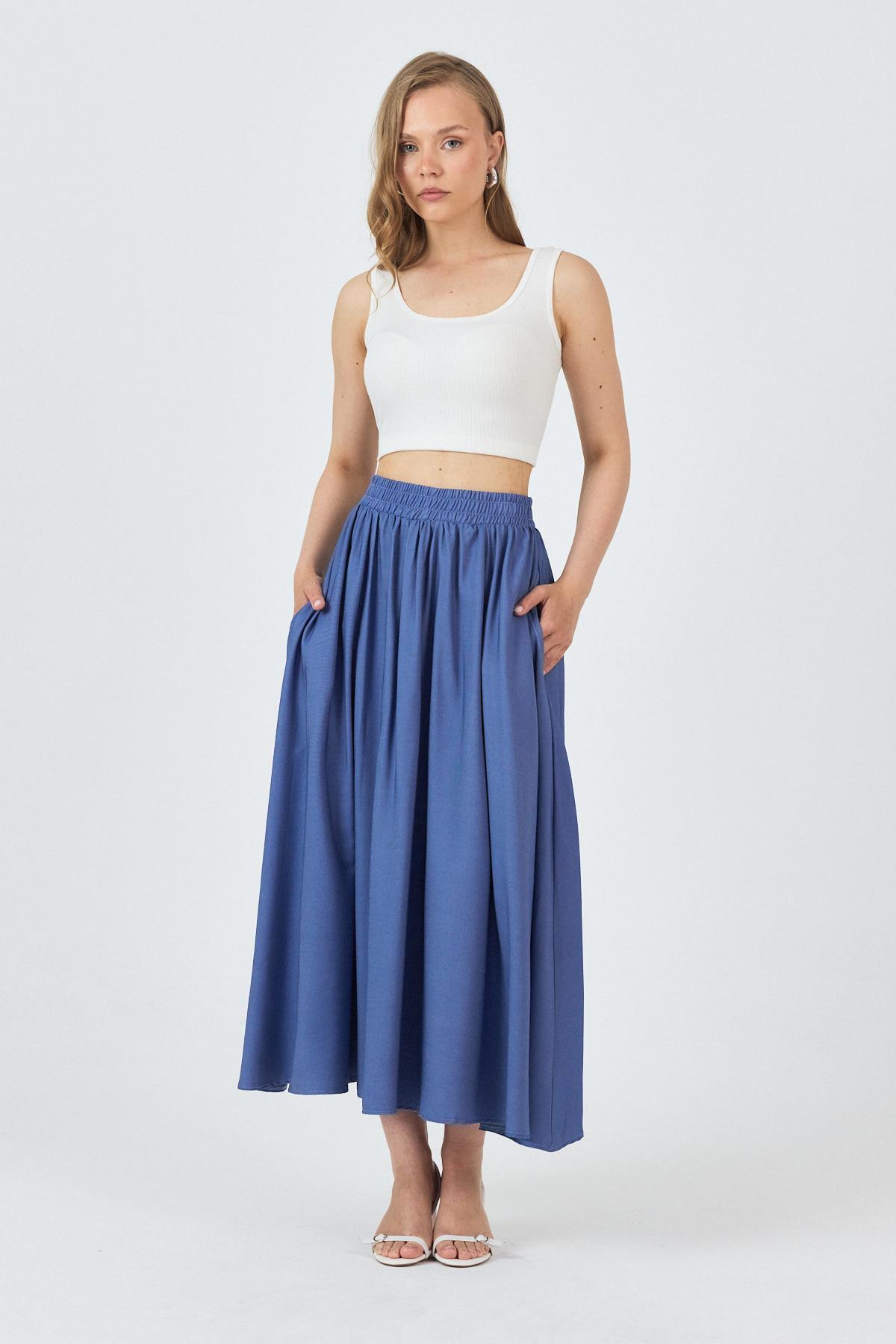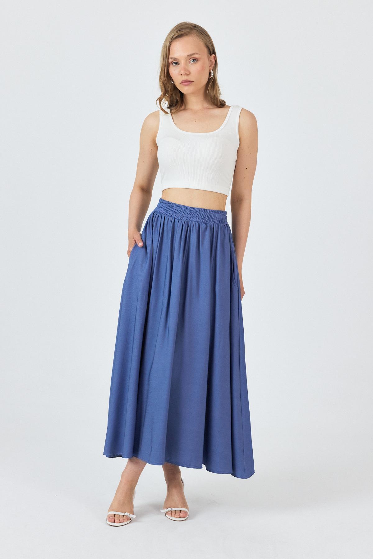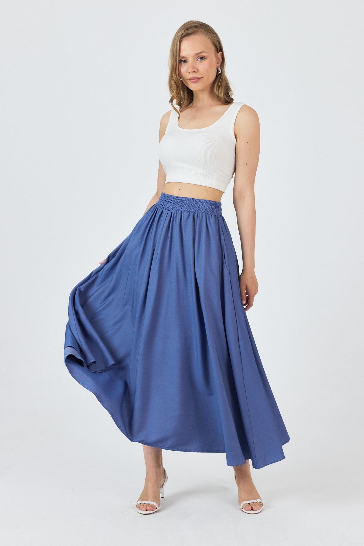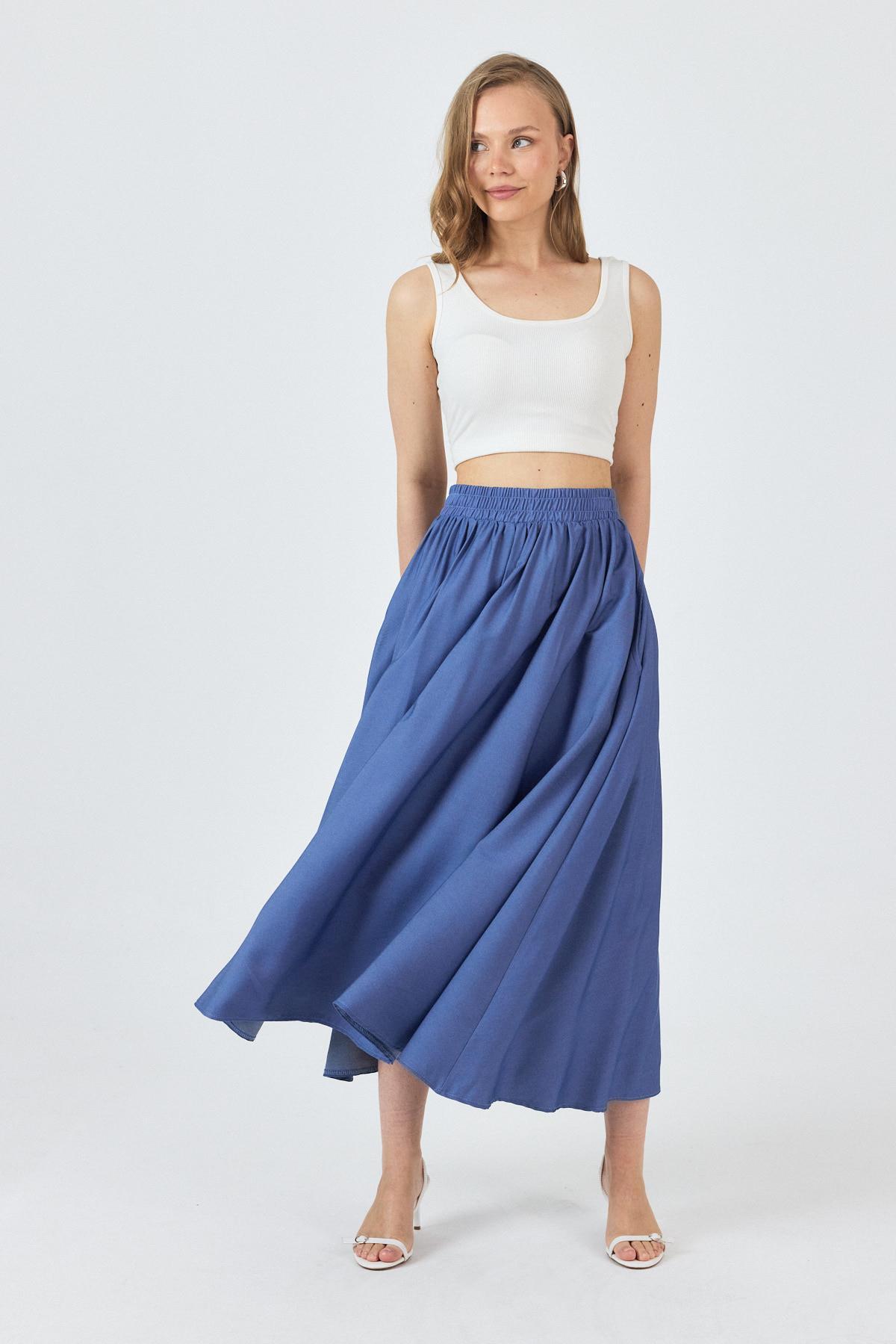 Mavi Bel Lastikli Cepli Kloş Etek 4722A