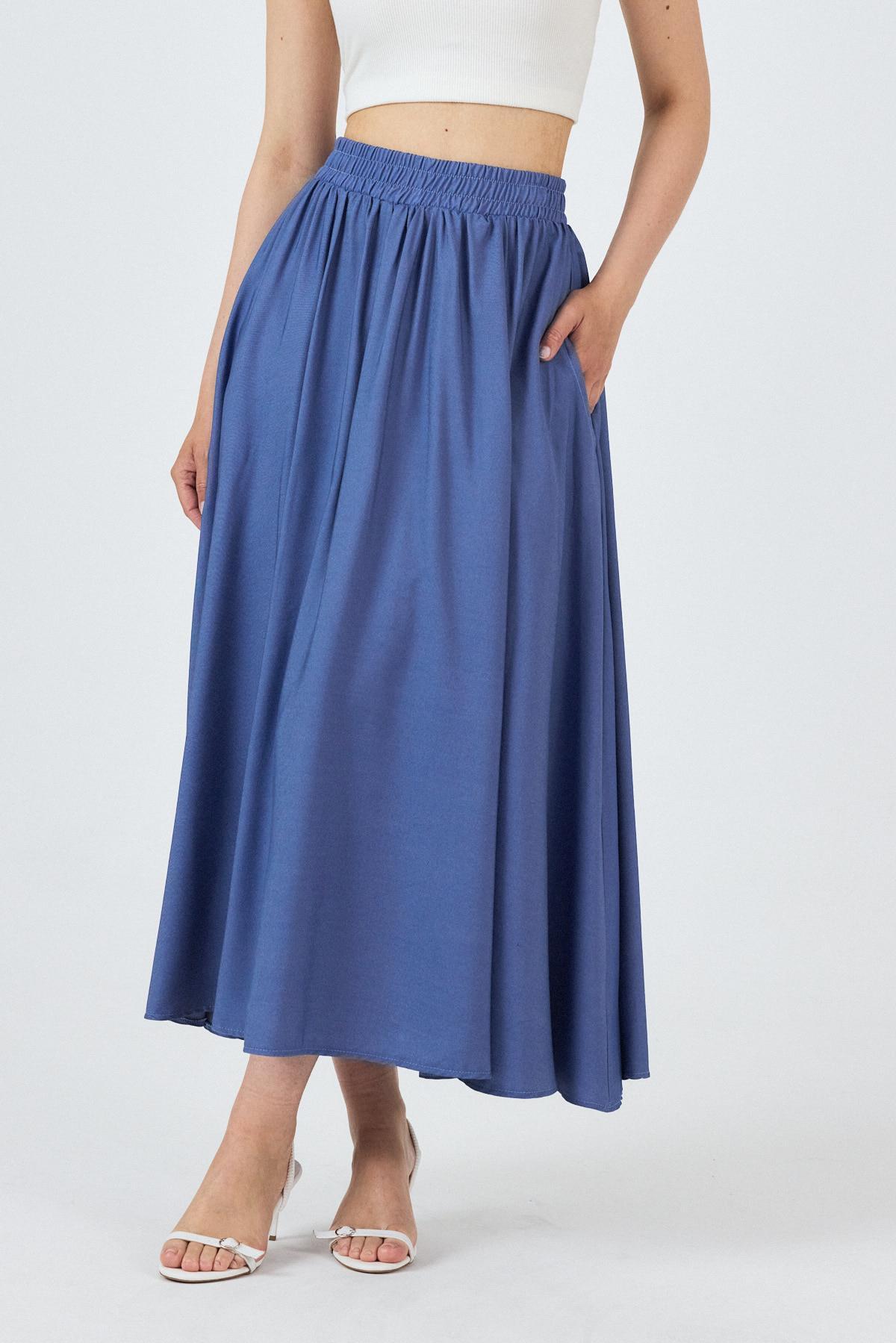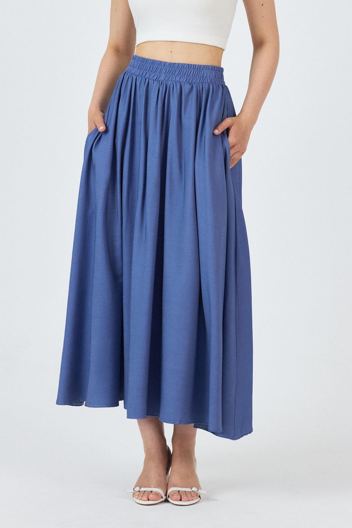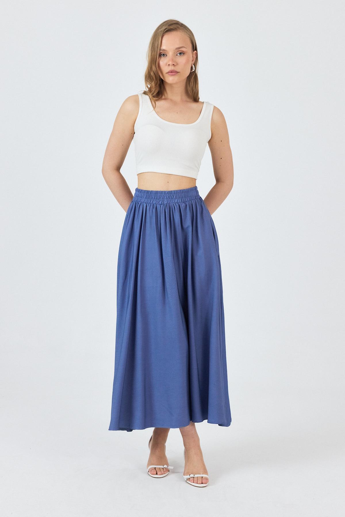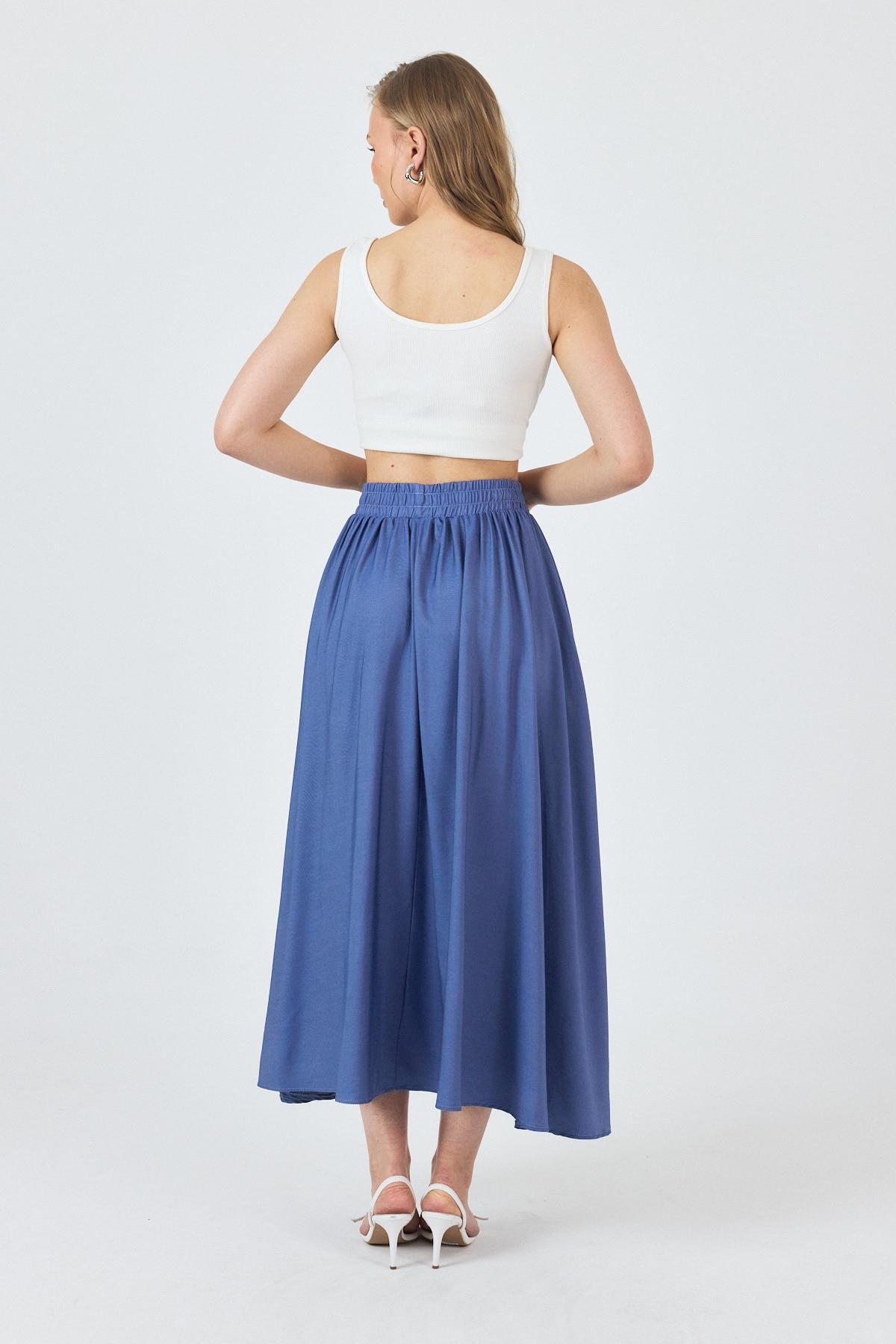 Mavi Bel Lastikli Cepli Kloş Etek 4722A