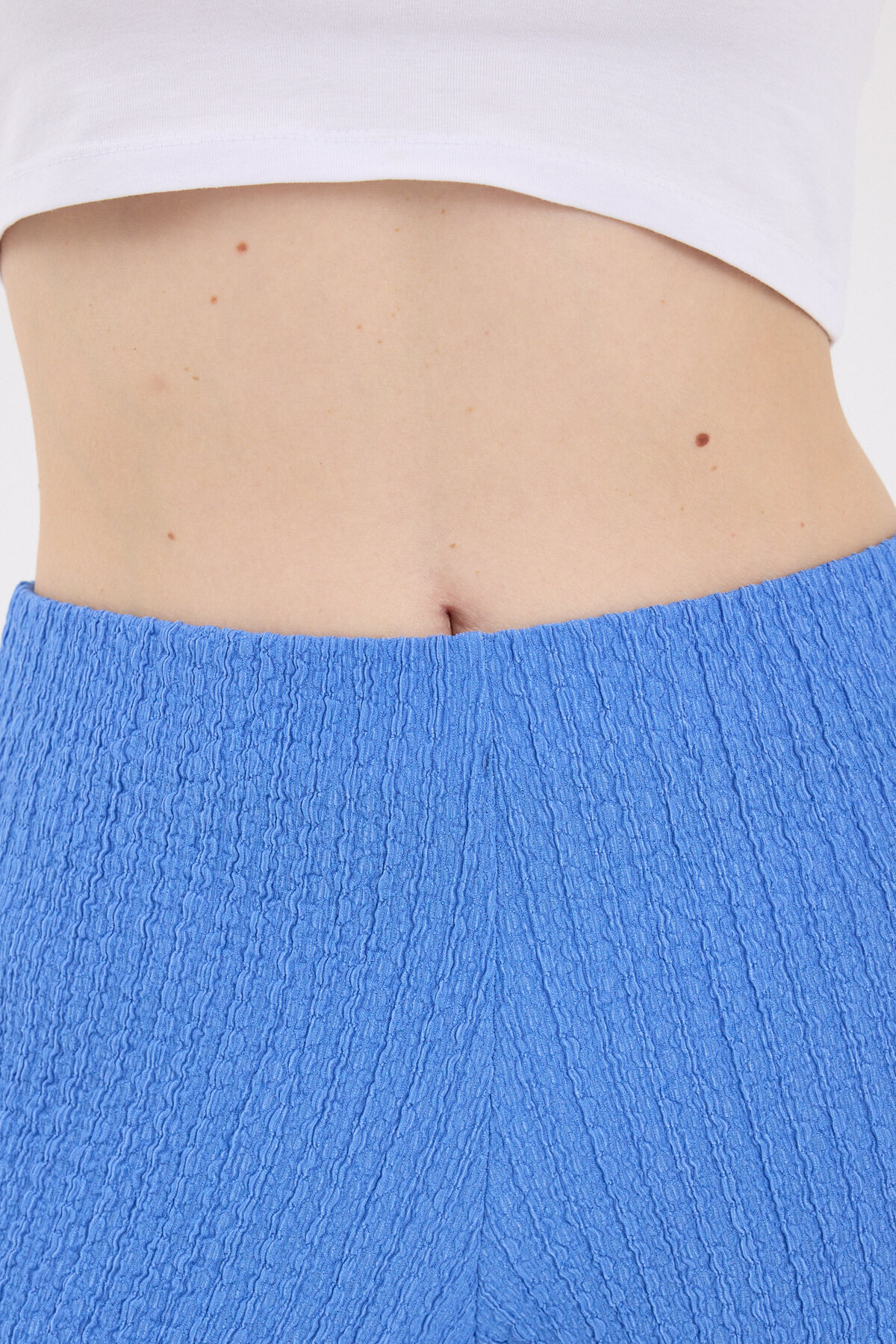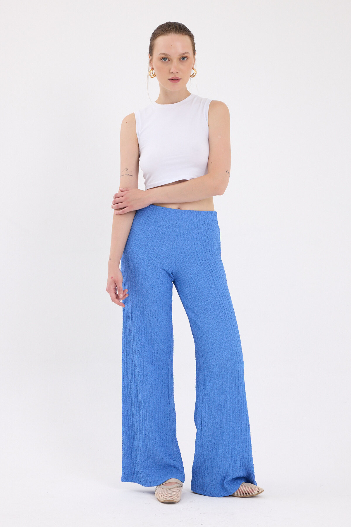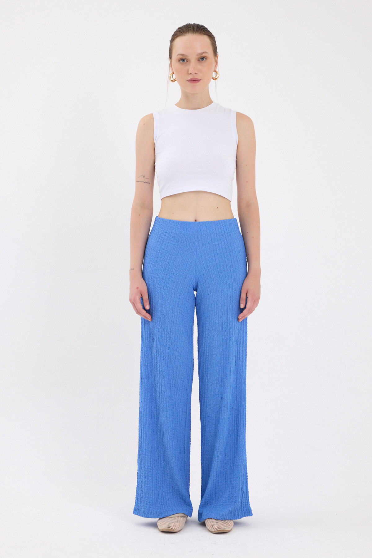 Mavi Bol Paça Bel Lastikli Bürümcük Kumaş Pantolon 2466