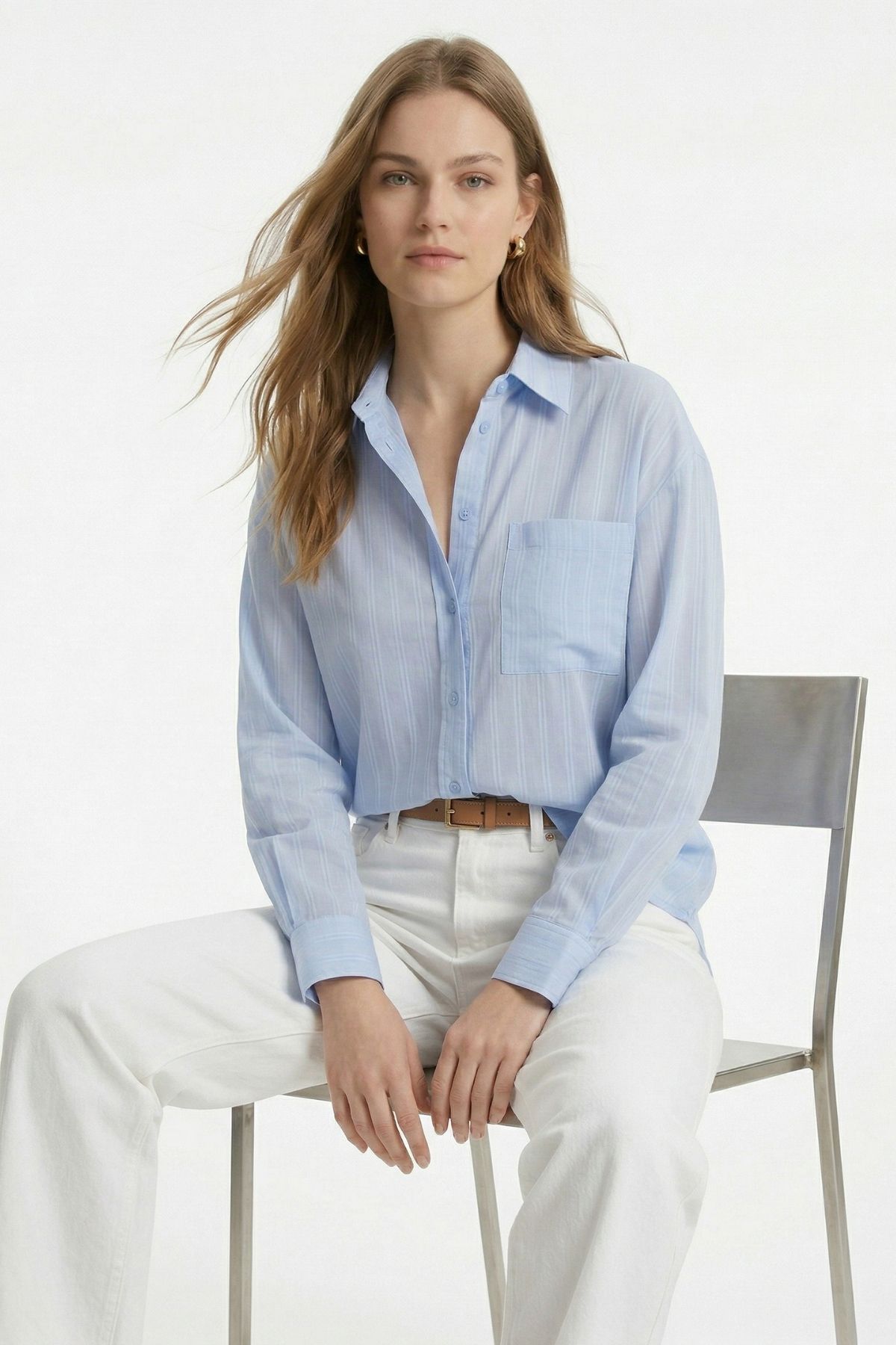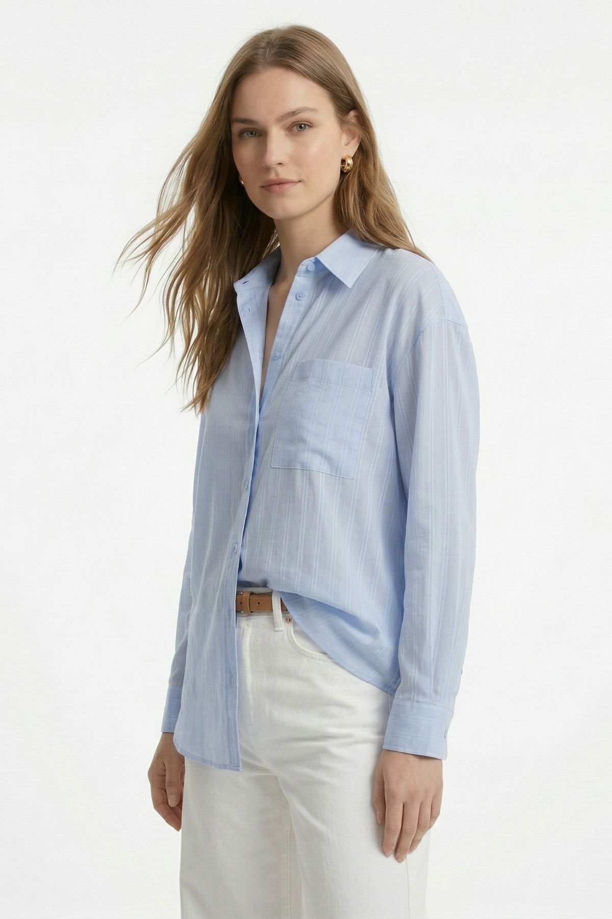 Mavi Çizgili Oversize Gömlek 5460 - RAYS Mavi Çizgili Oversize Gömlek 5460 - RAYS (1)
