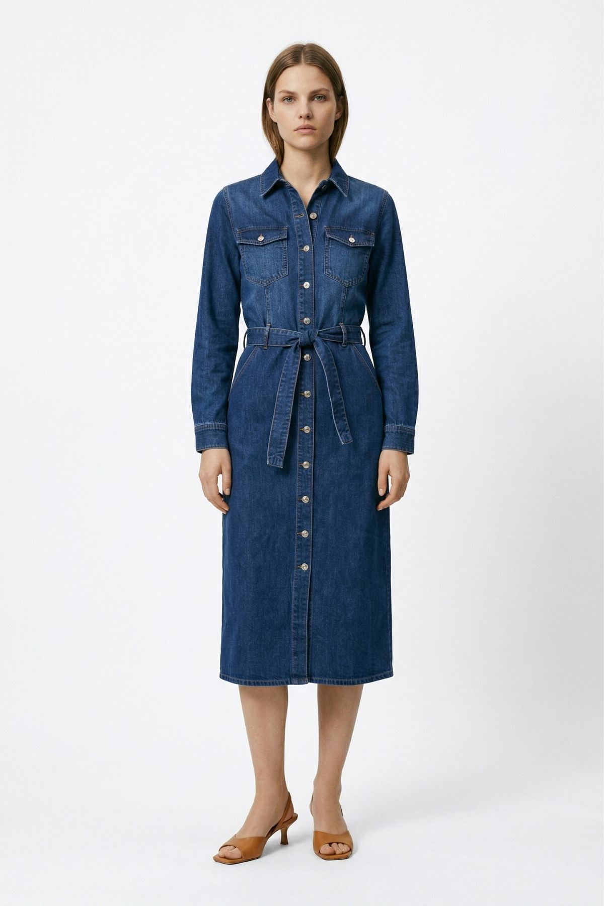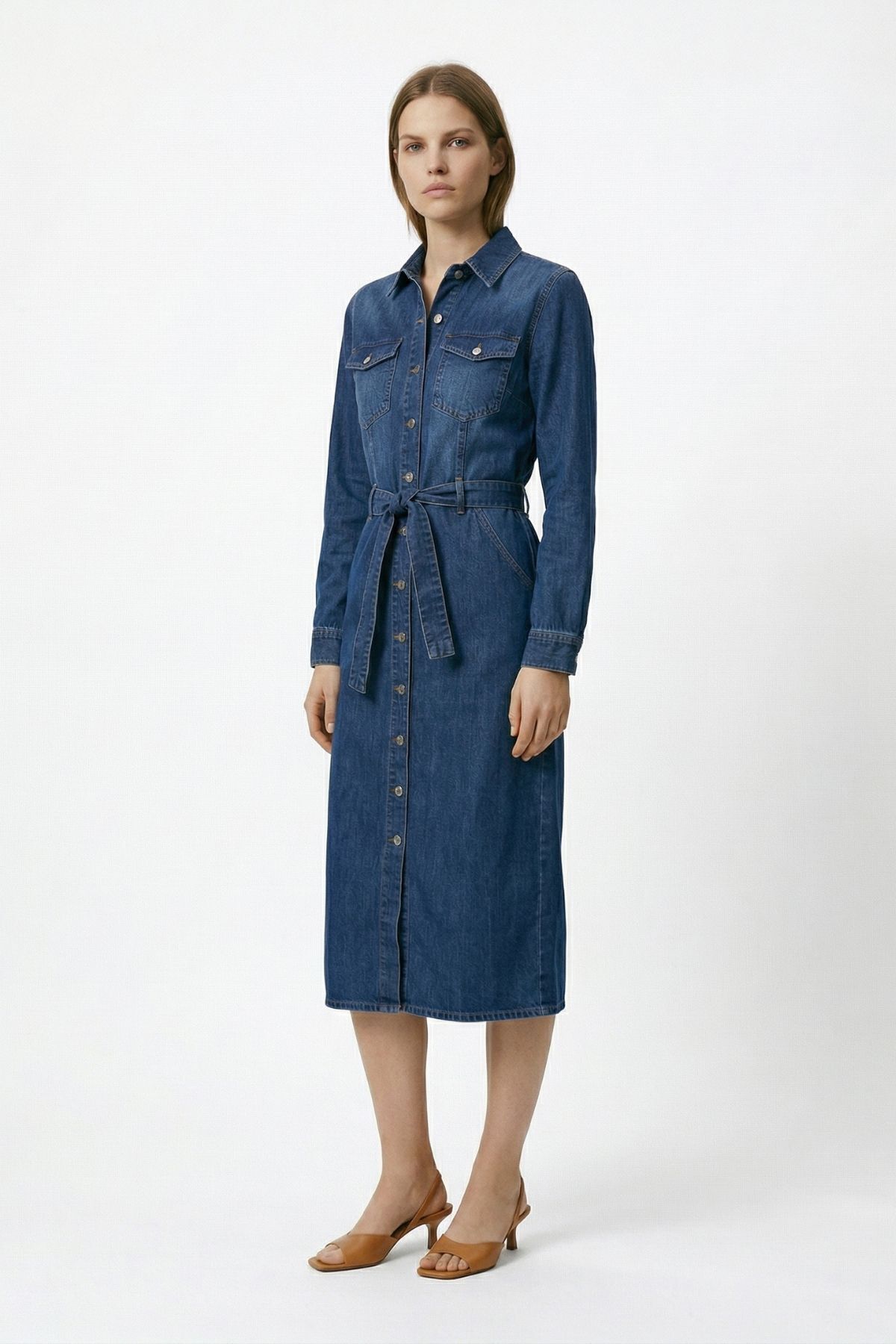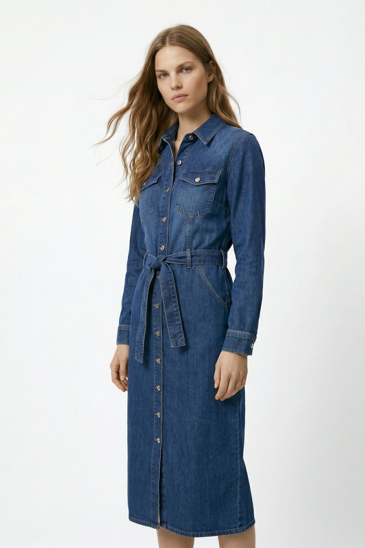 221 Çift Cepli Düğmeli Kuşaklı Elbise