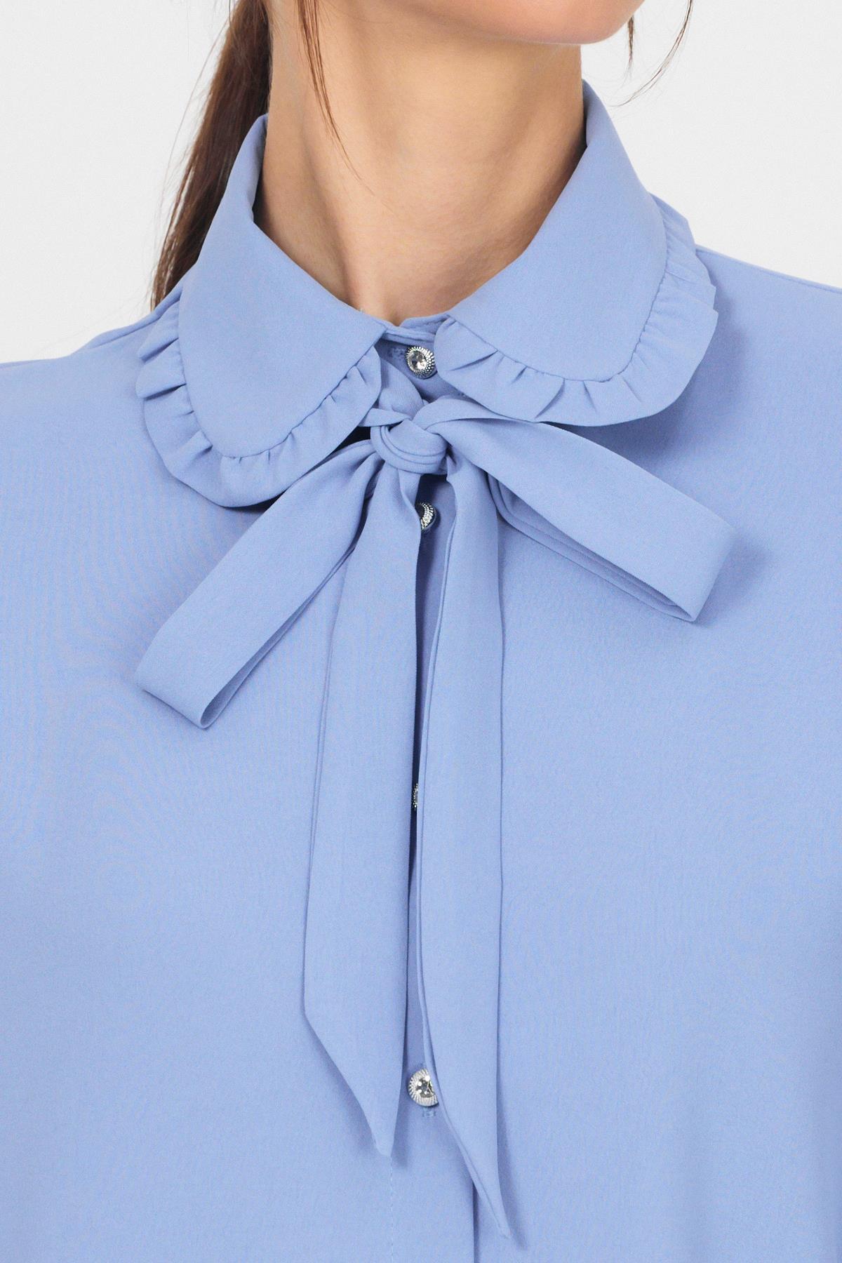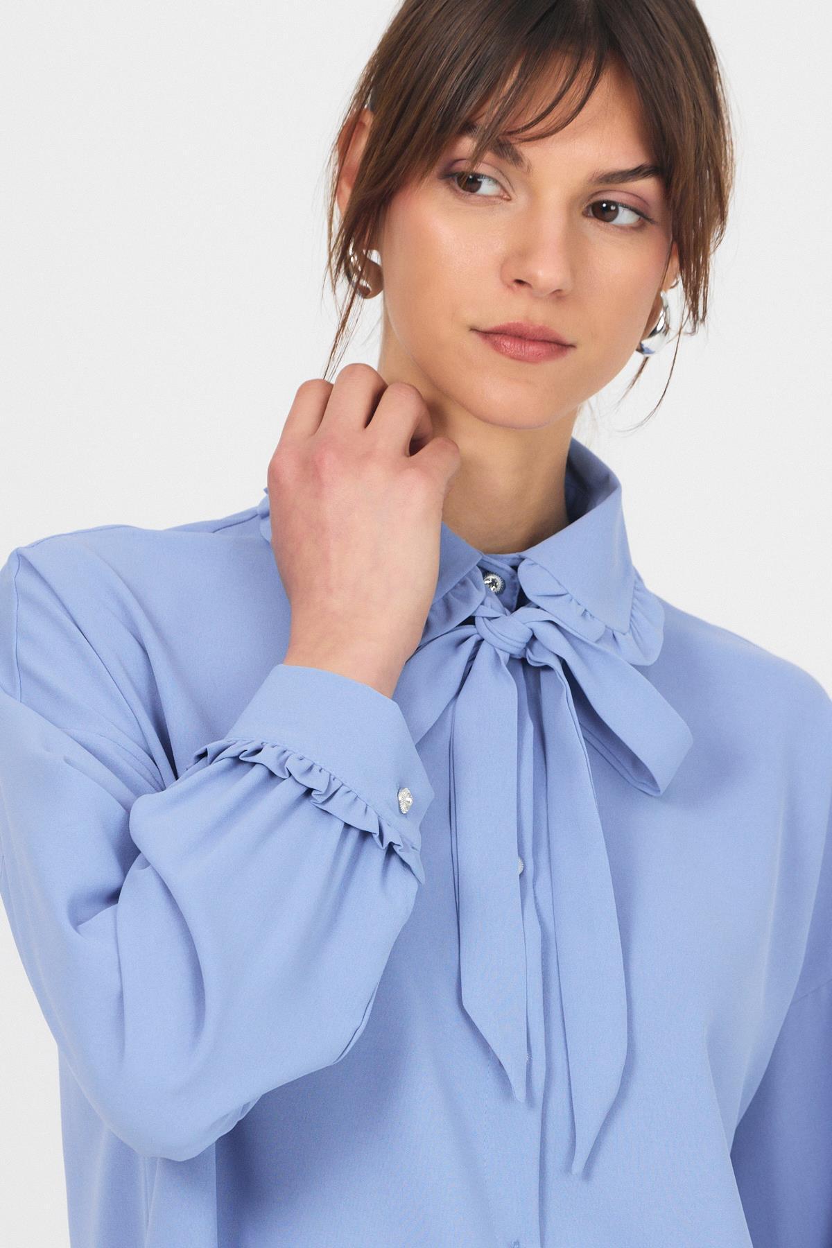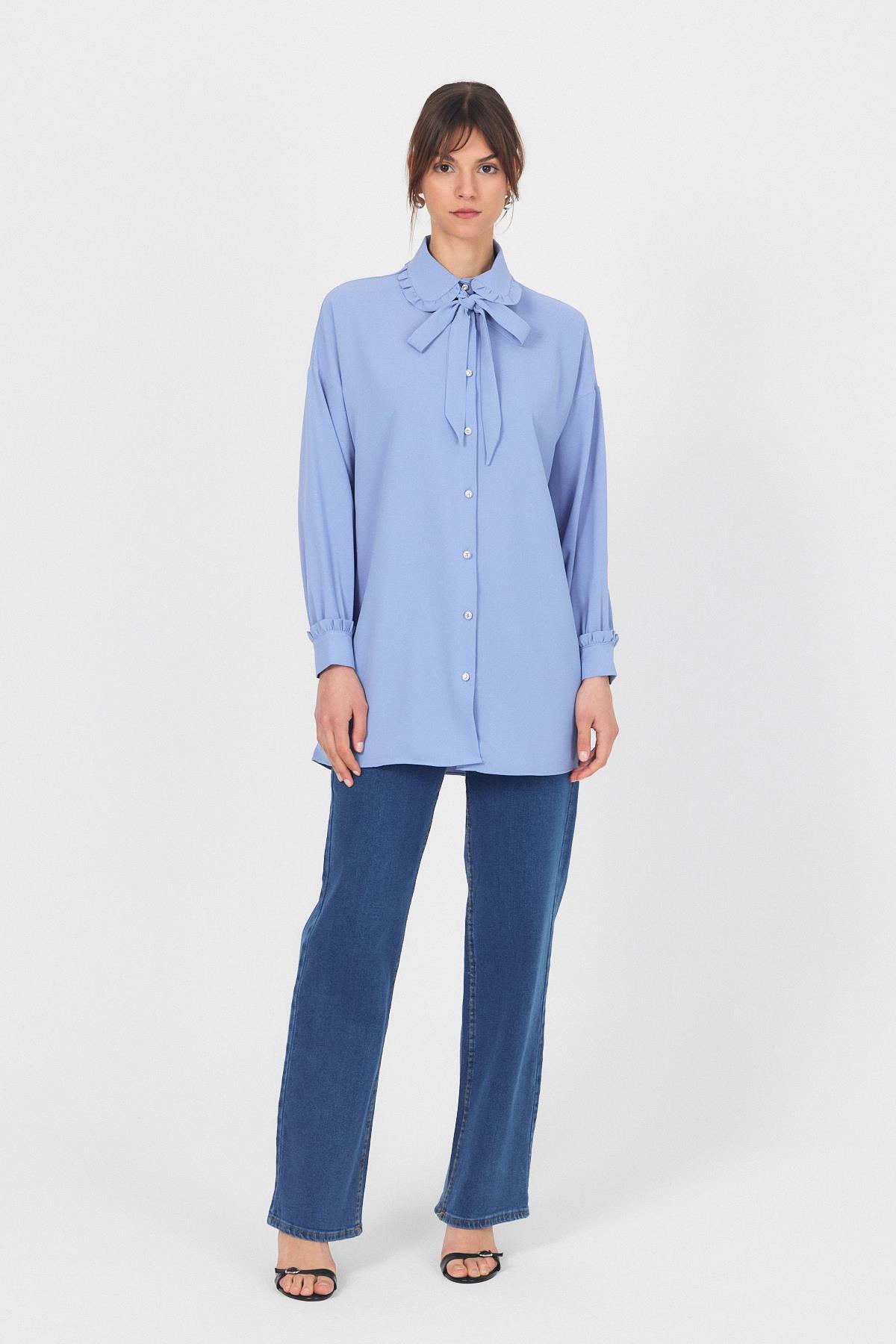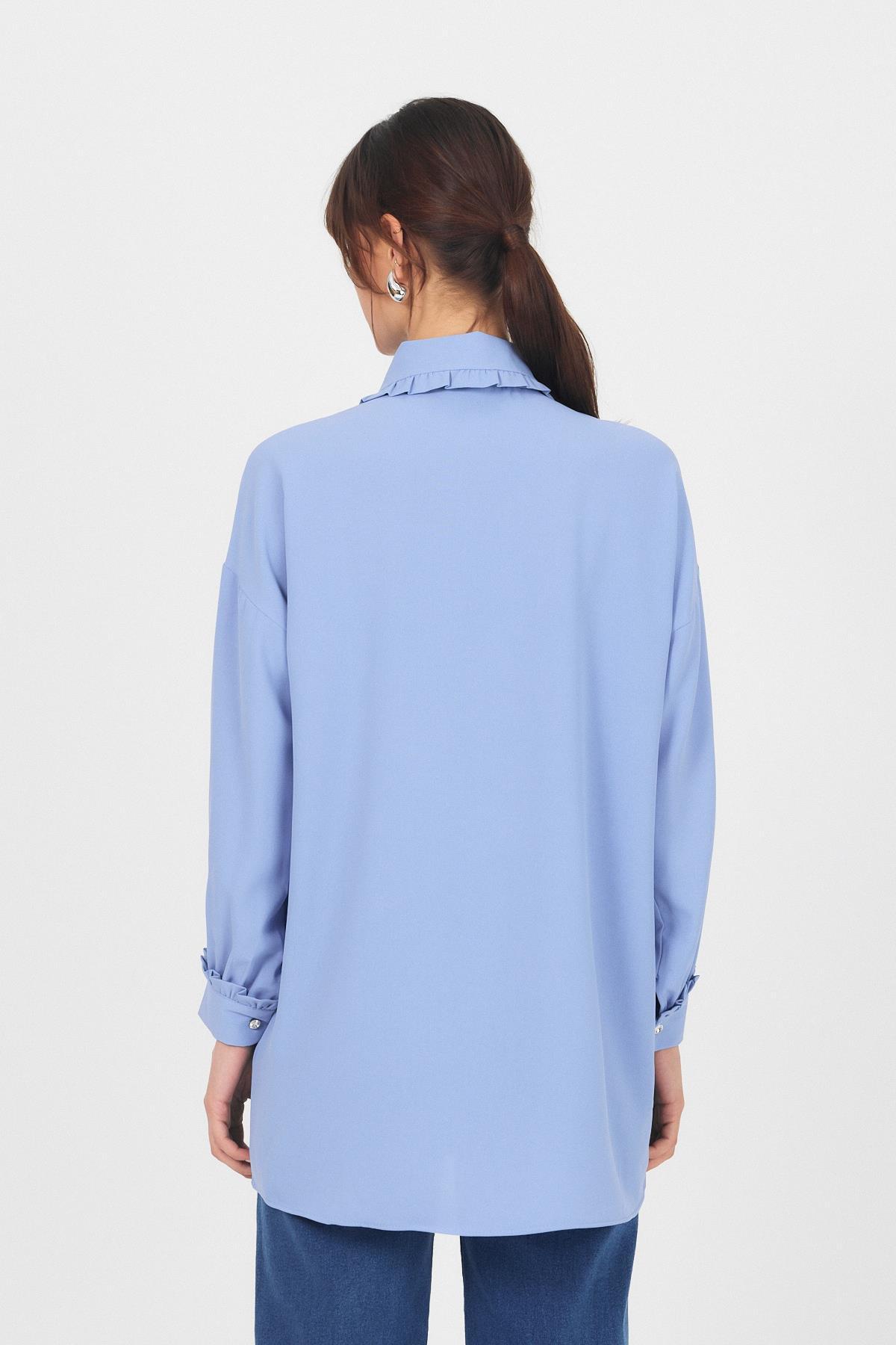 Mavi Fırfır Yaka Detaylı Bağlamalı Tunik 4586A