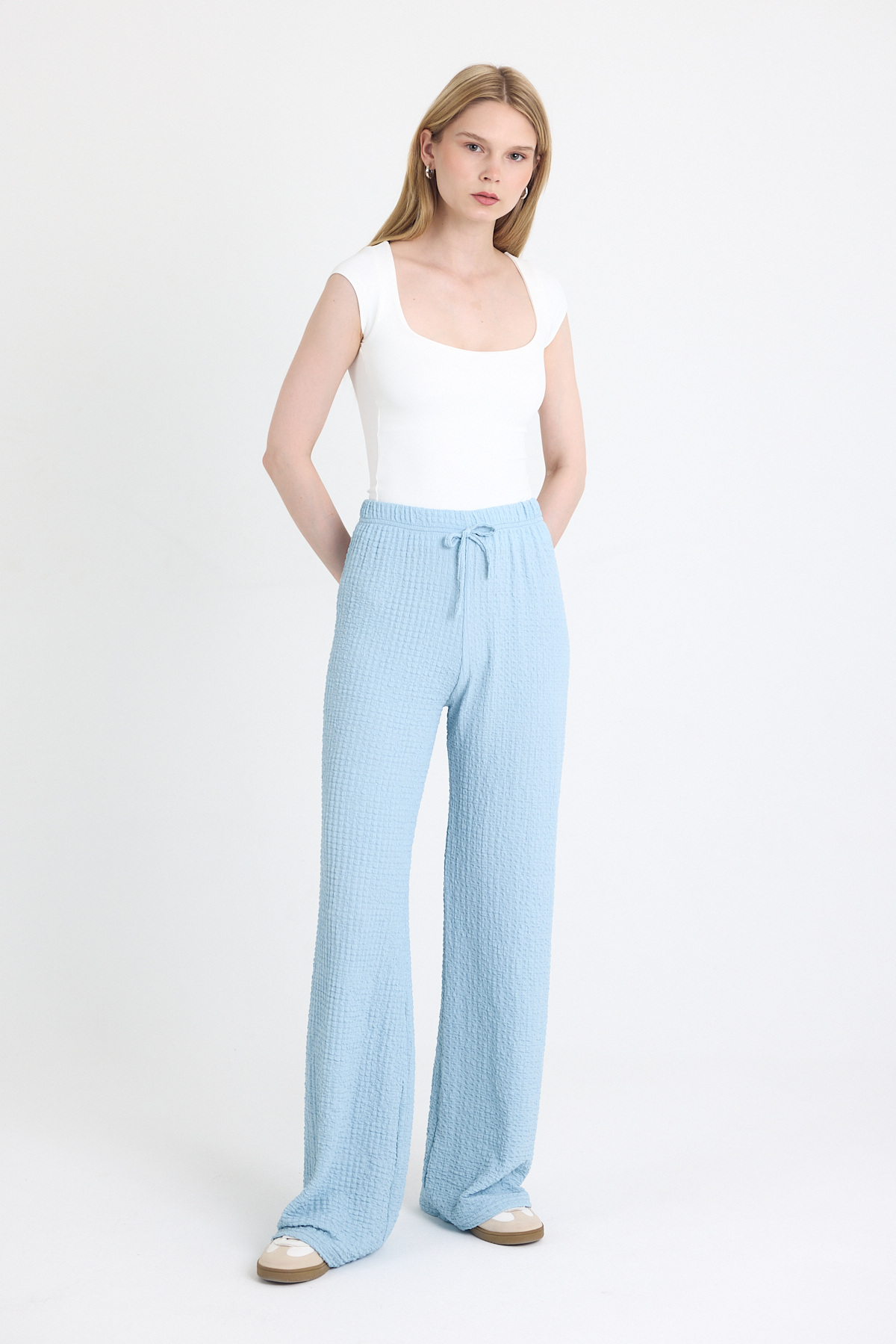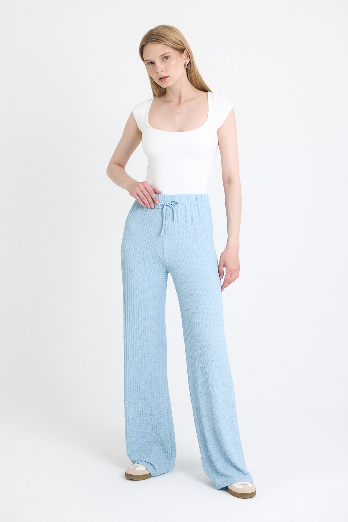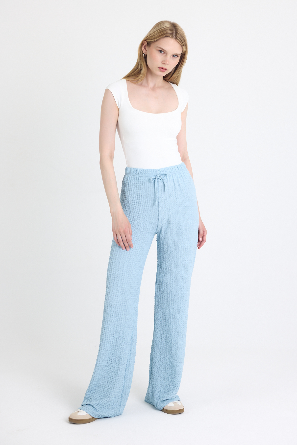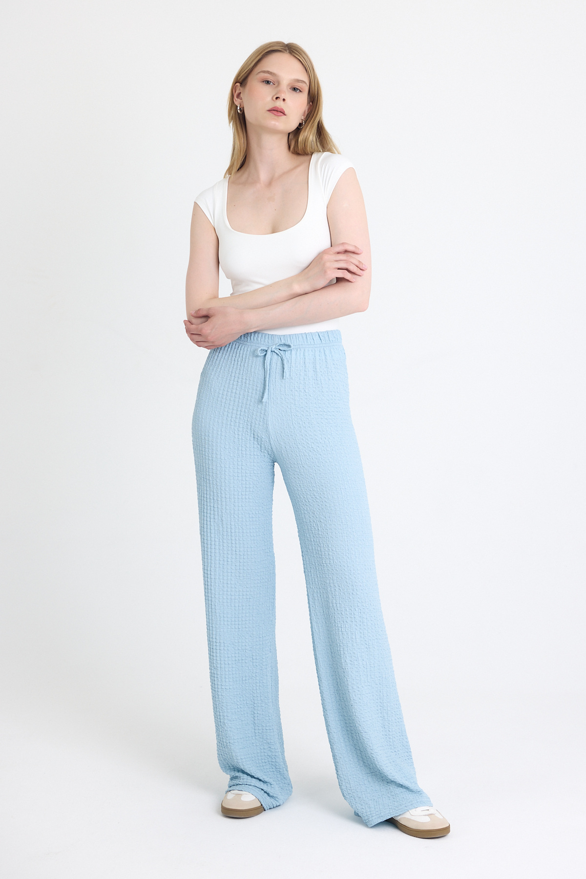 Beyaz Bağlamalı Palazzo Pantolon 3884 - RAYS