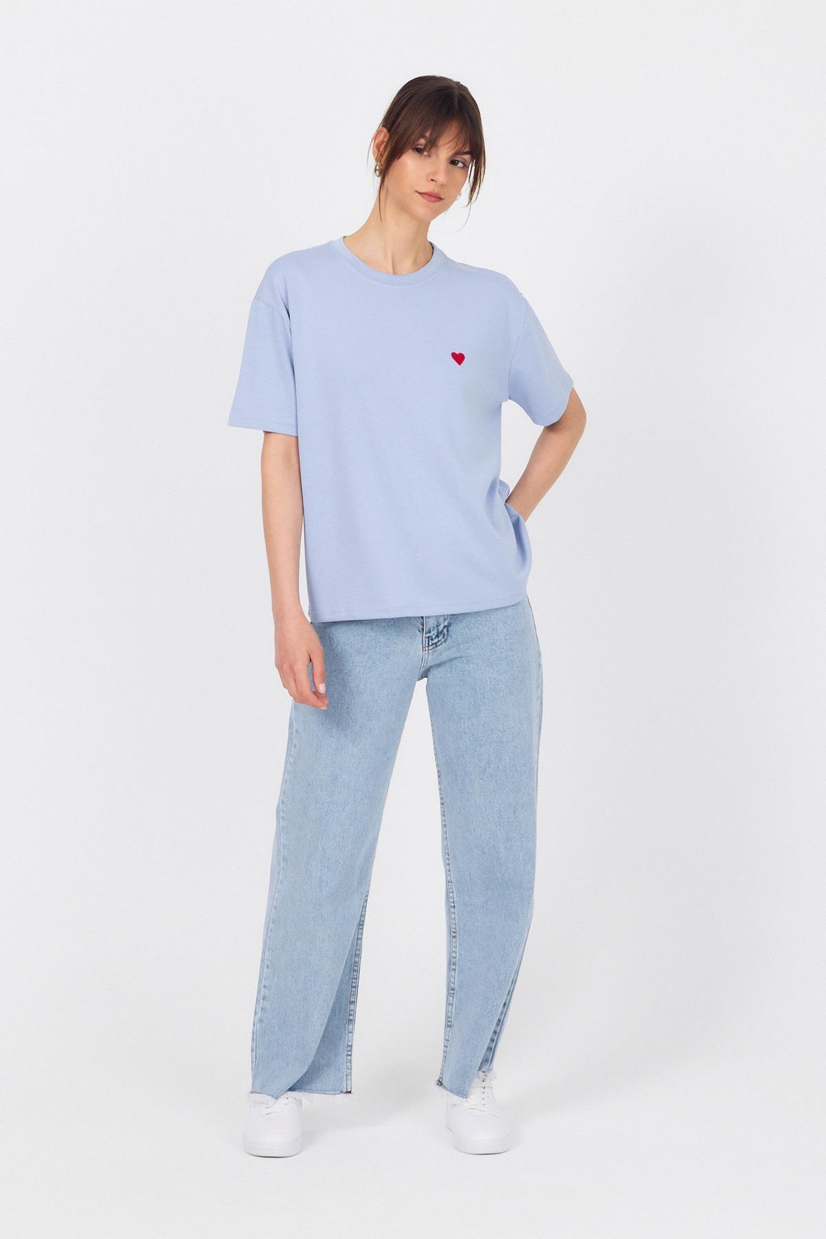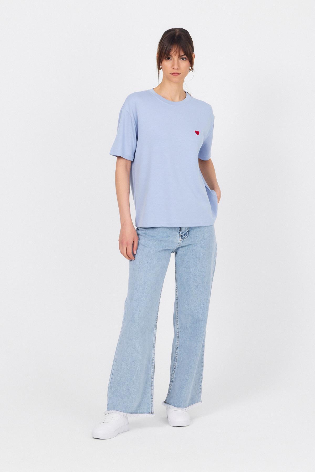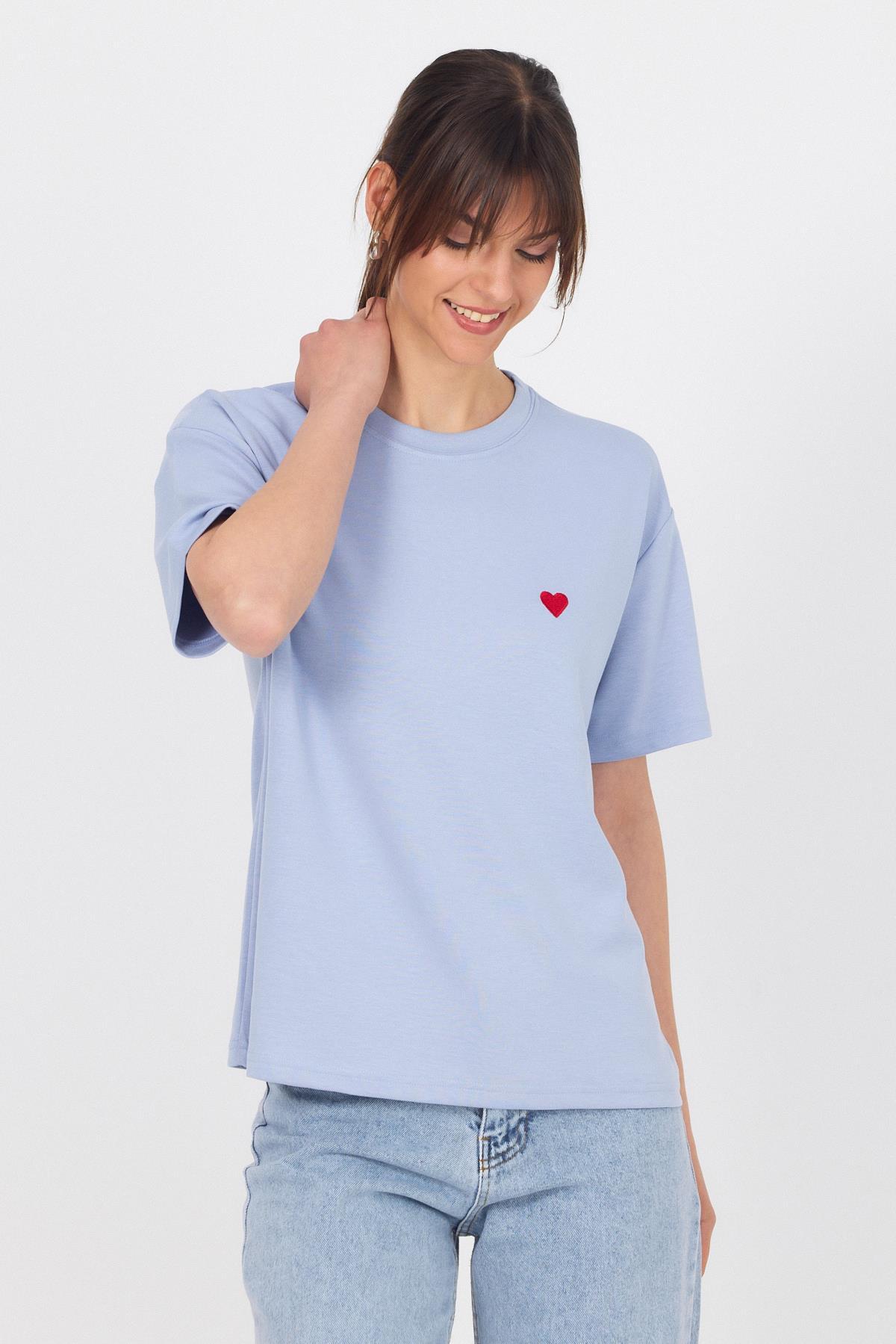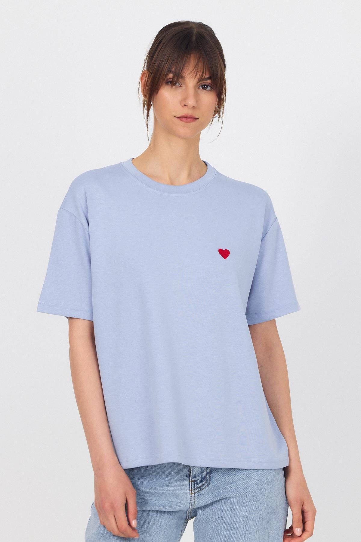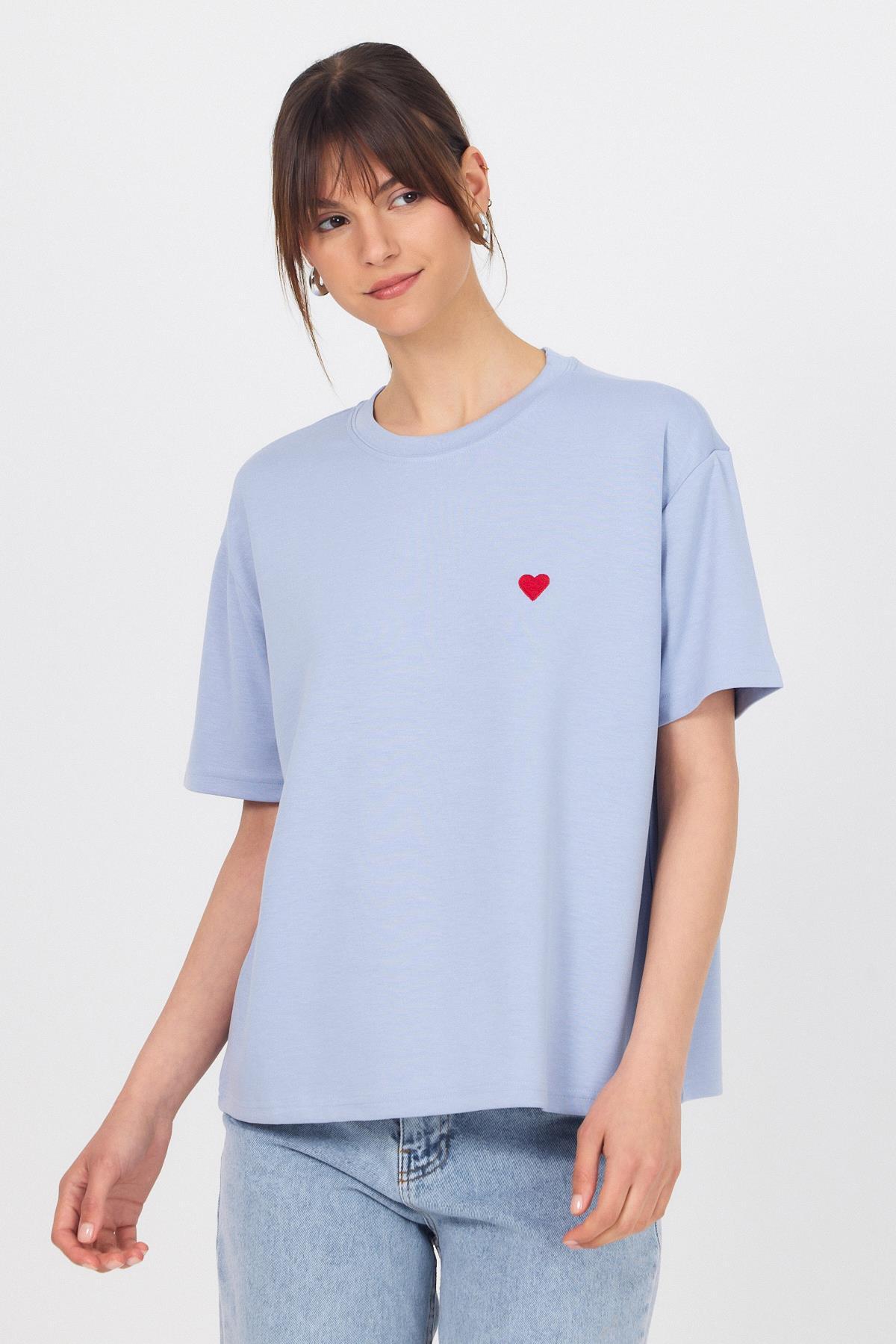 Mavi Kalp Nakışlı Premium Kumaş Tişört 6218