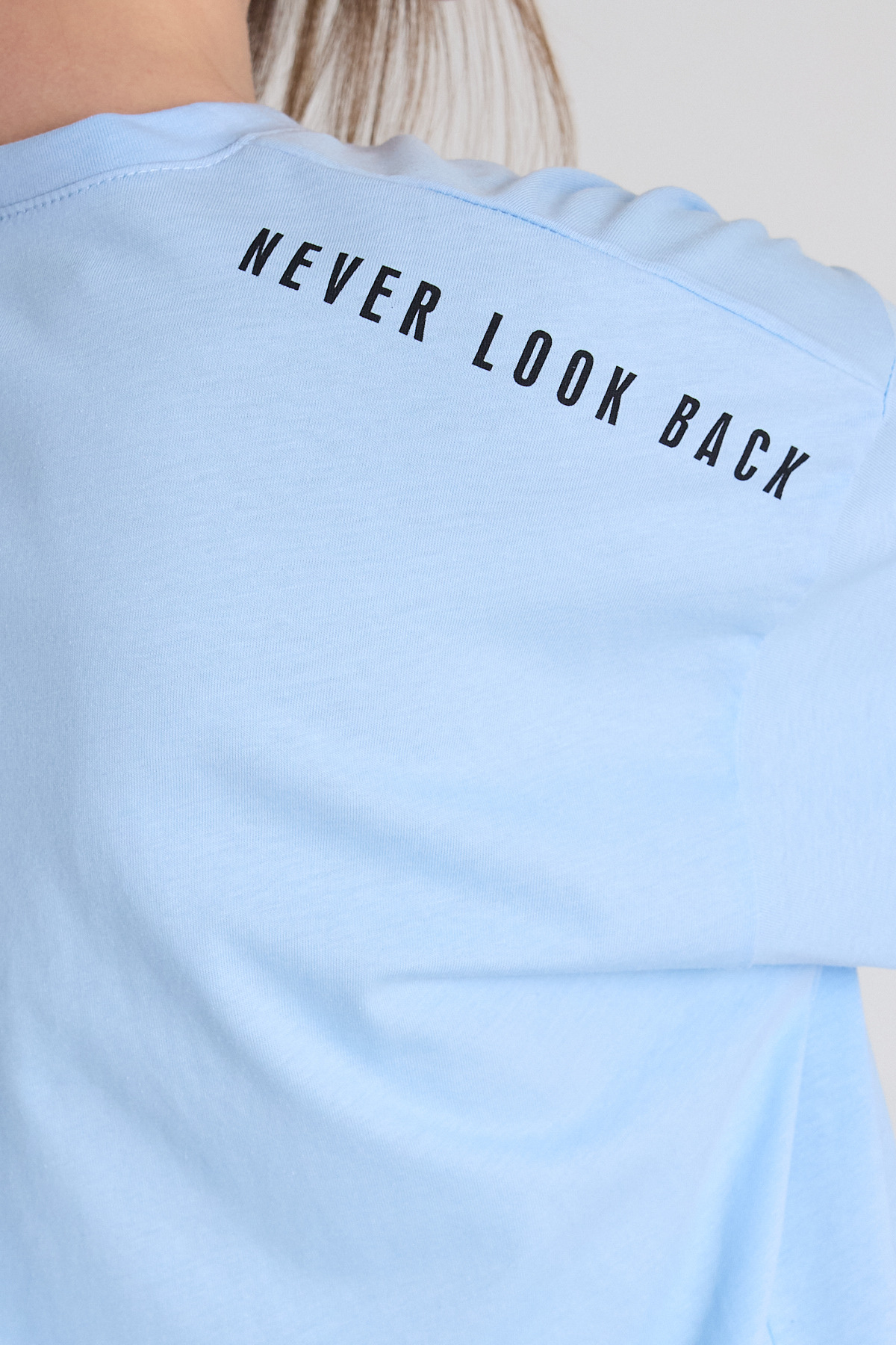 Mavi Omuz Yazı Baskılı %100 Pamuk Oversize Tişört 2150-30M