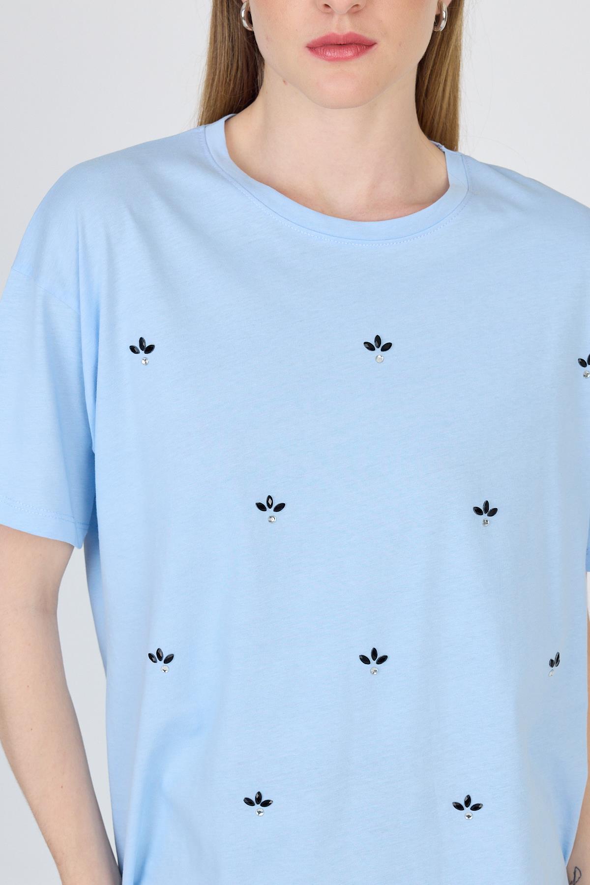 Mavi Yazı Baskılı %100 Pamuk Oversize Tişört 2150-18M