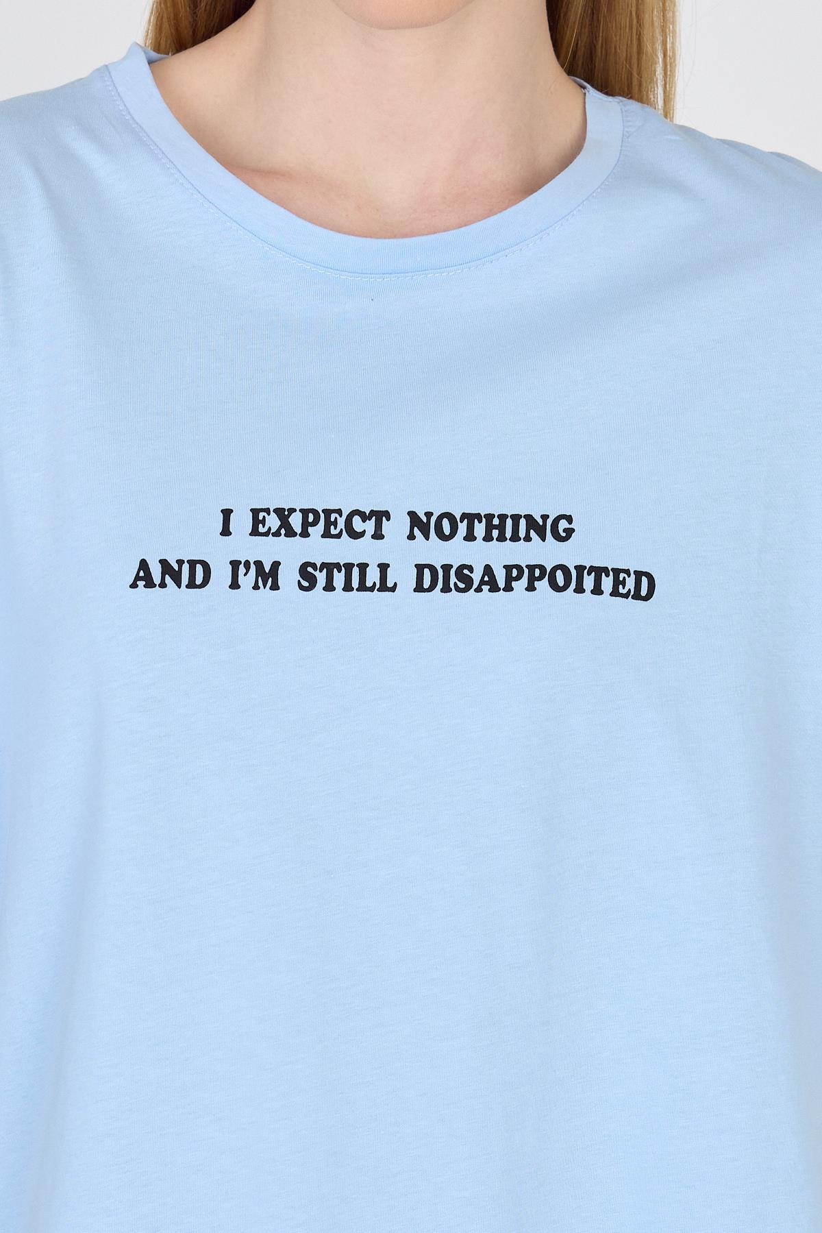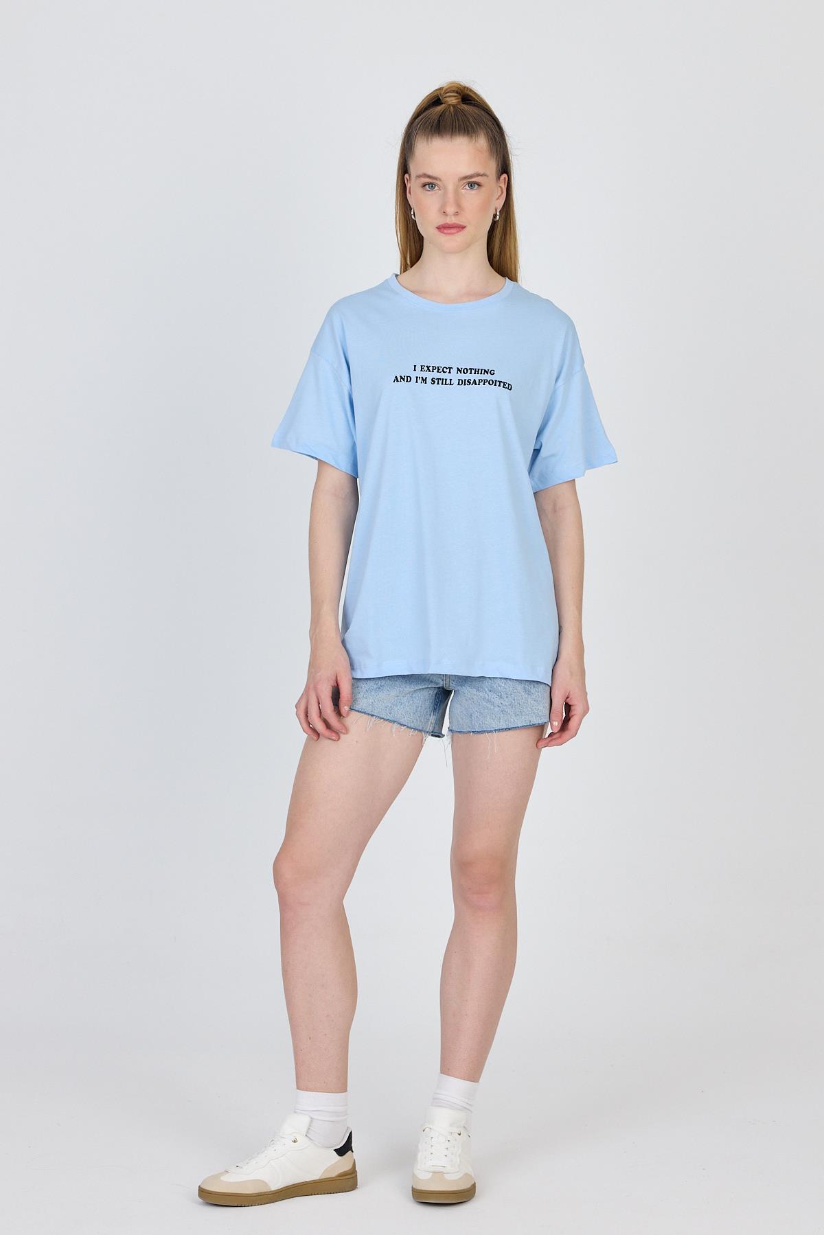 Mavi Yazı Baskılı %100 Pamuk Oversize Tişört 2150-8M
